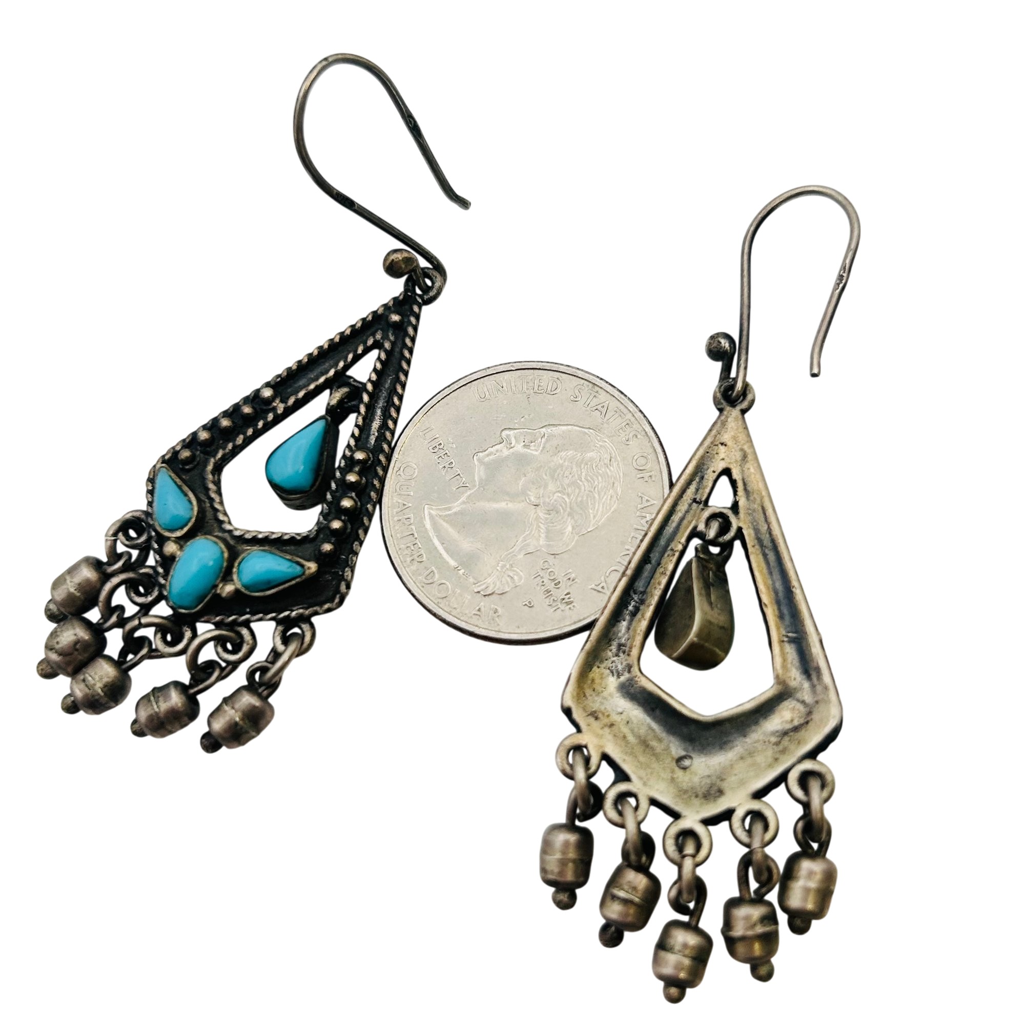 Southwest turquoise Sterling chandelier earrings 14g