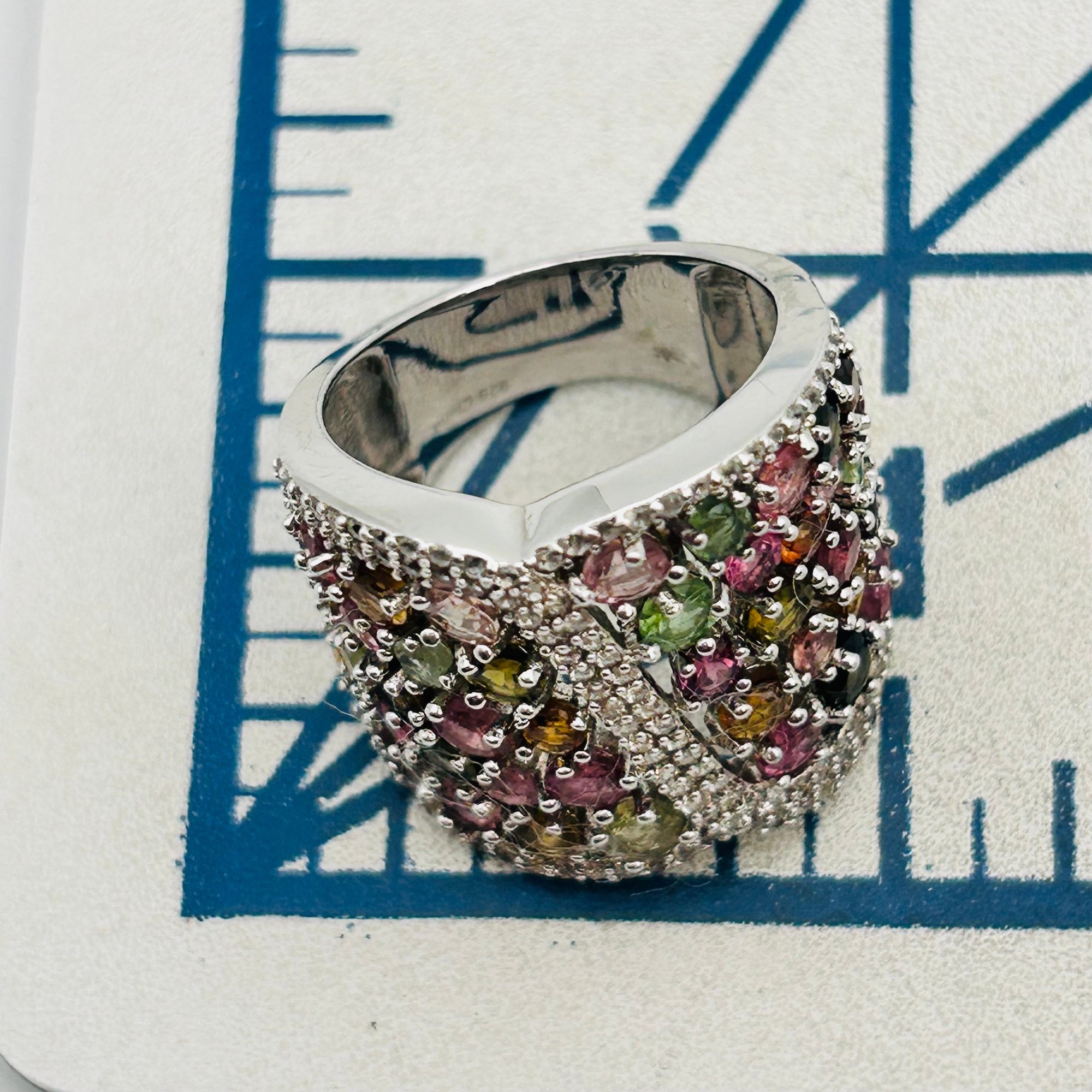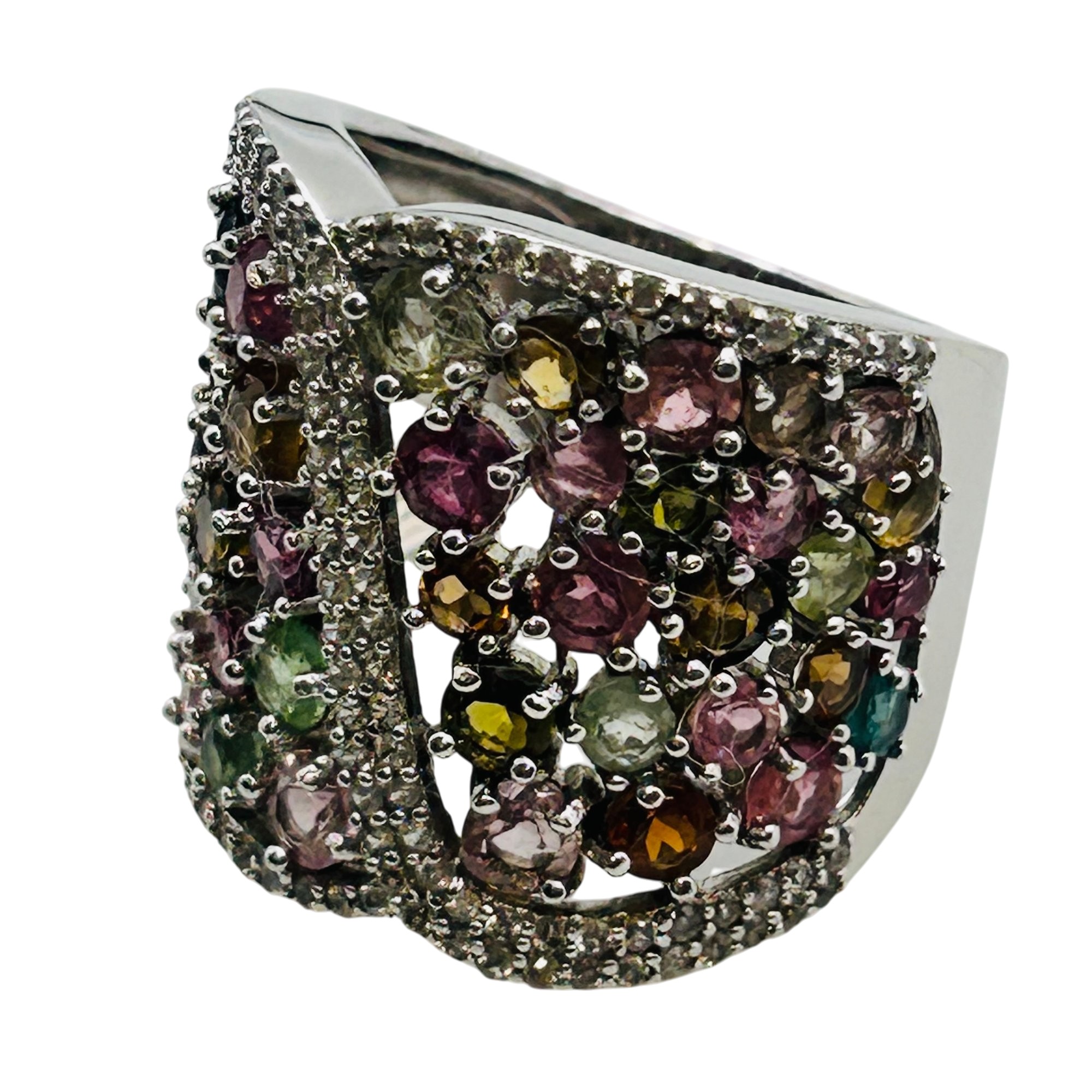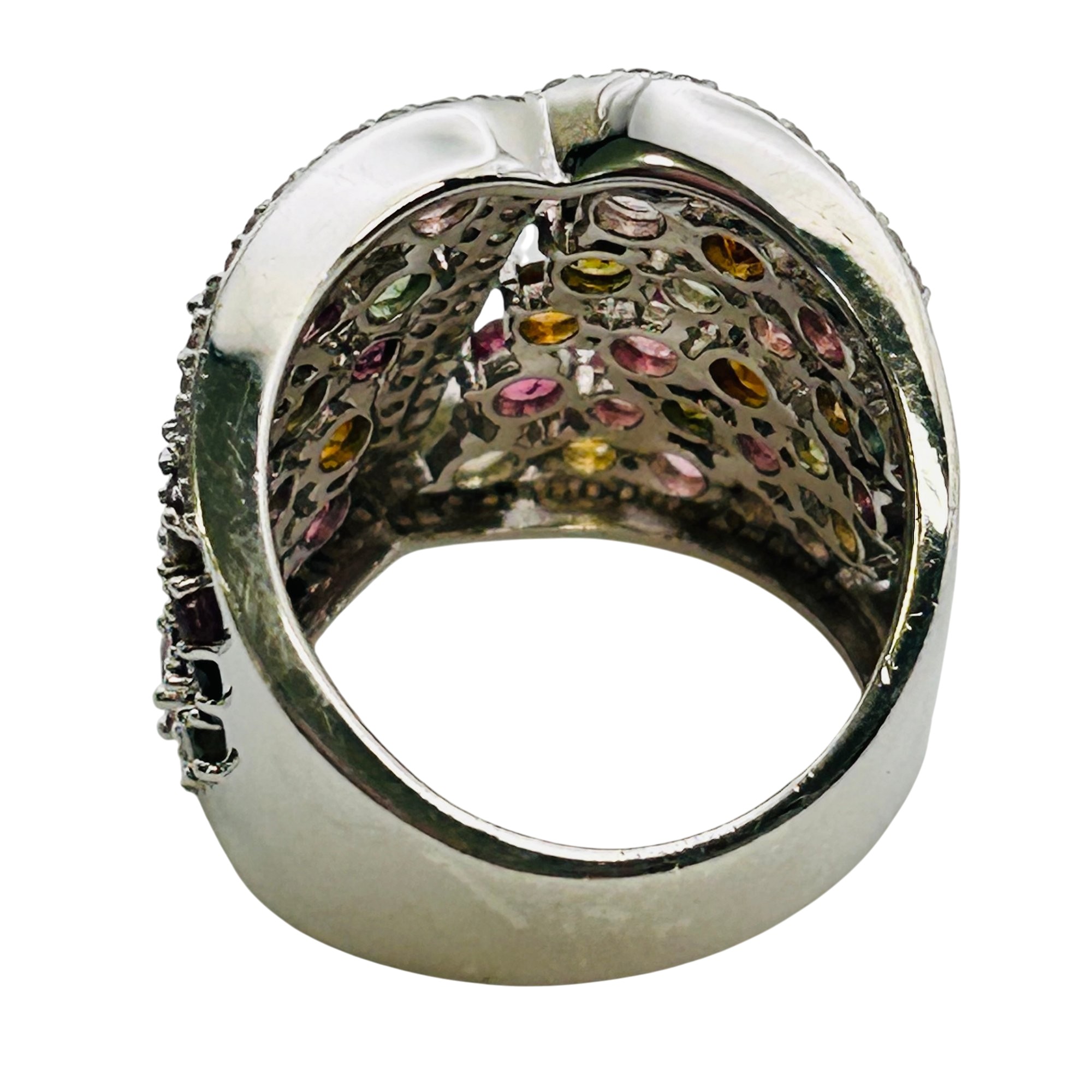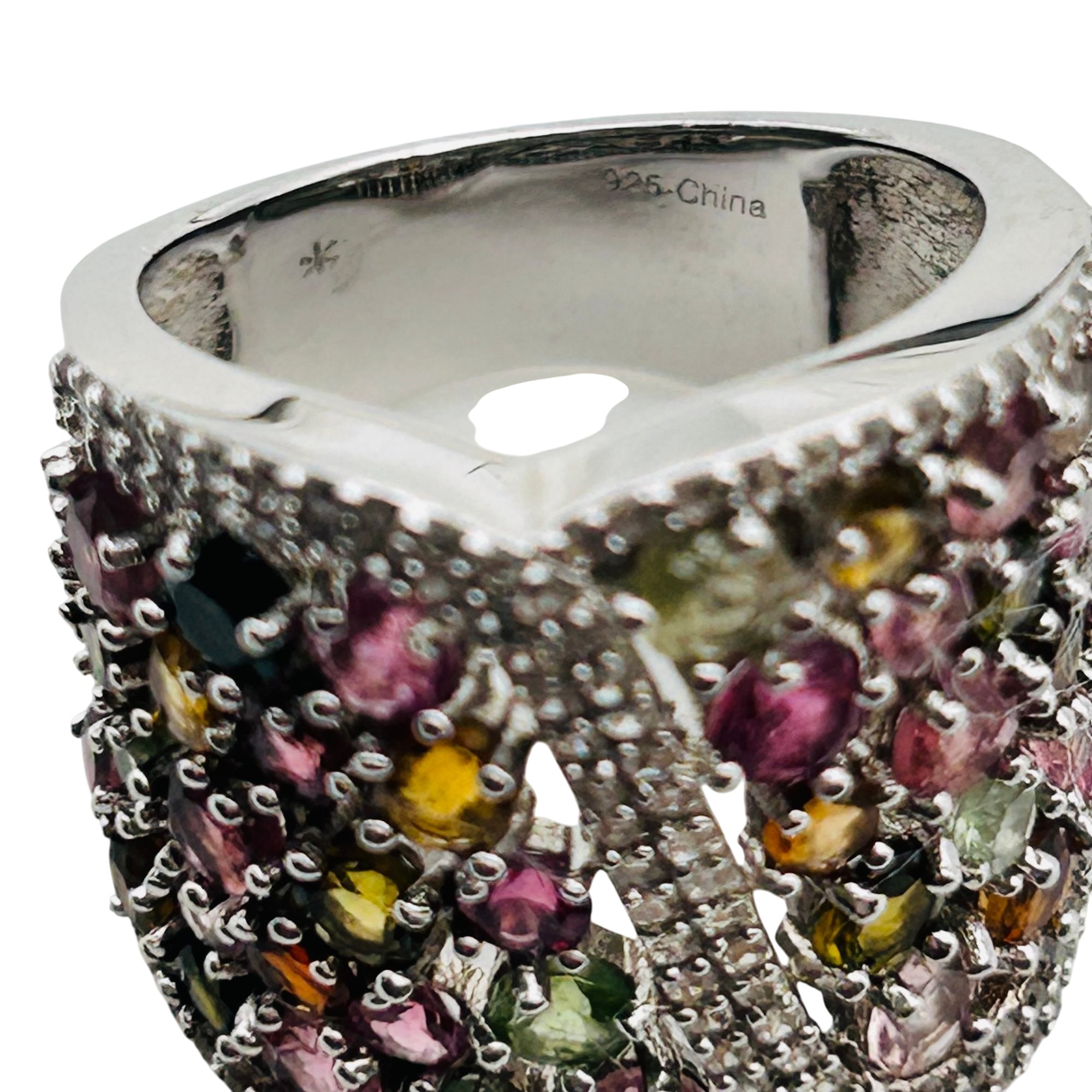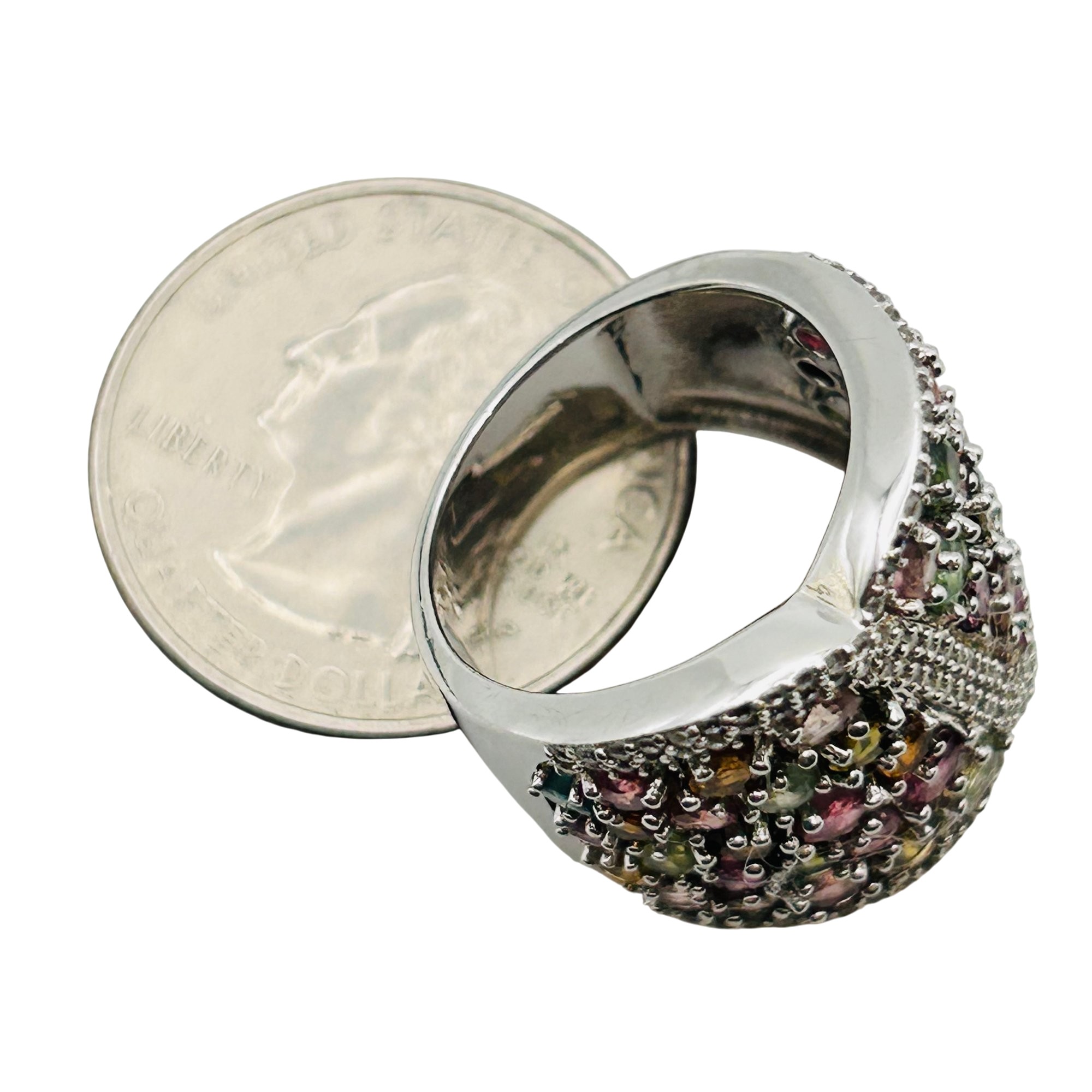 Clear iolite surround sterling multicolored stone dome ring size 6 7.57 g