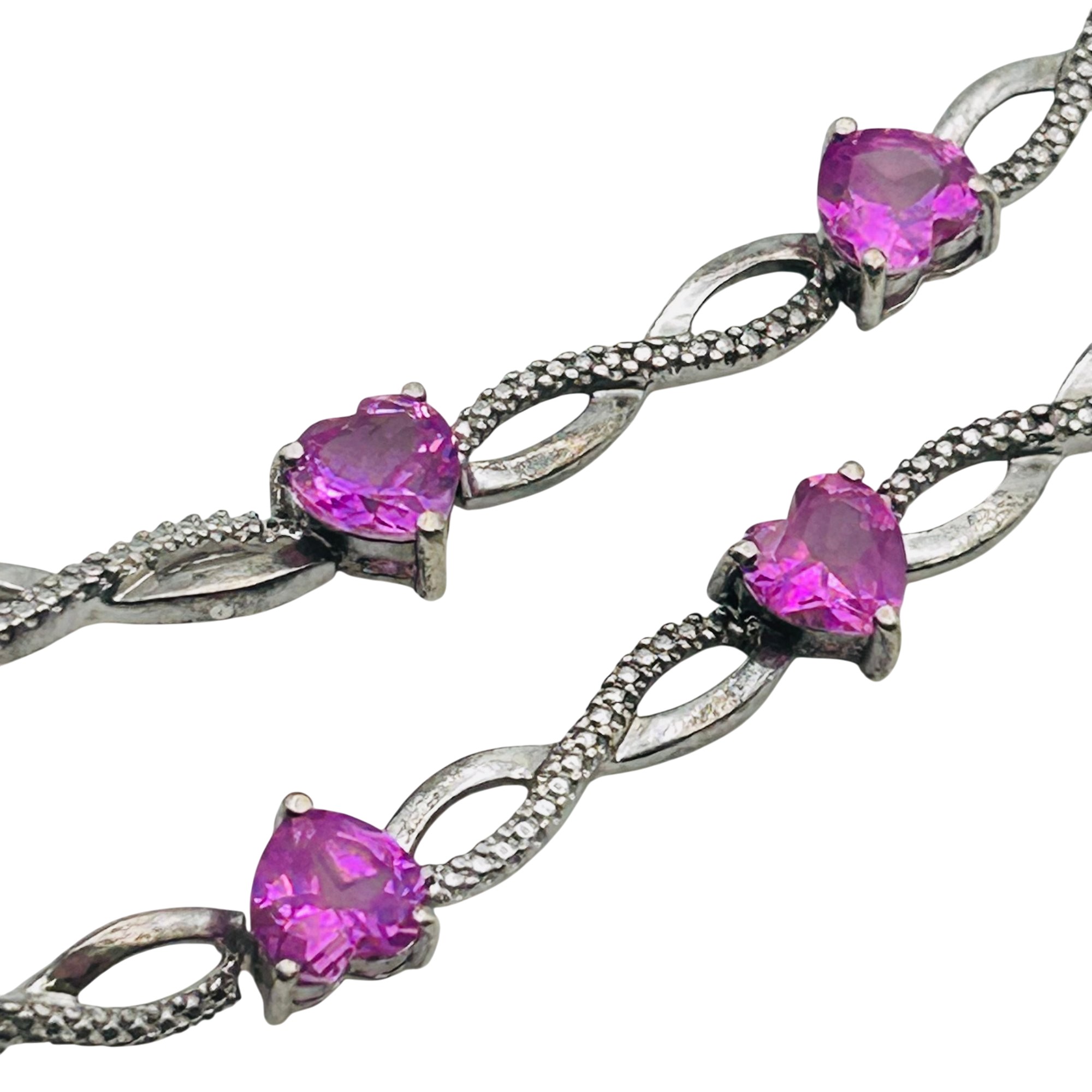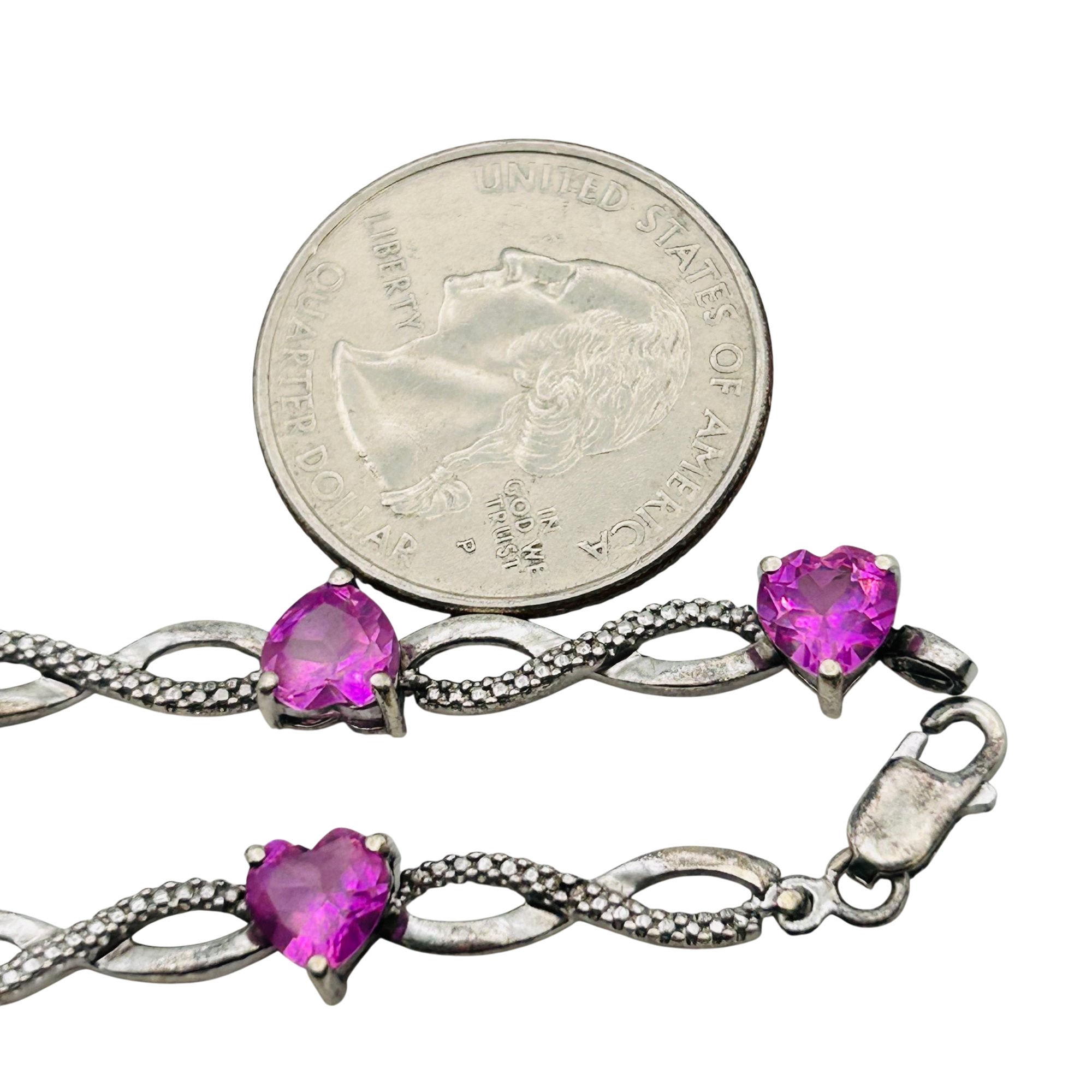 Pink topaz diamond accent Sterling tennis bracelet 9.95 g.