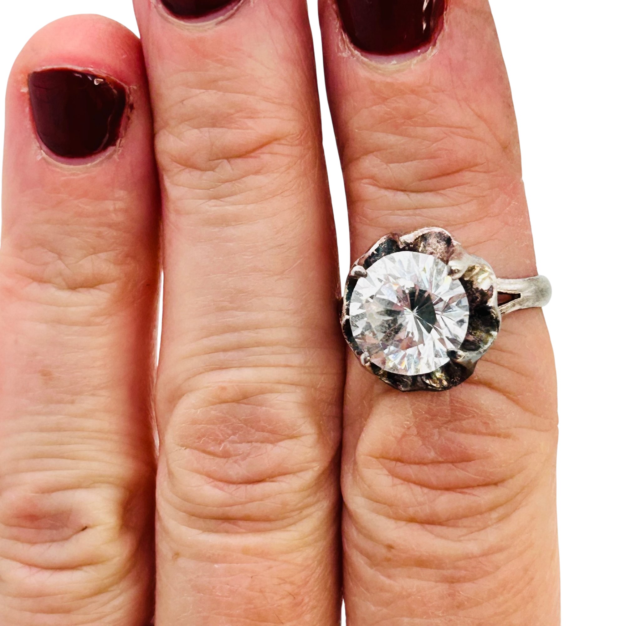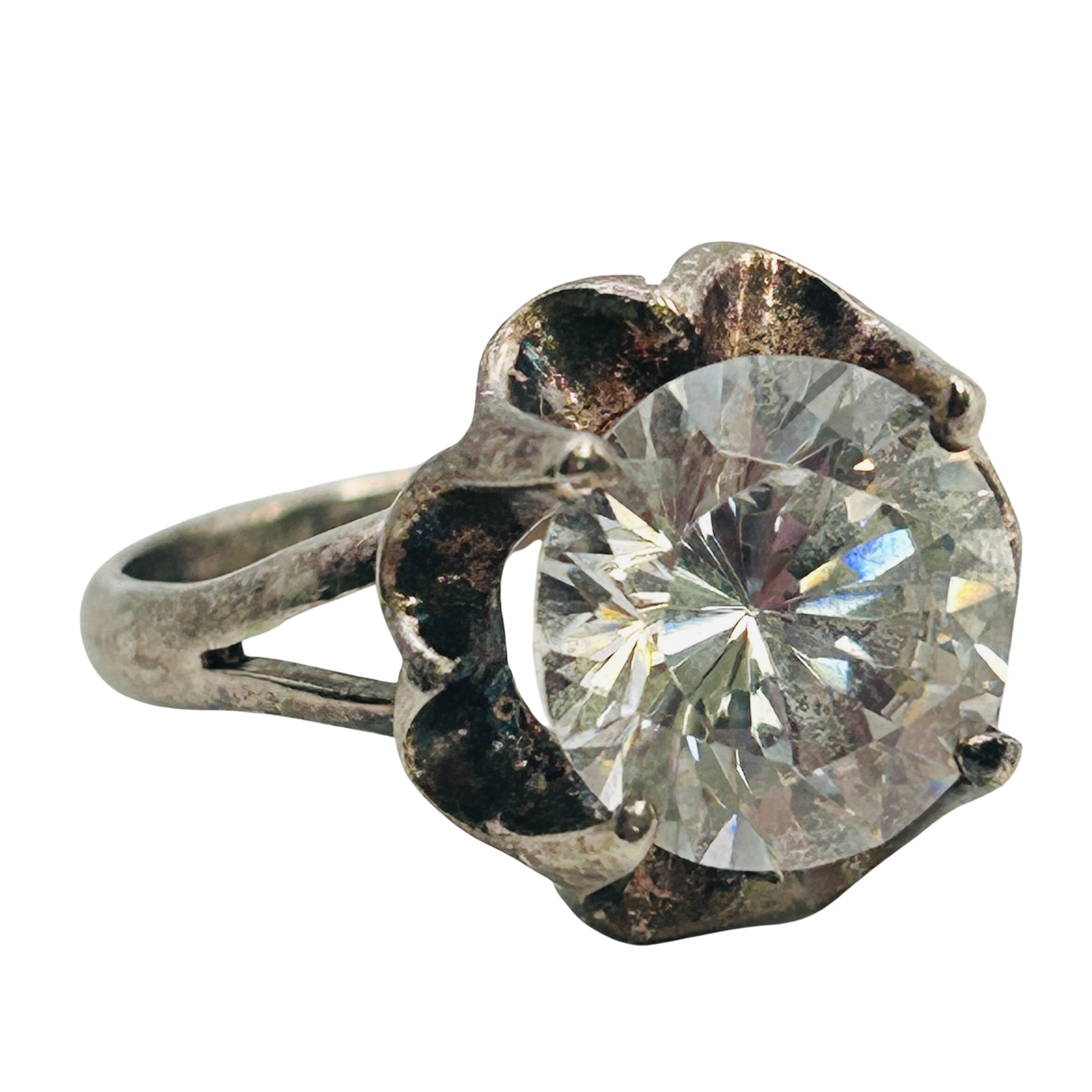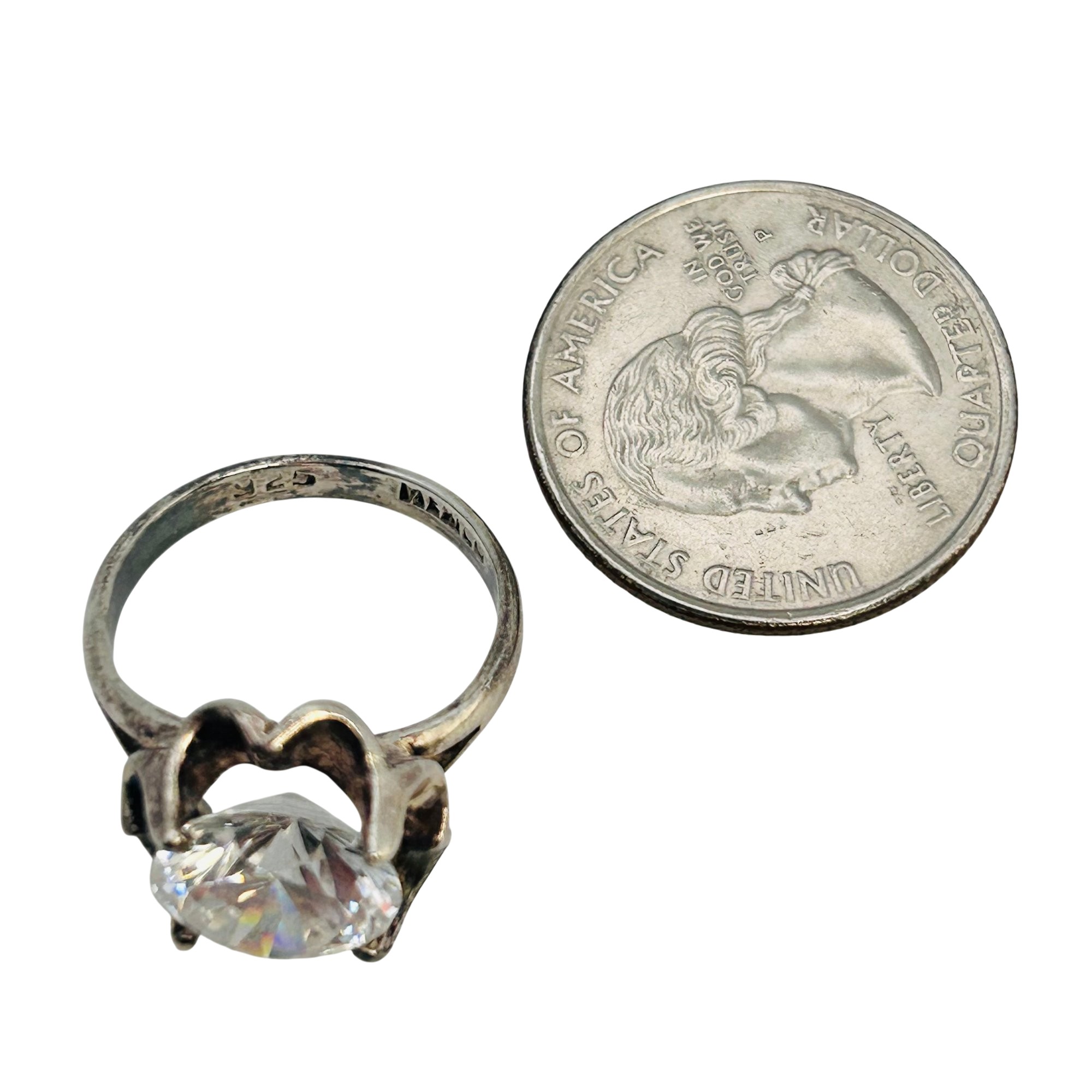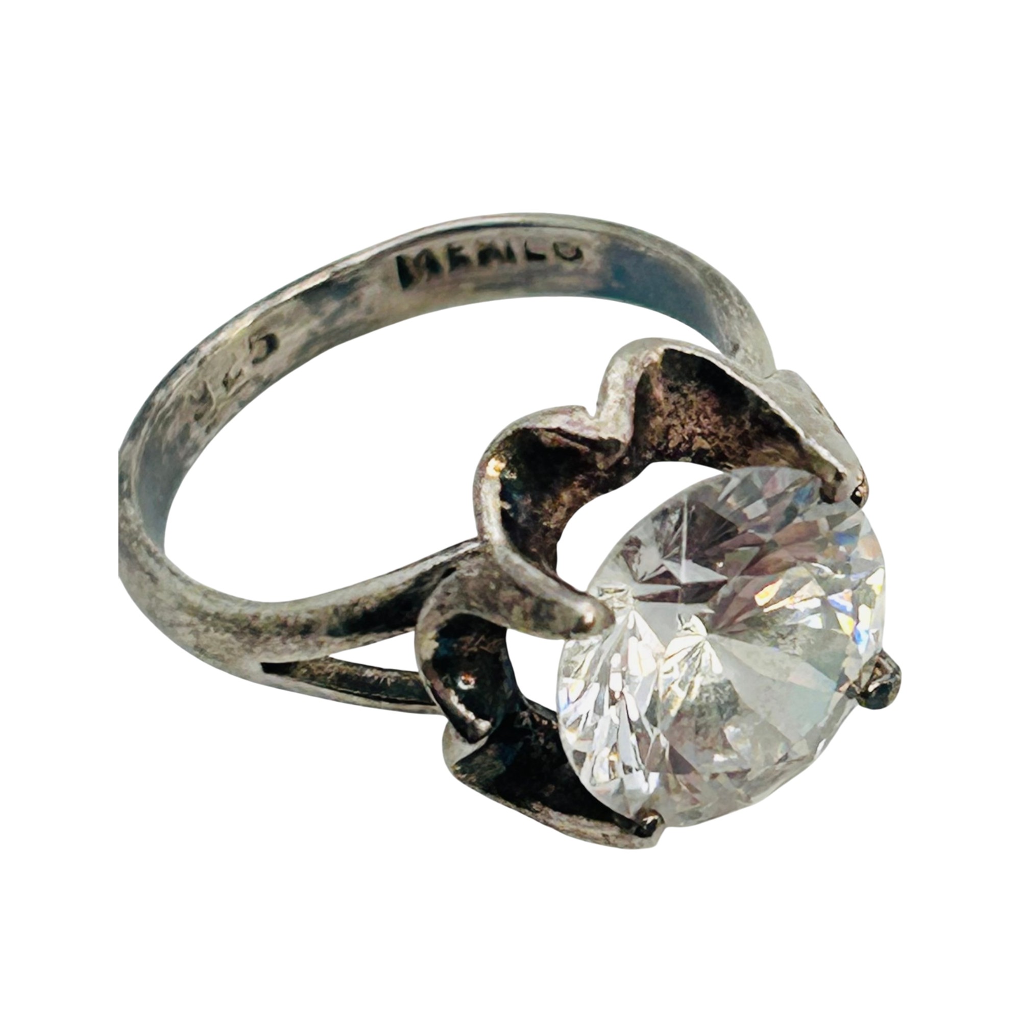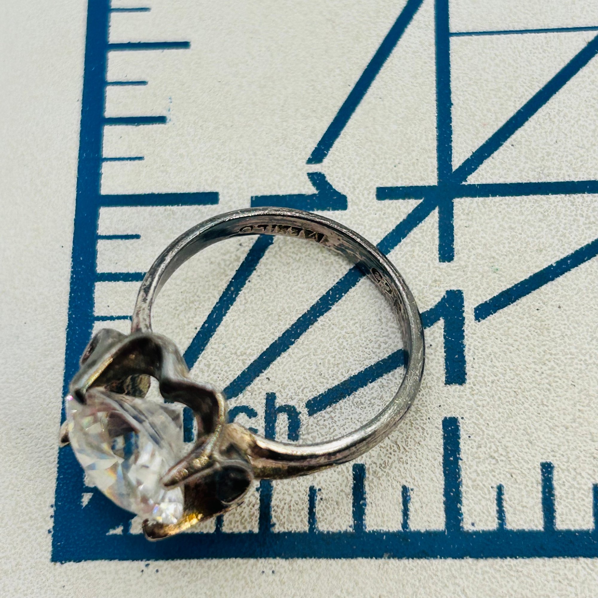 Mexico Sterling rhinestone solitaire ring size 7.5 5.22 g
