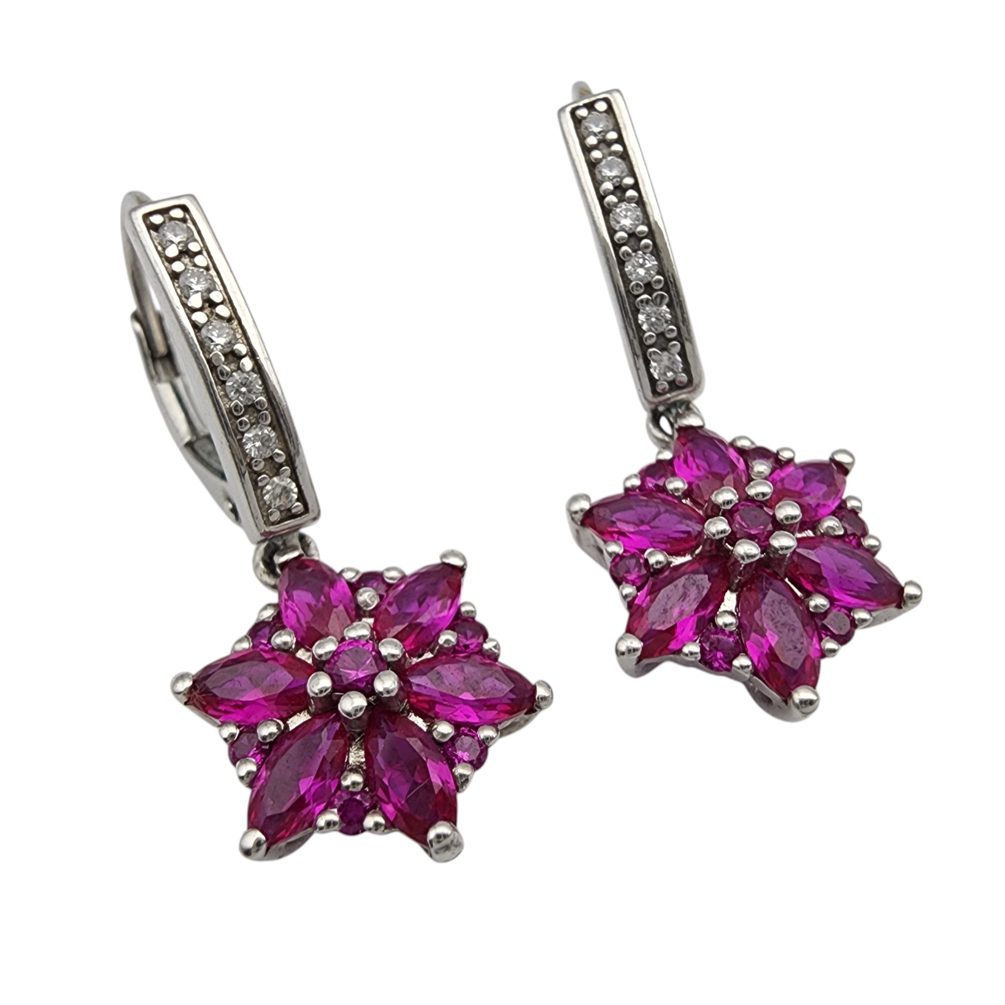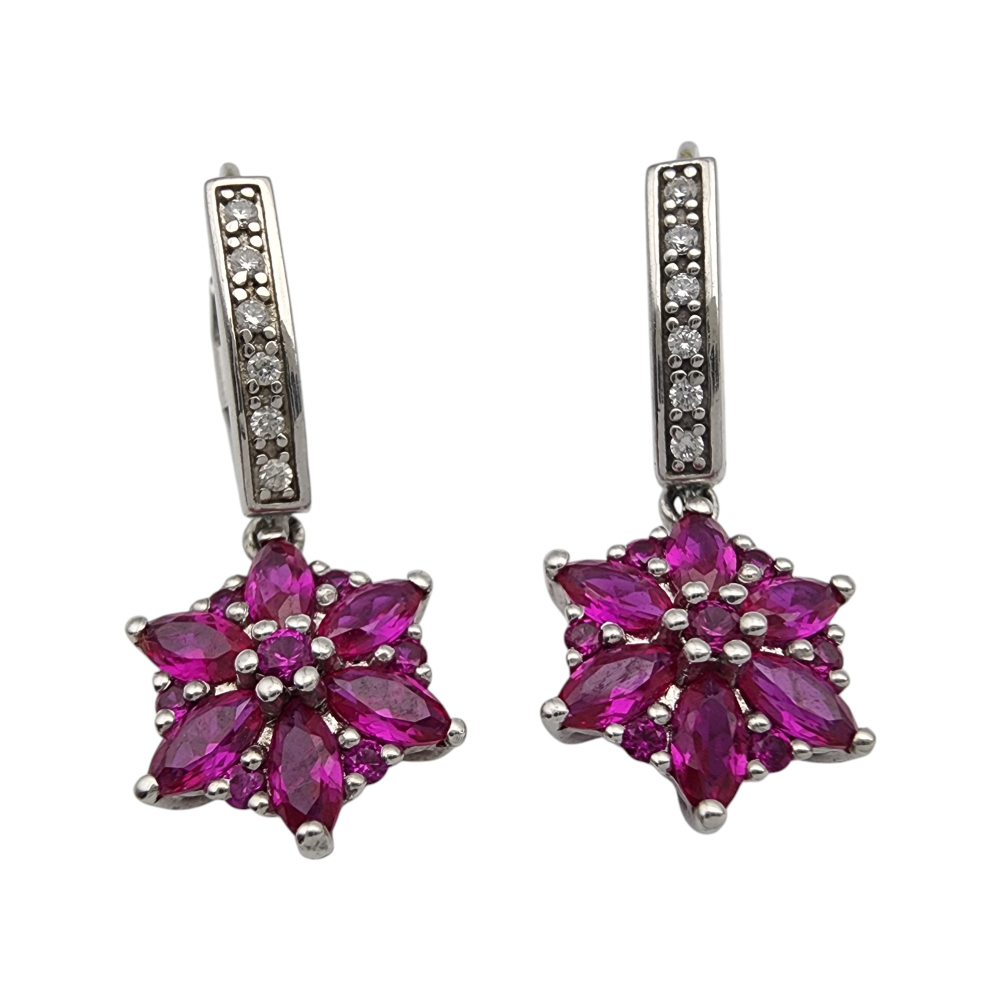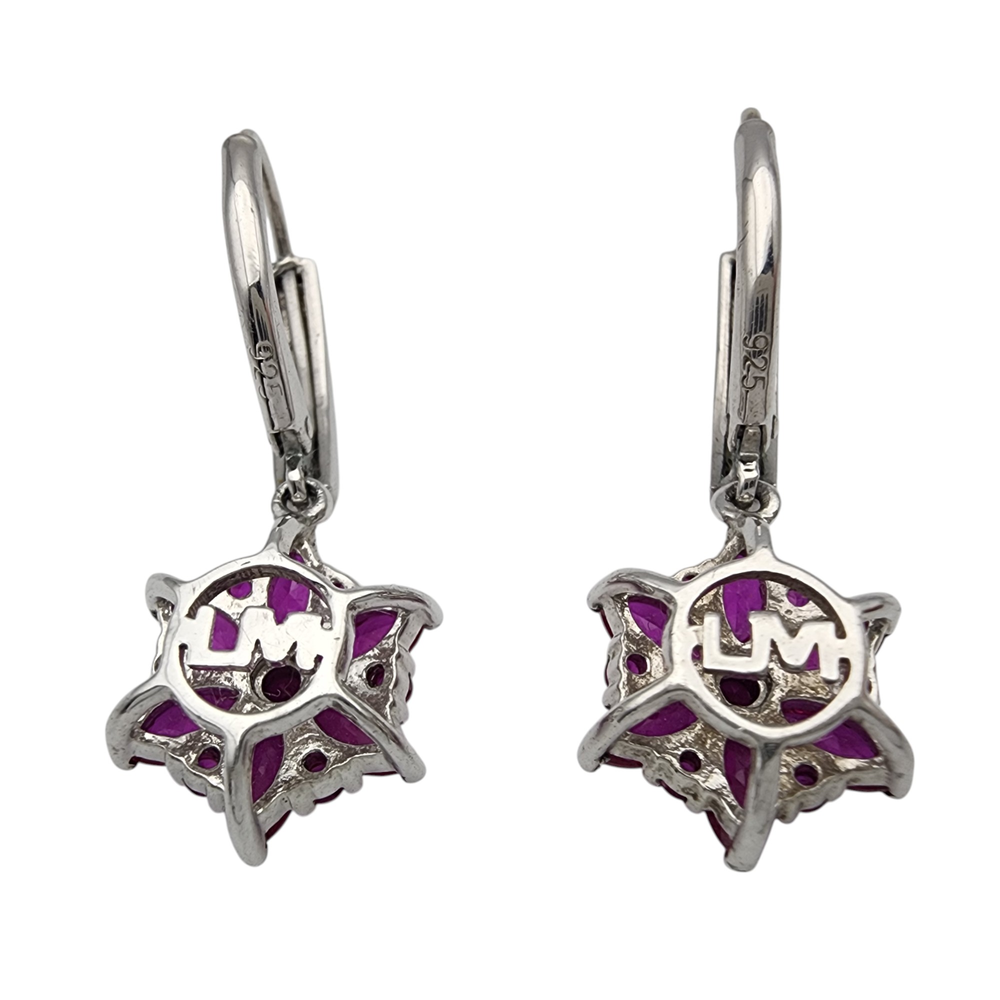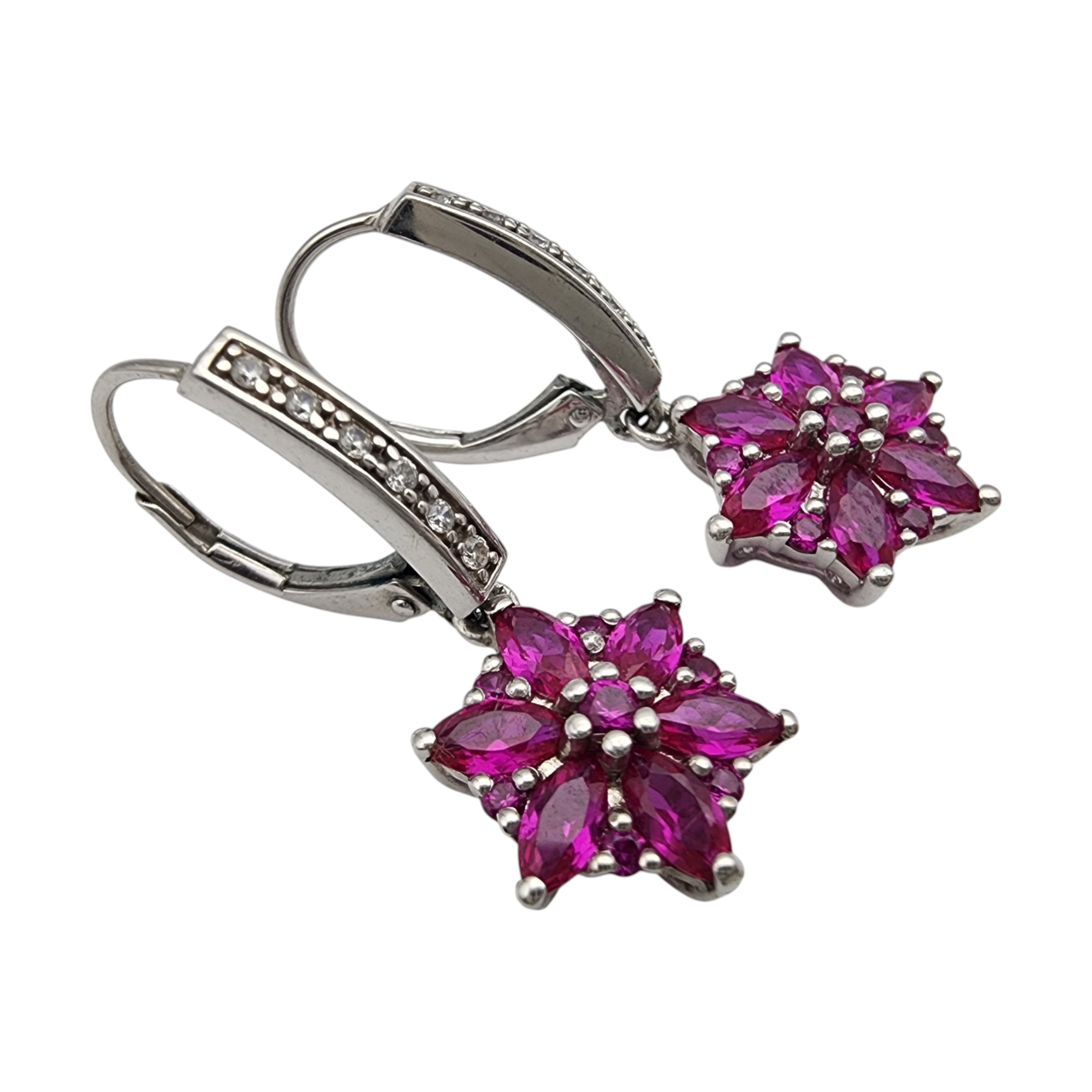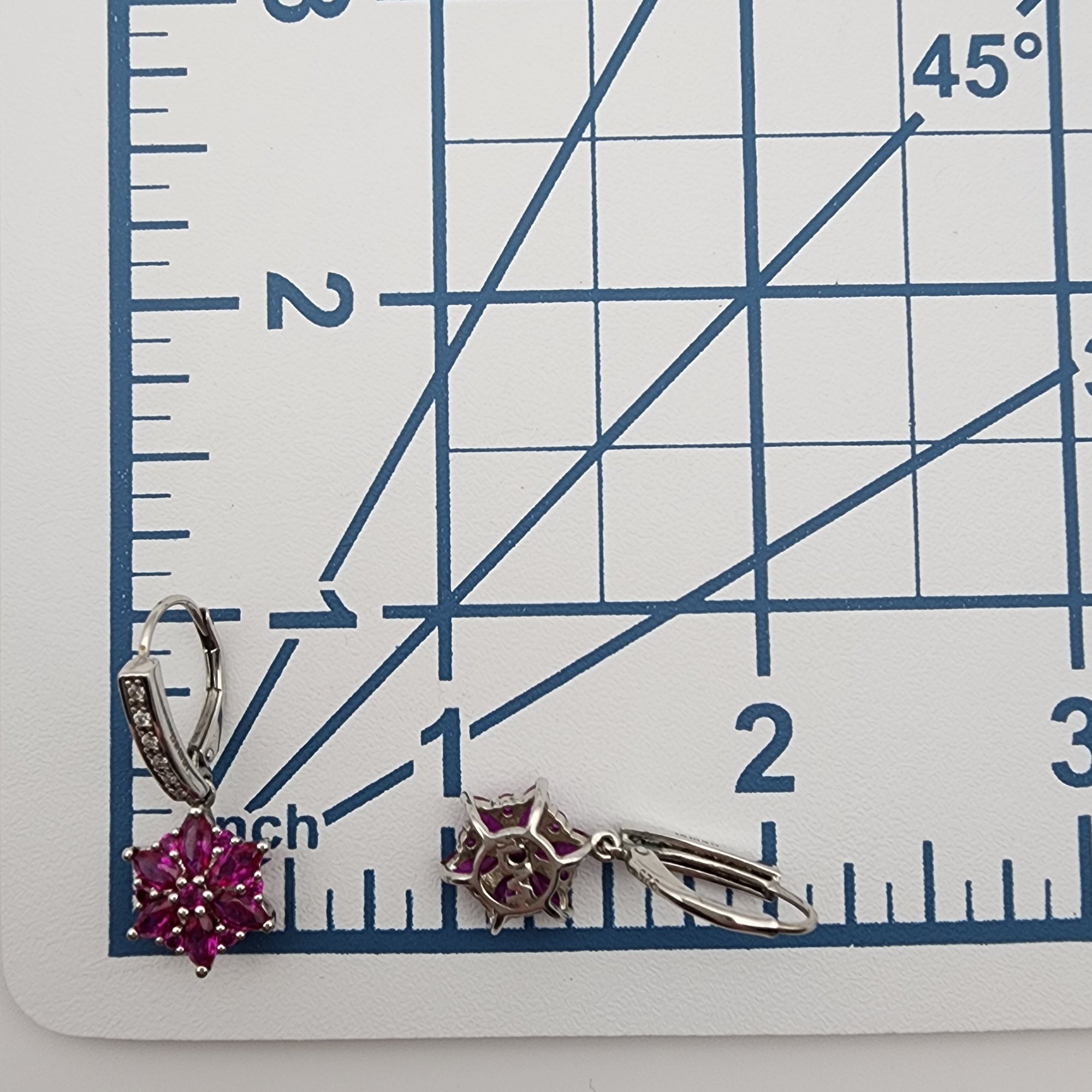 Signed Sterling Pink Topaz (possibly Ruby) Cluster Earrings, 4g