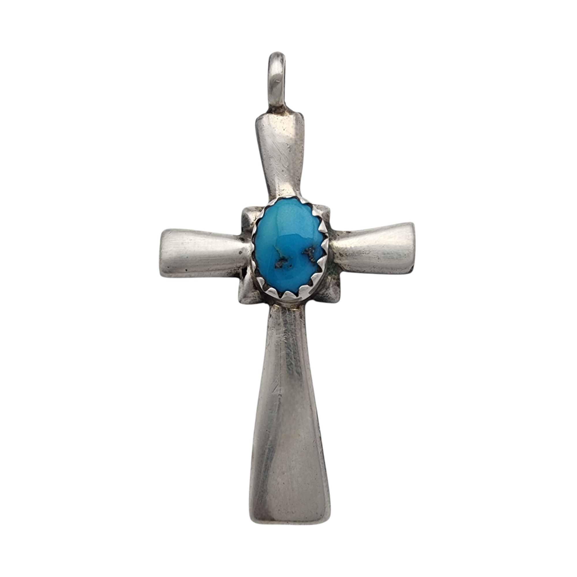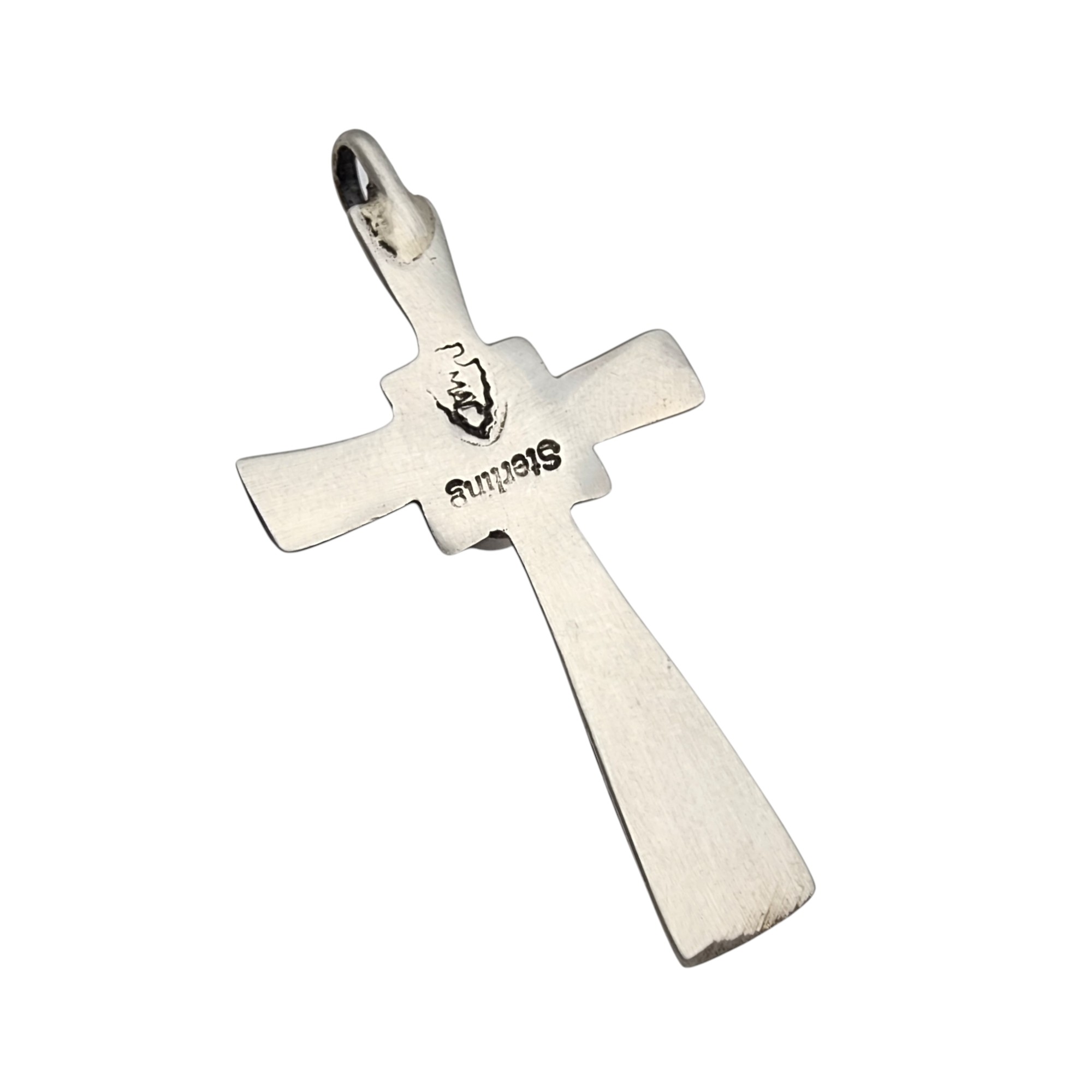 Signed Navajo Sterling Turquoise Cross Pendant, 2.8g