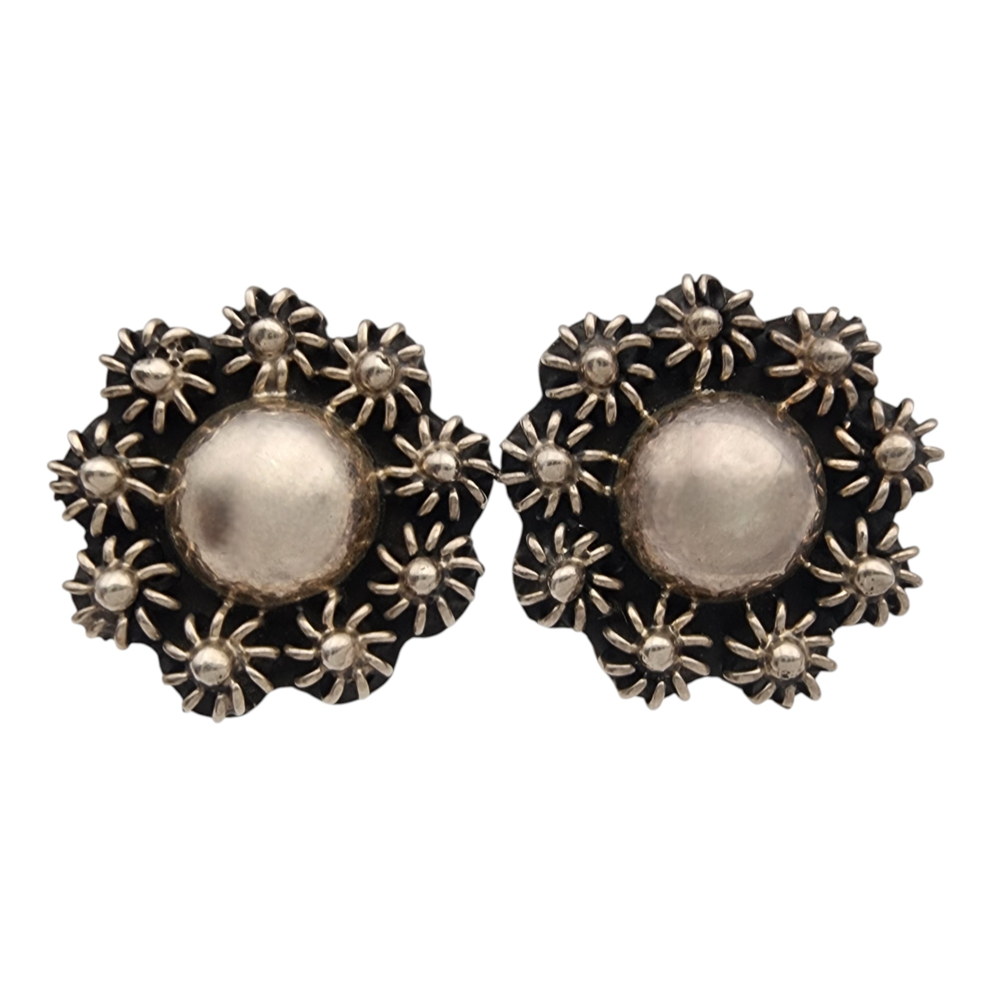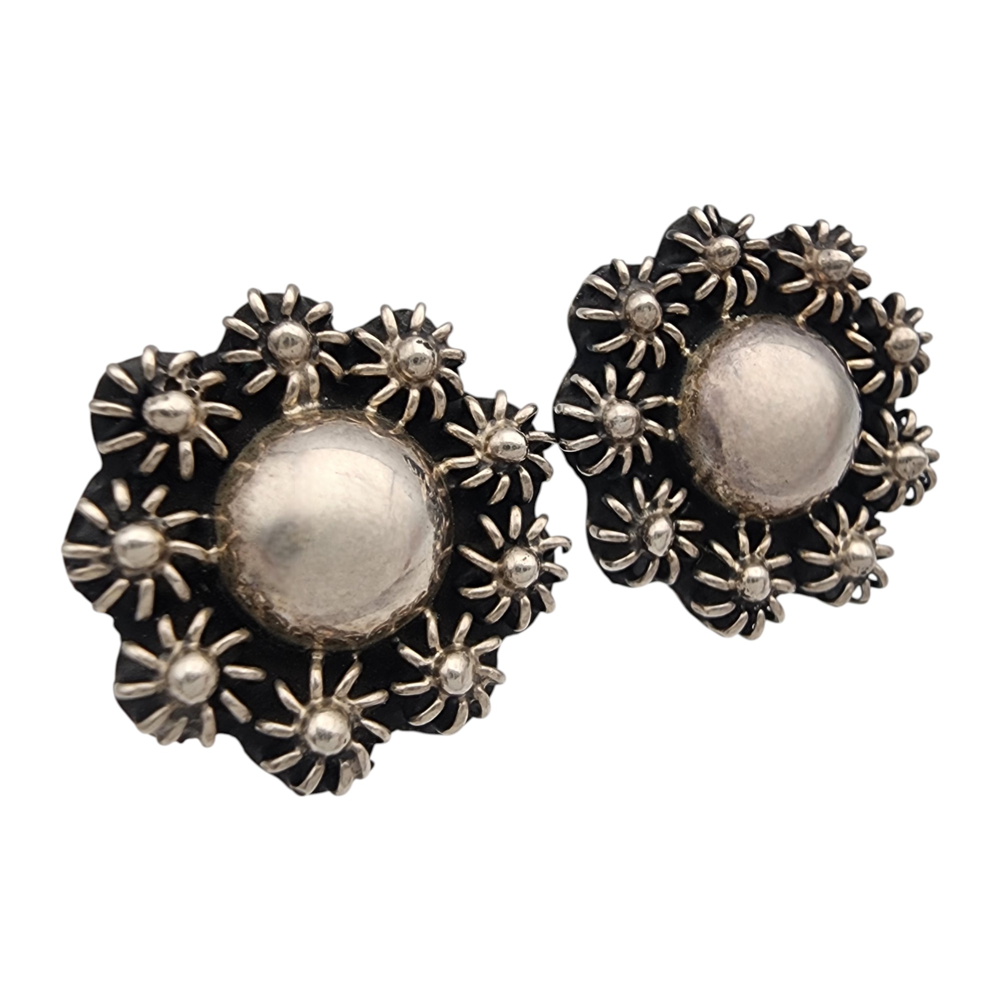 Sterling Silver Starburst Dome Earrings, 4.1g