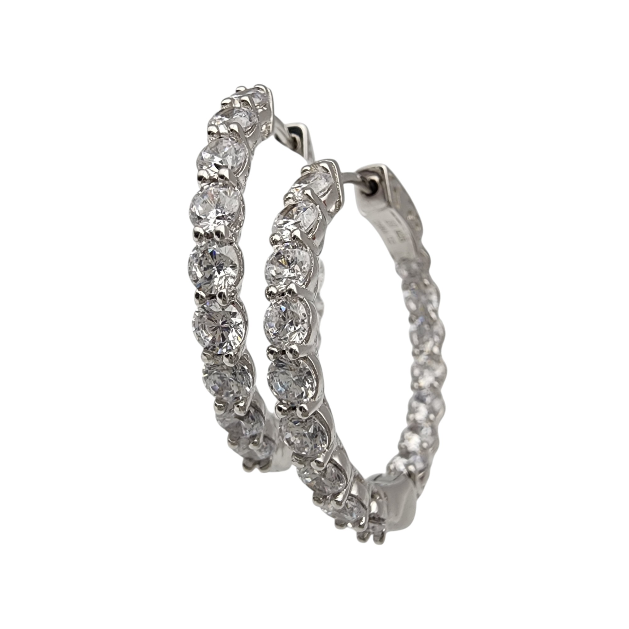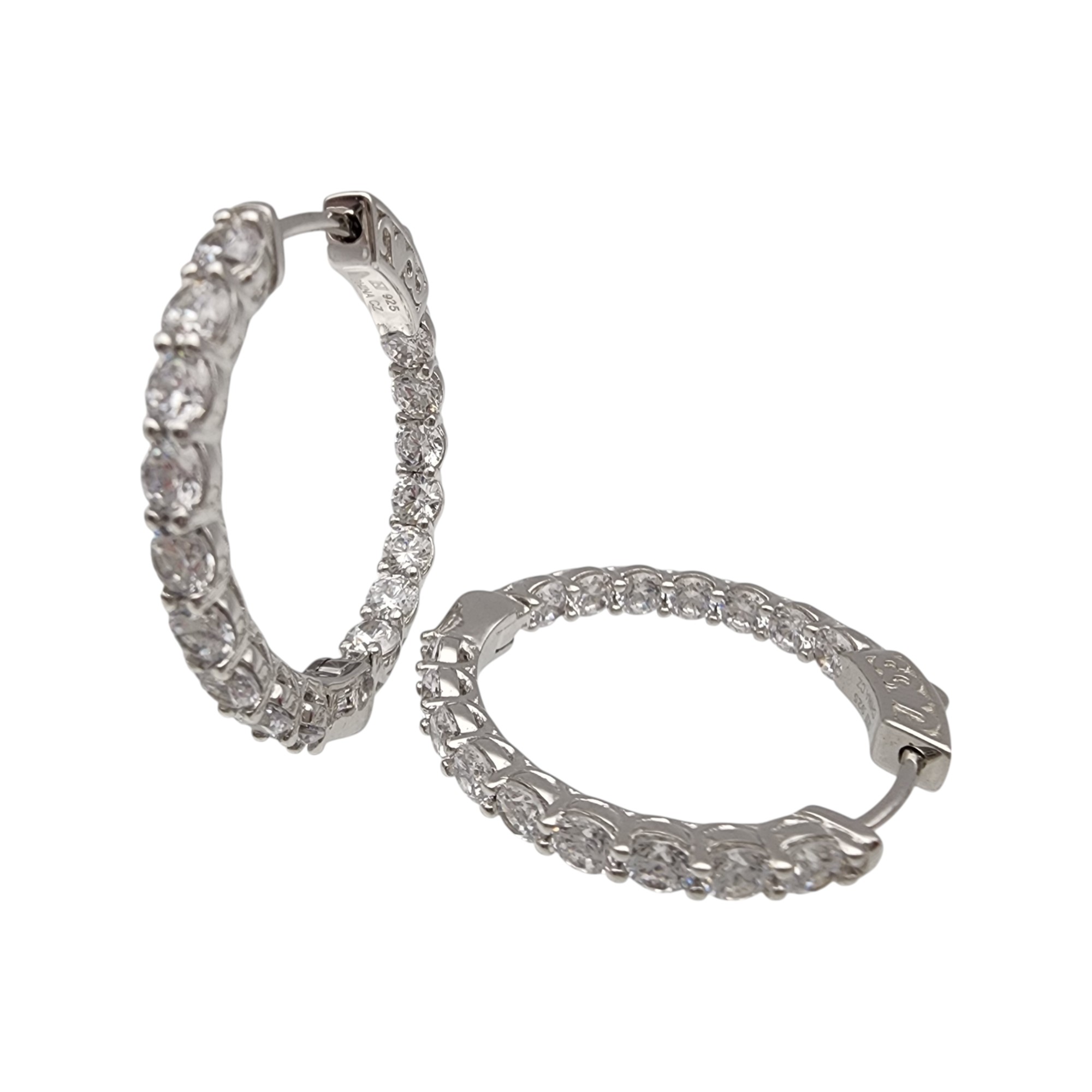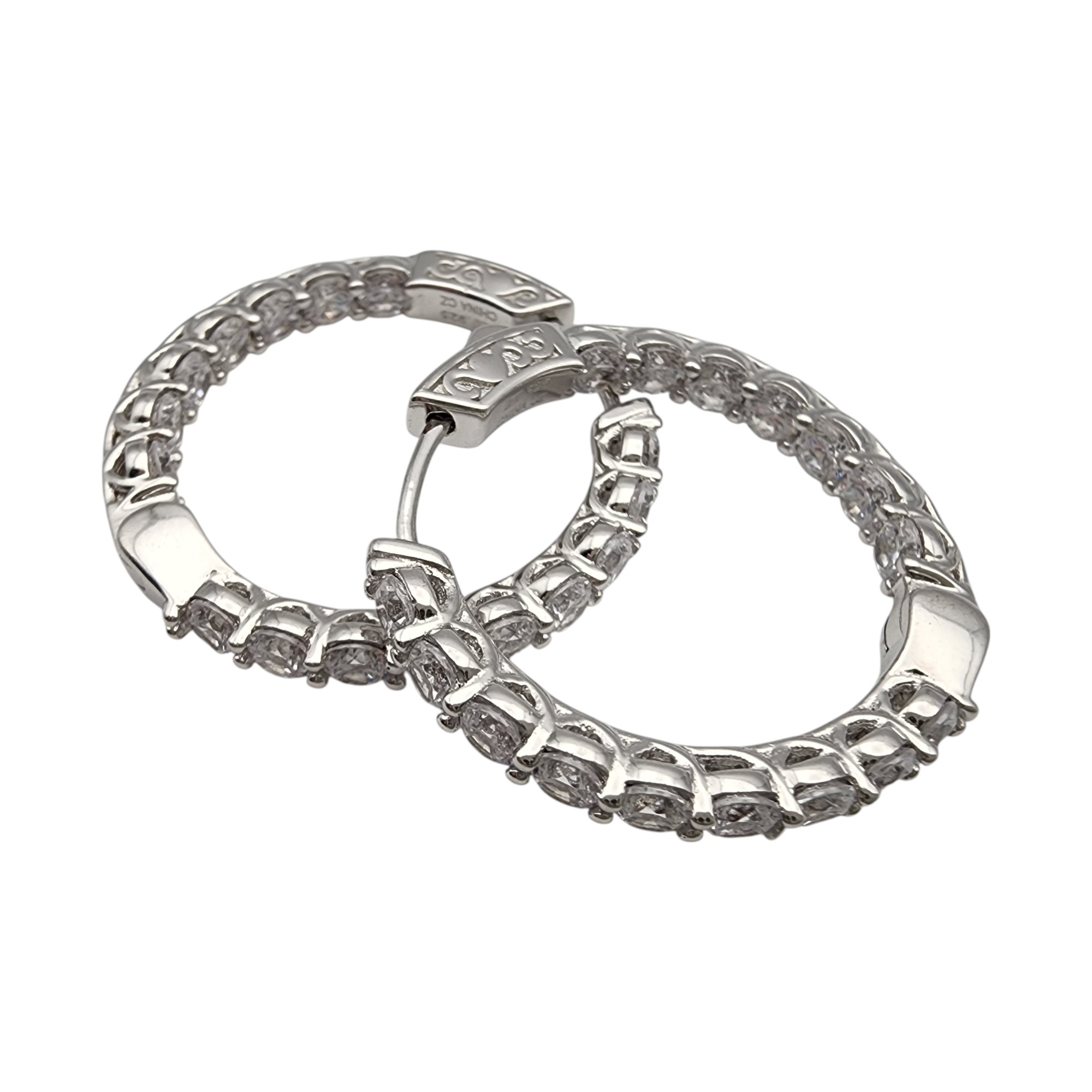 Sterling Double Sided Cubic Zirconia Hoop Earrings, 7.6g