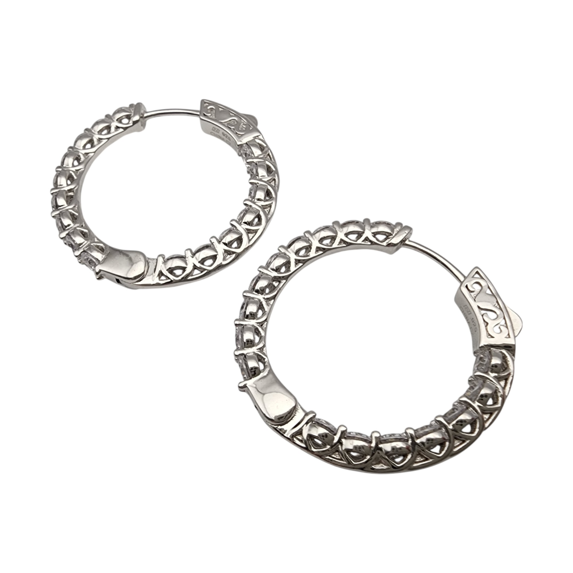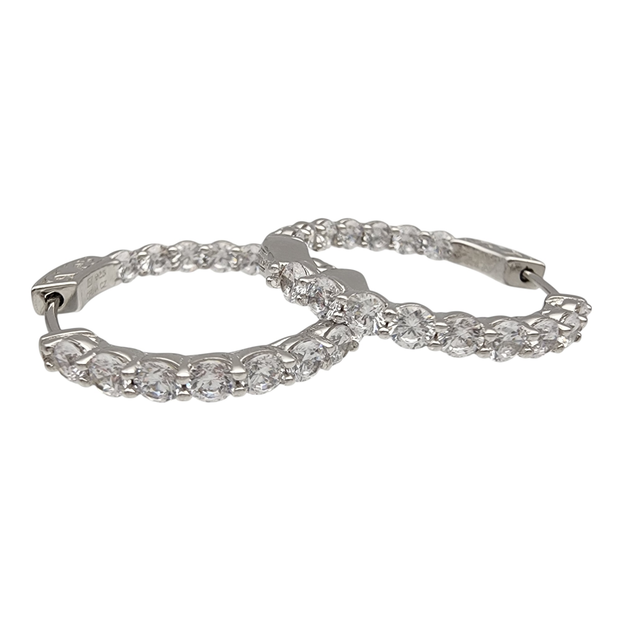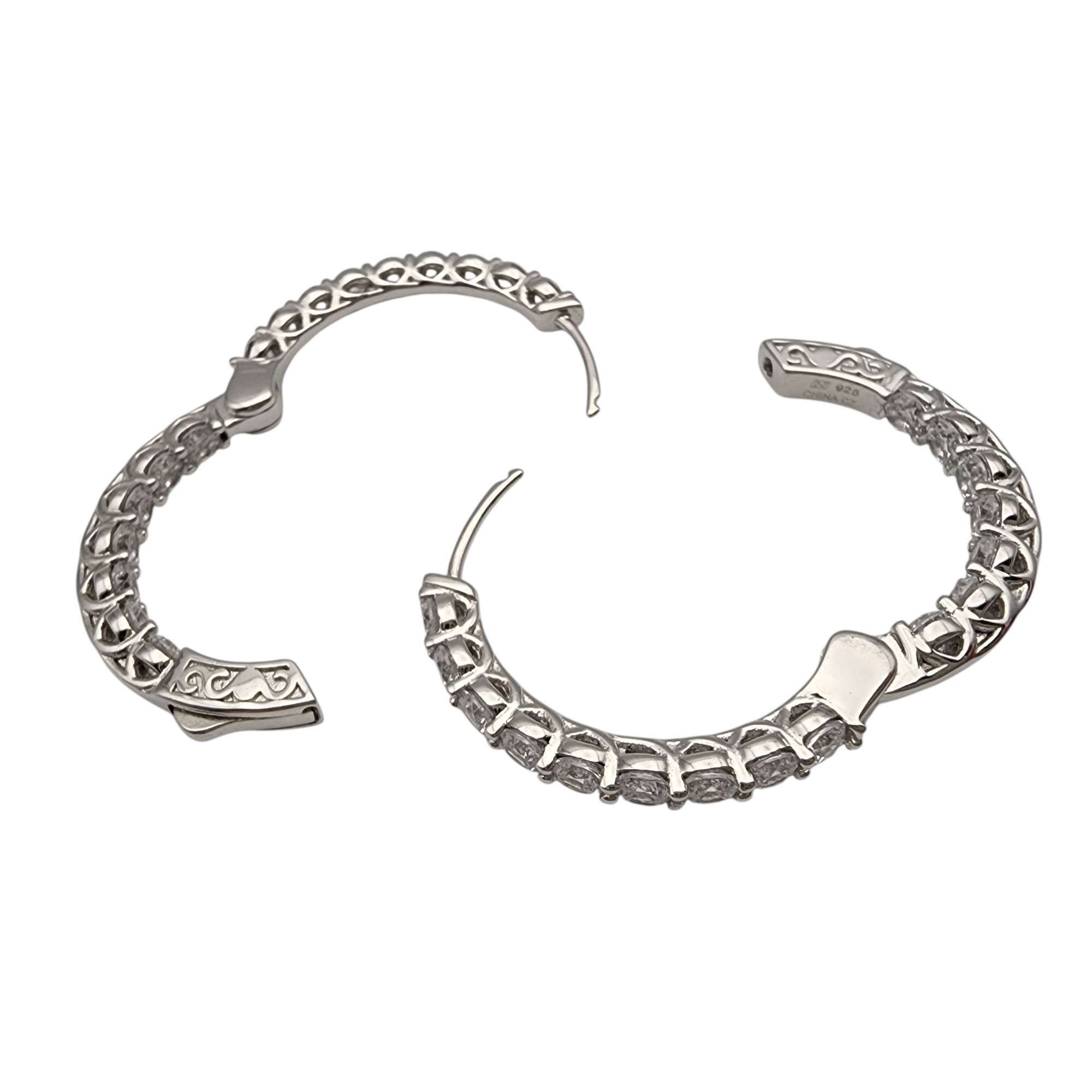 Sterling Double Sided Cubic Zirconia Hoop Earrings, 7.6g