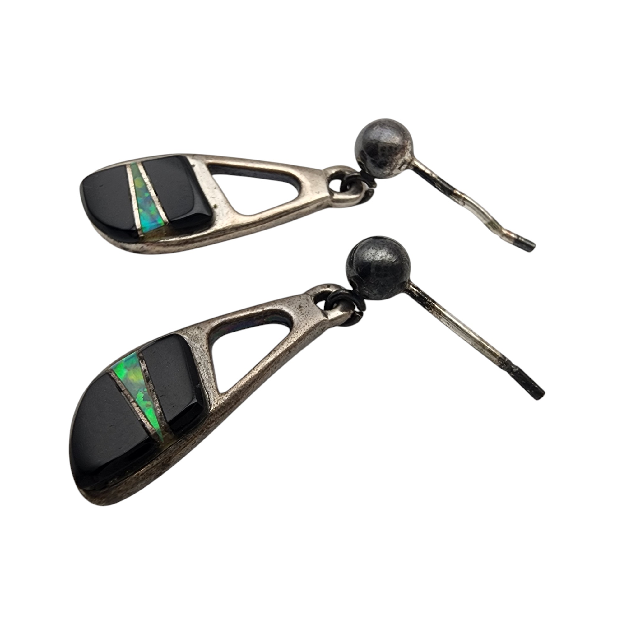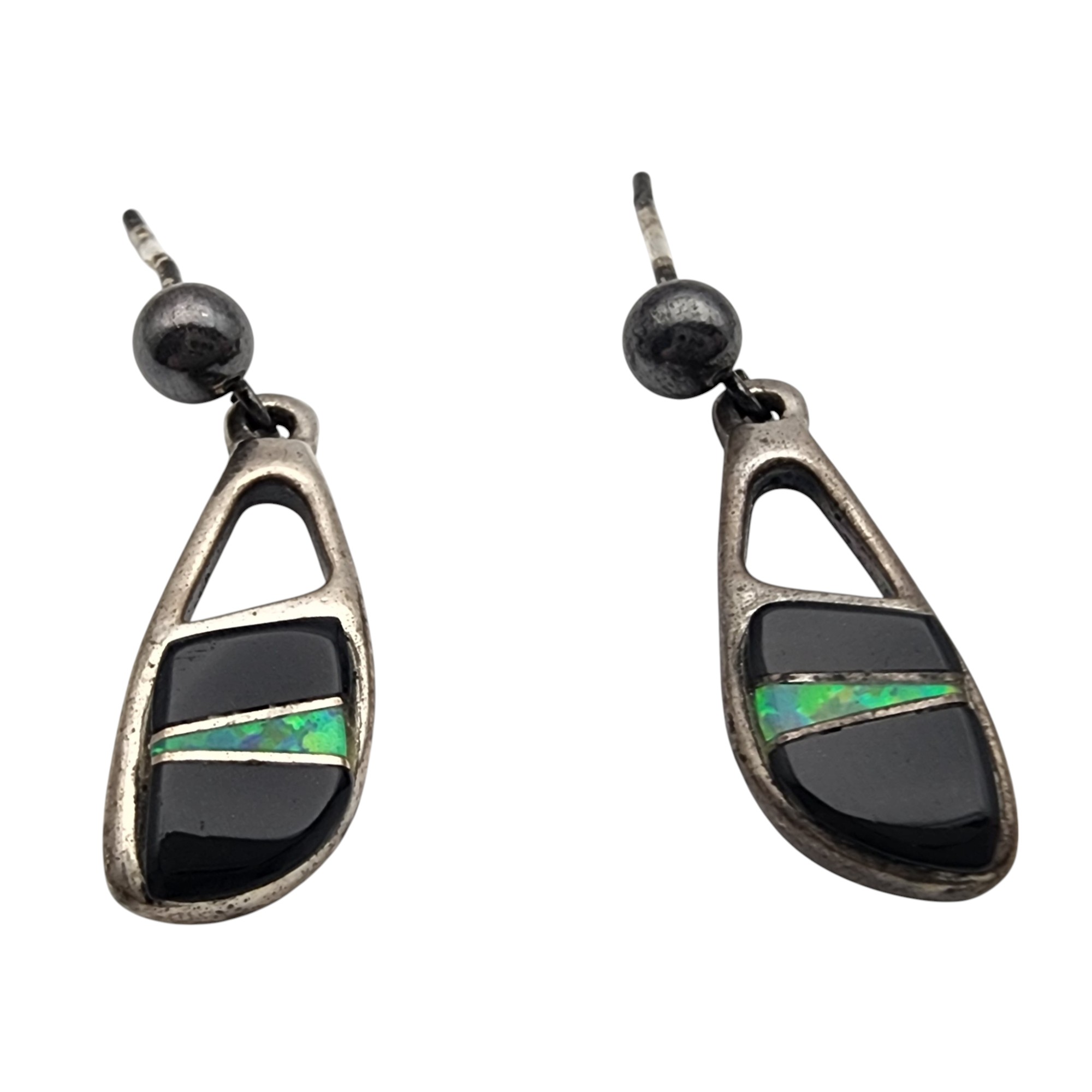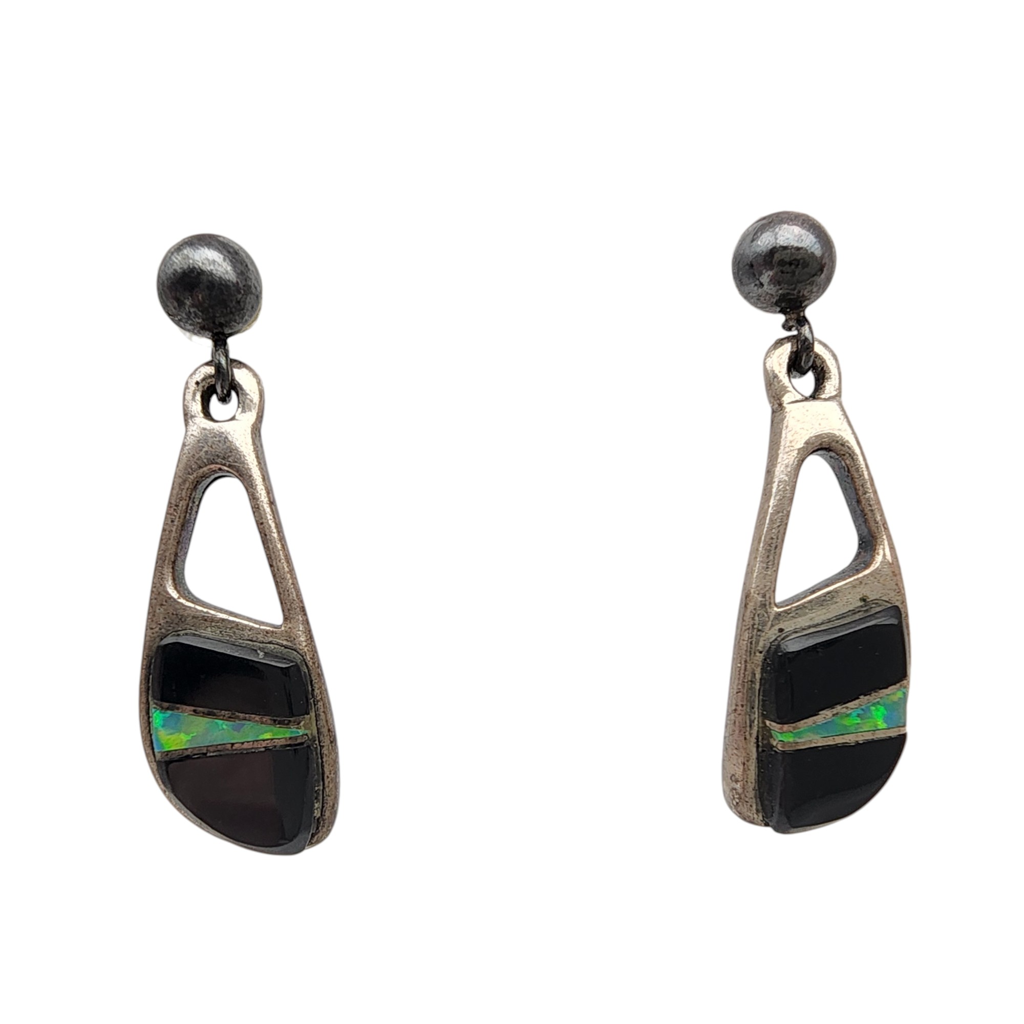 Lazuni Designer Sterling Onyx and Opal Inlay Earrings, 3g