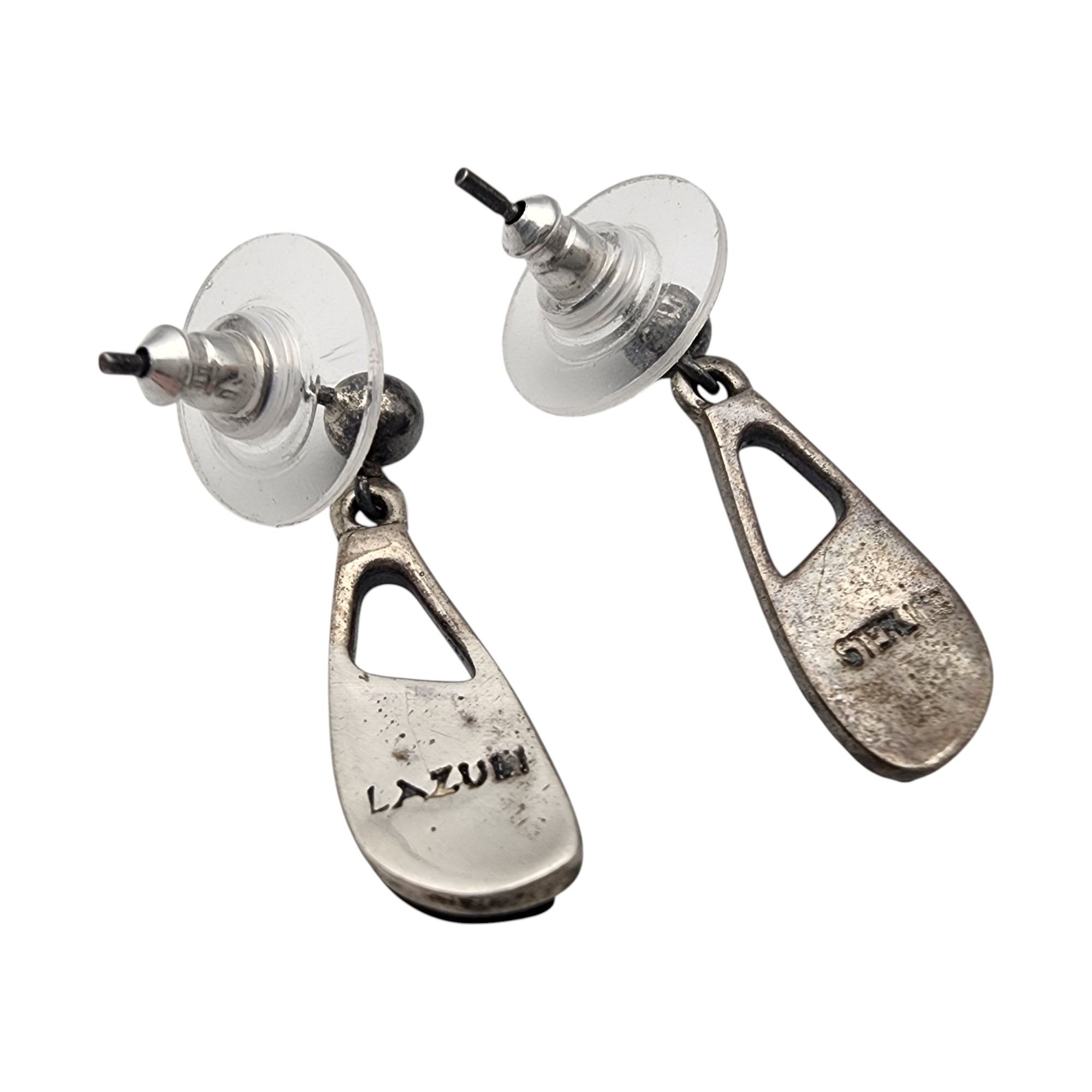 Lazuni Designer Sterling Onyx and Opal Inlay Earrings