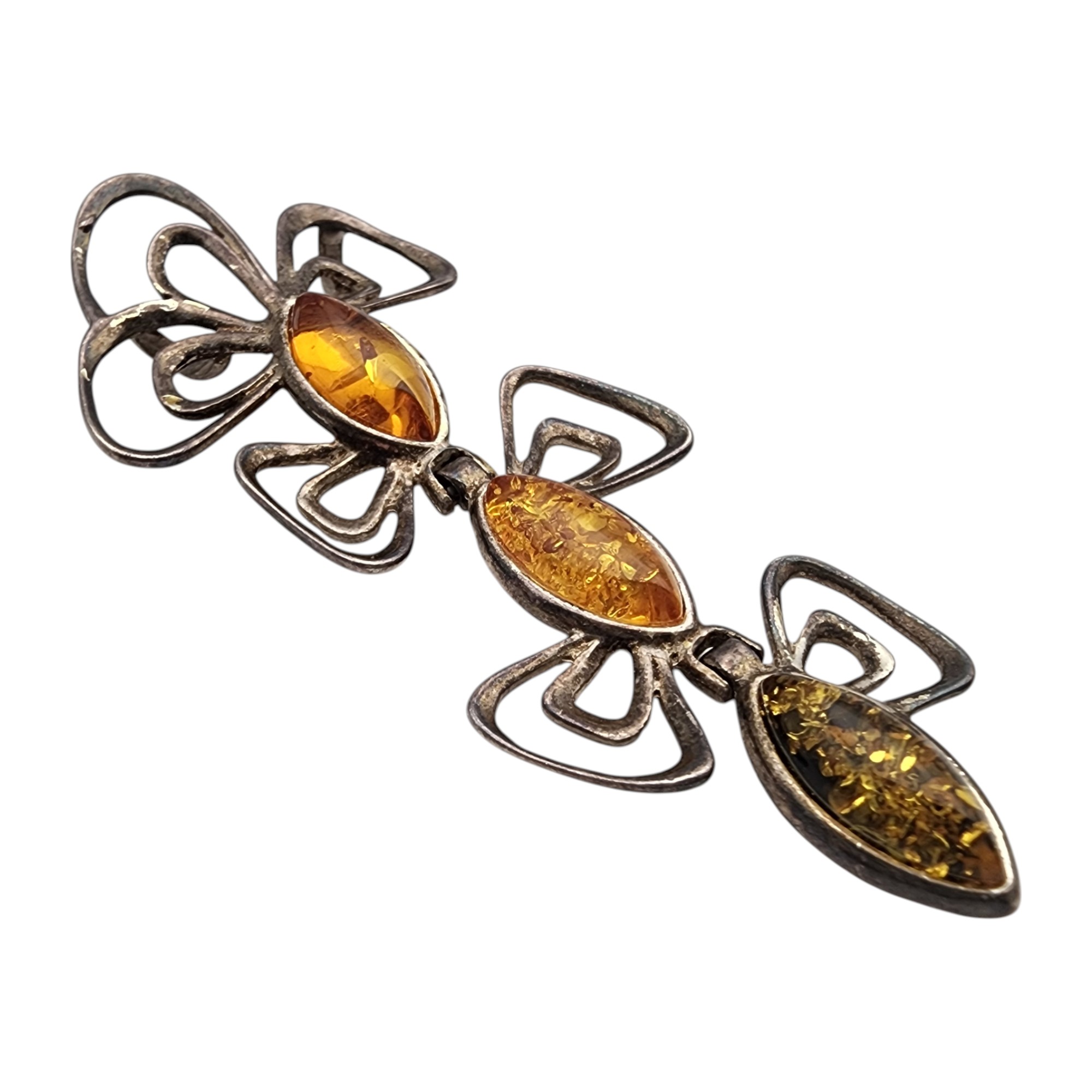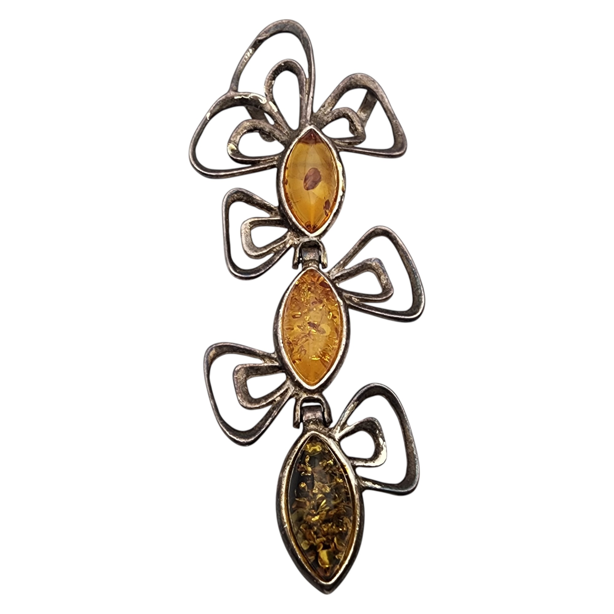 Vintage Sterling Silver Amber Dangle Pendant, 5.8g