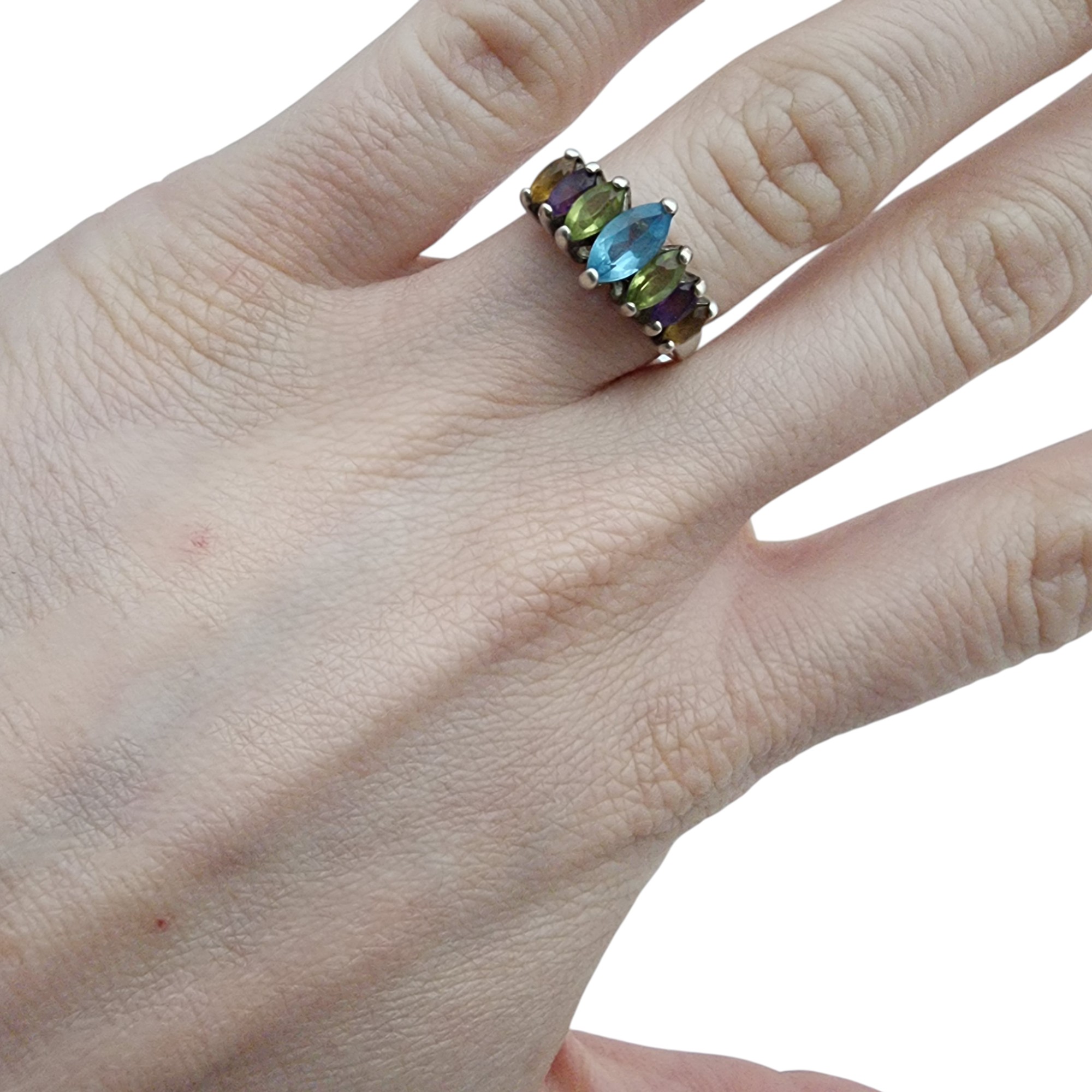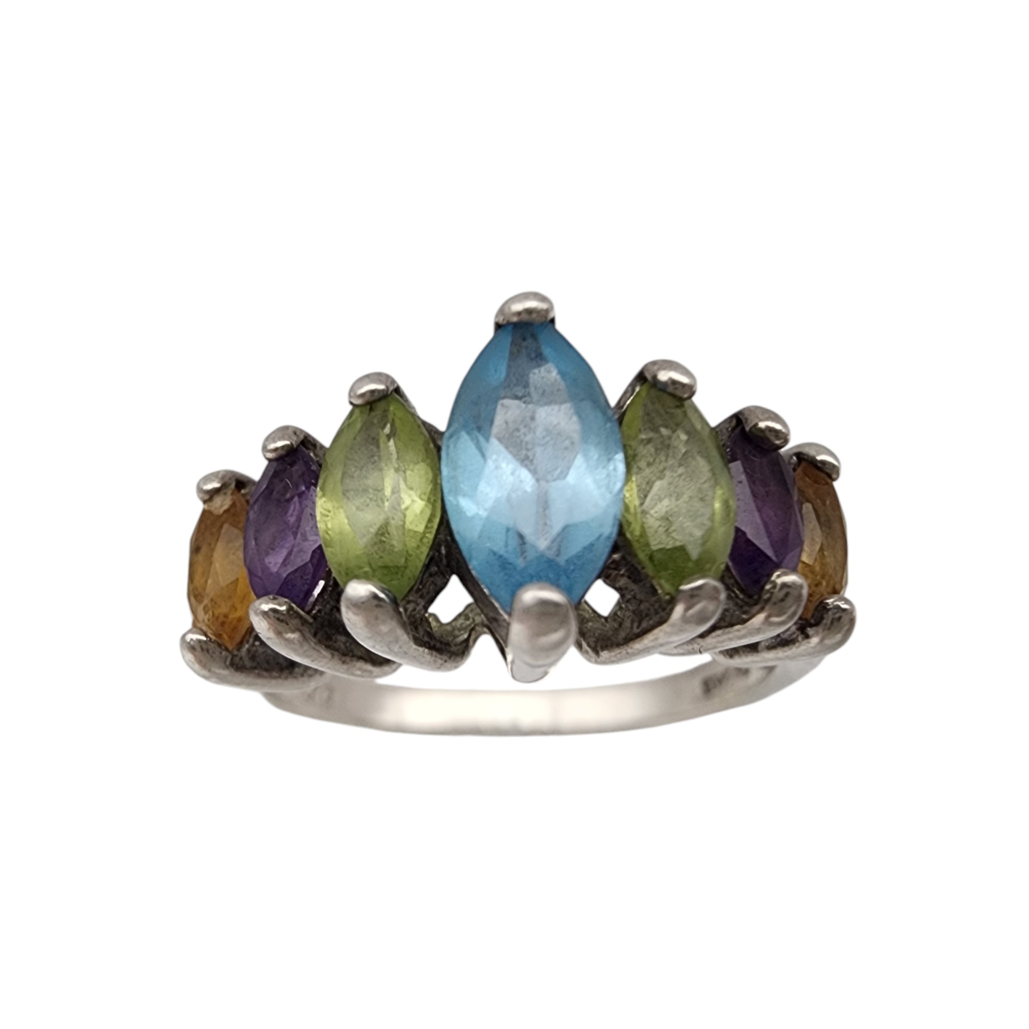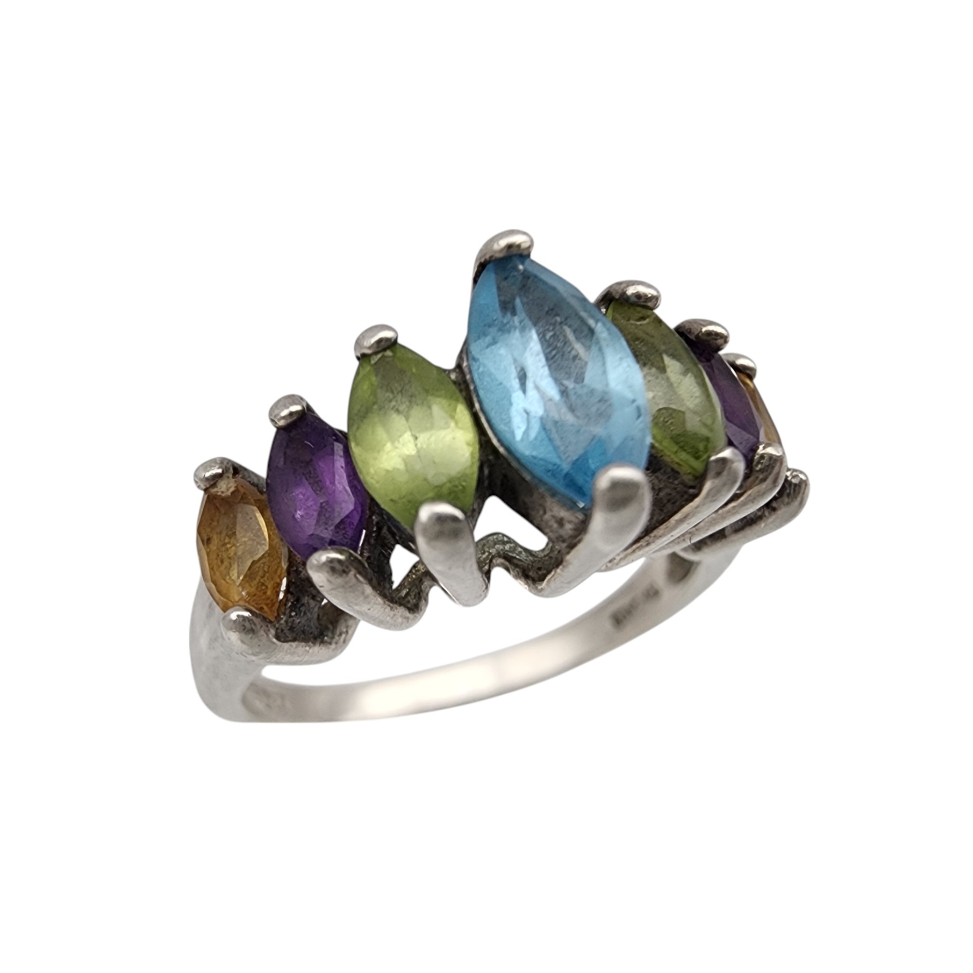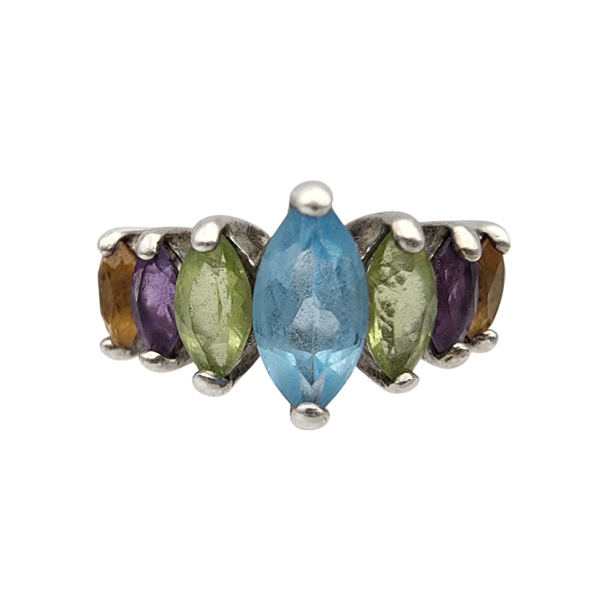 Sterling Multi Stone Ring Sz 6, 3.2g, topaz, amethyst, citrine, peridot