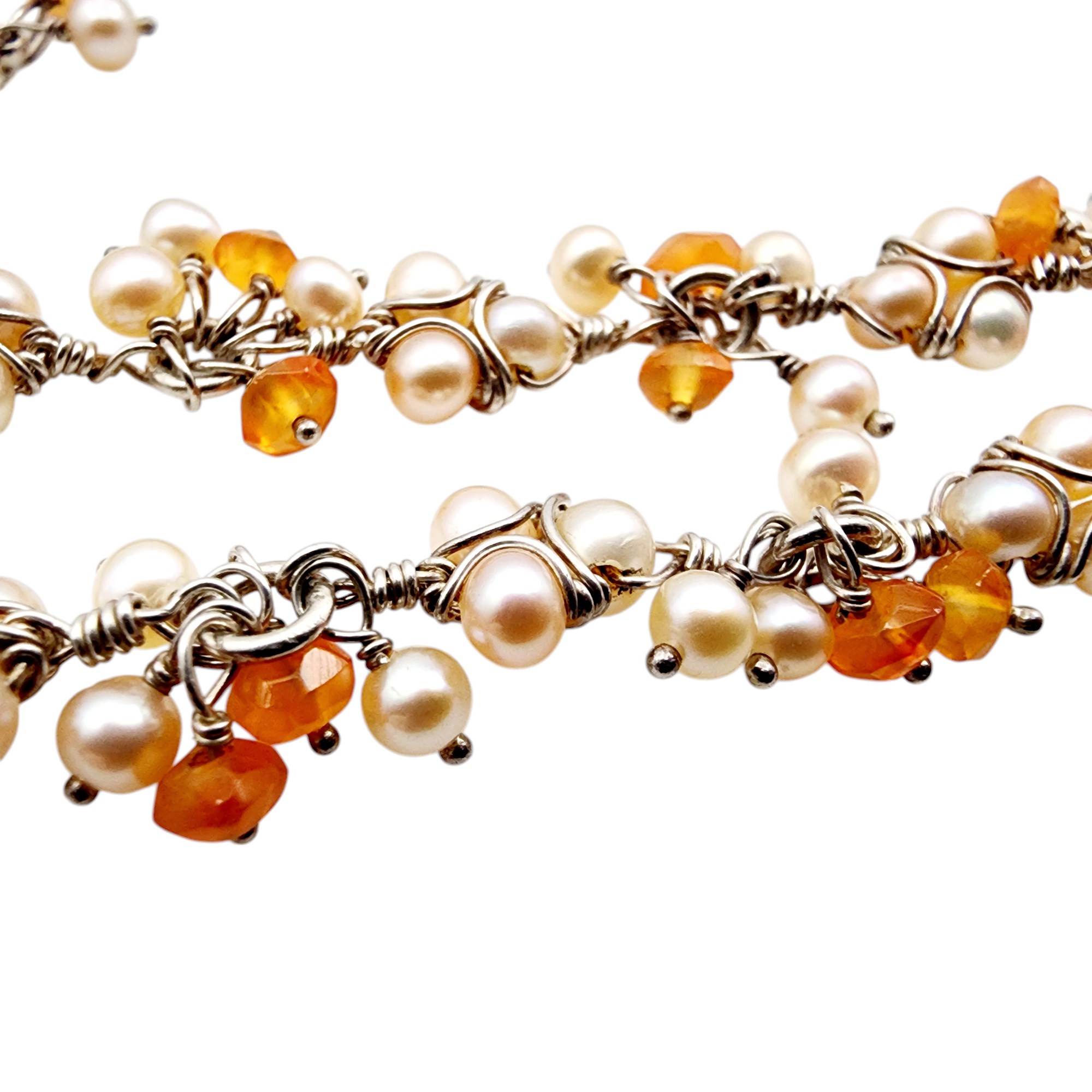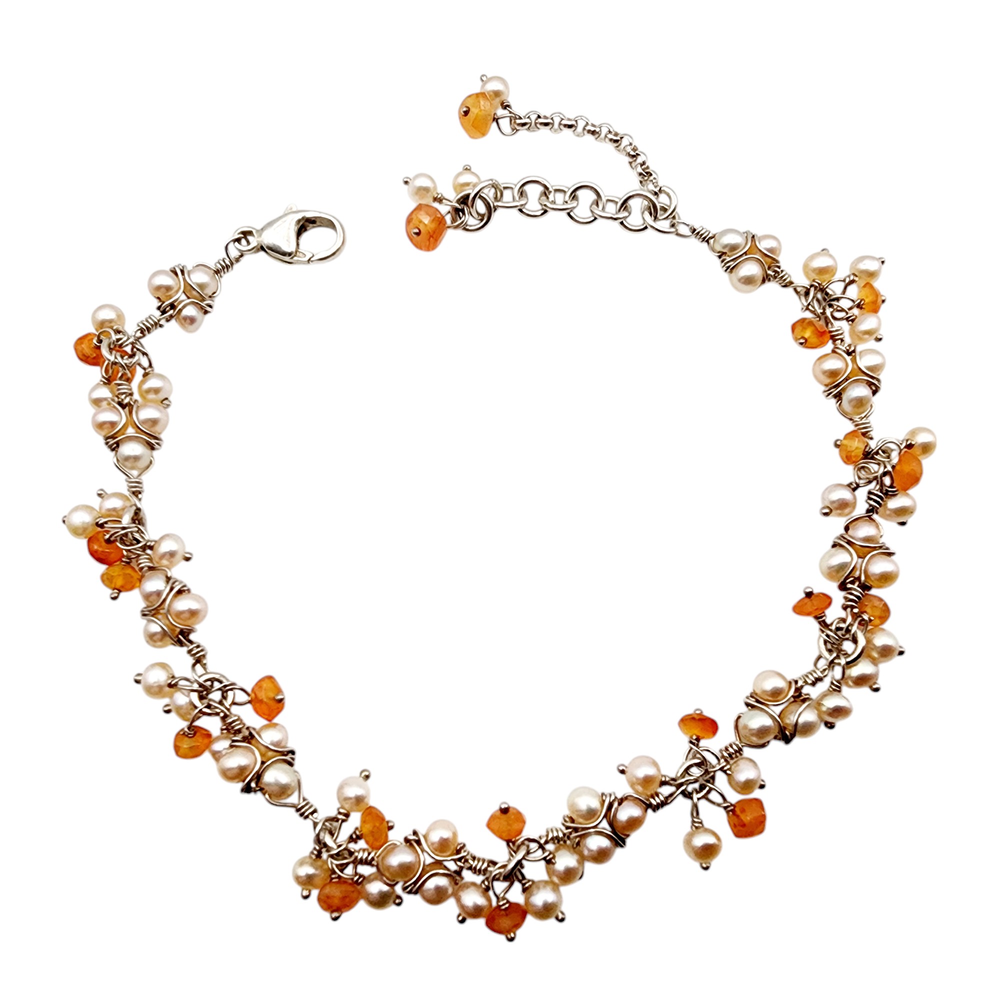 Sterling Amber and Pearl Bead Bracelet 8.7g