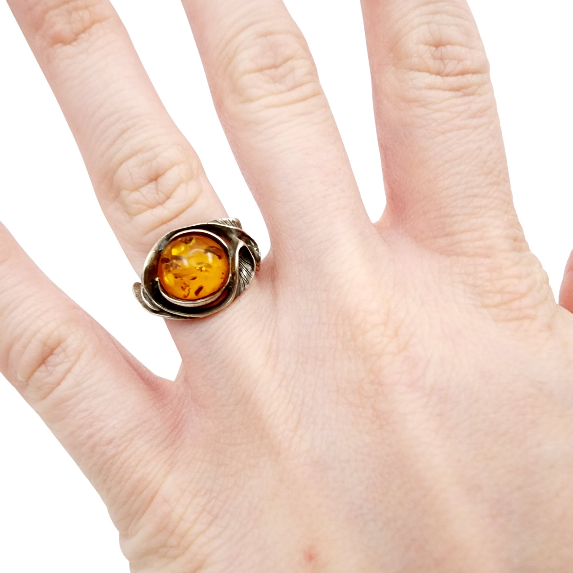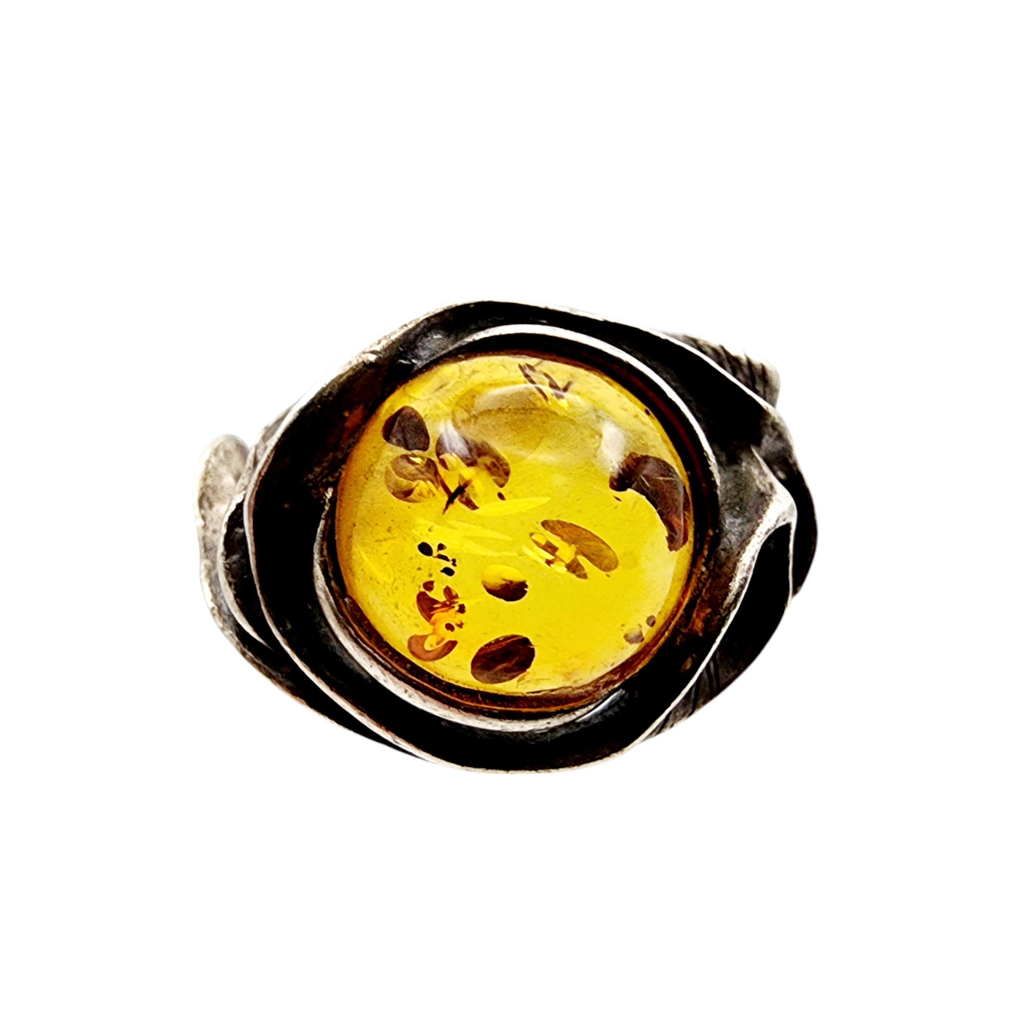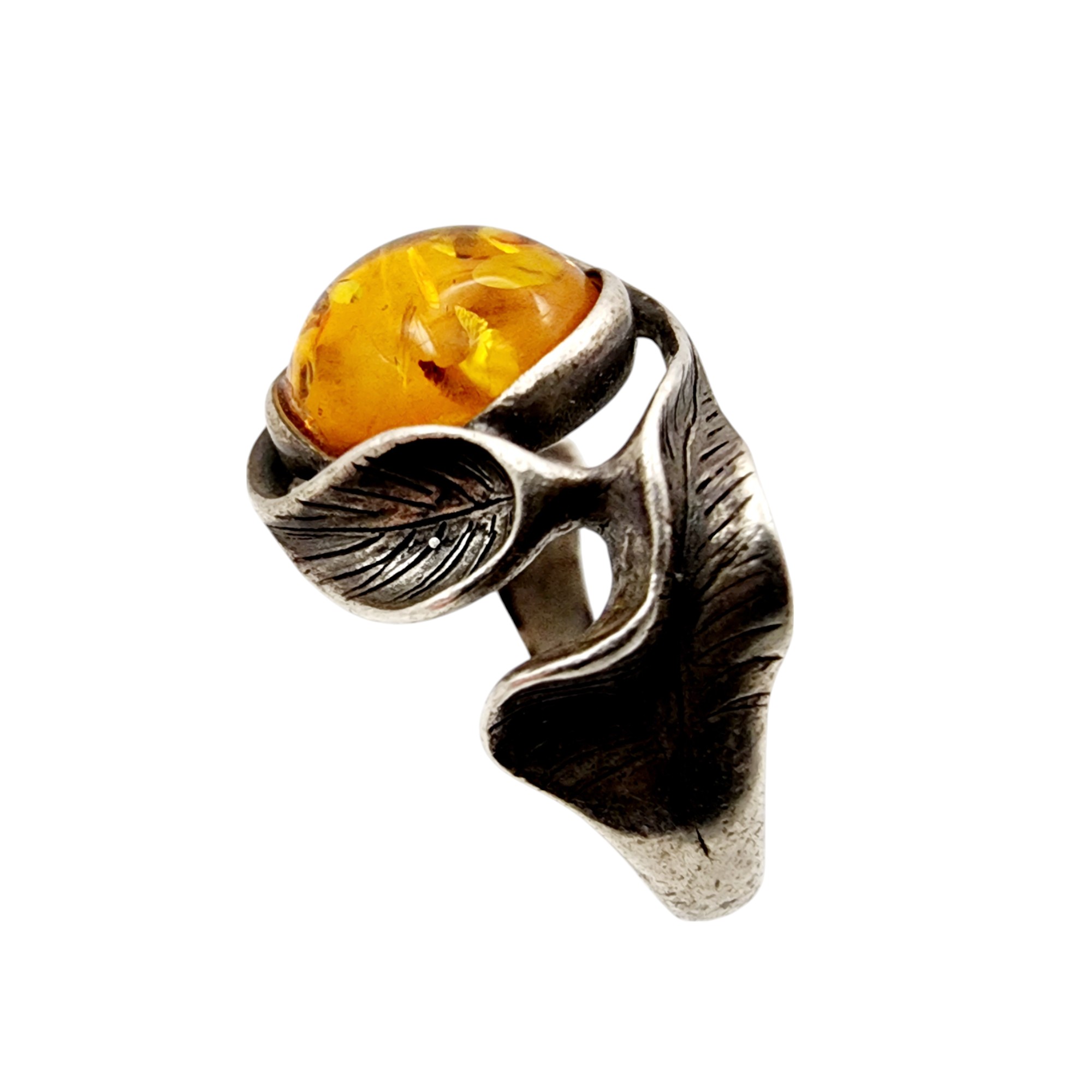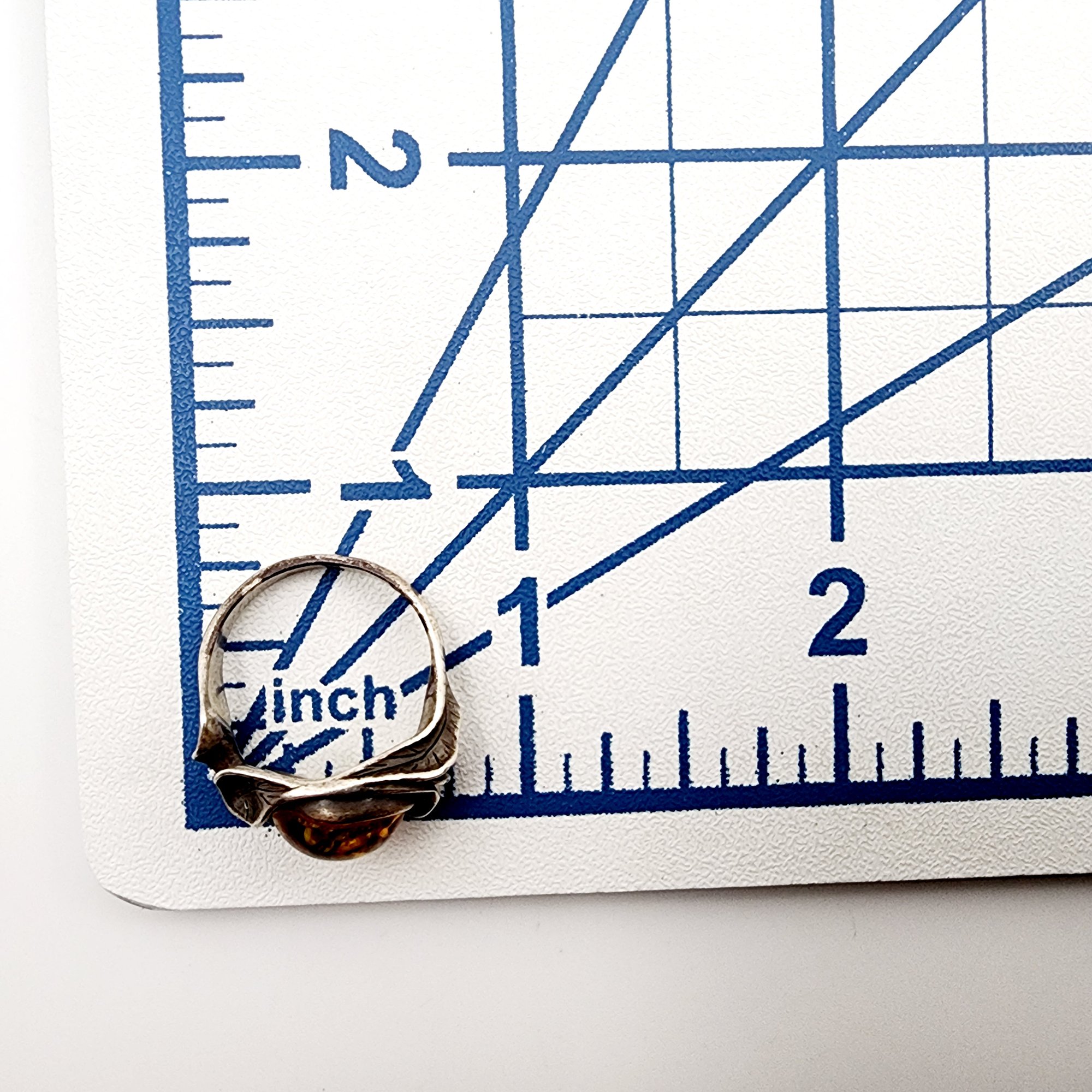 Vintage Sterling Brutalist Amber Ring Sz 5.5 4g