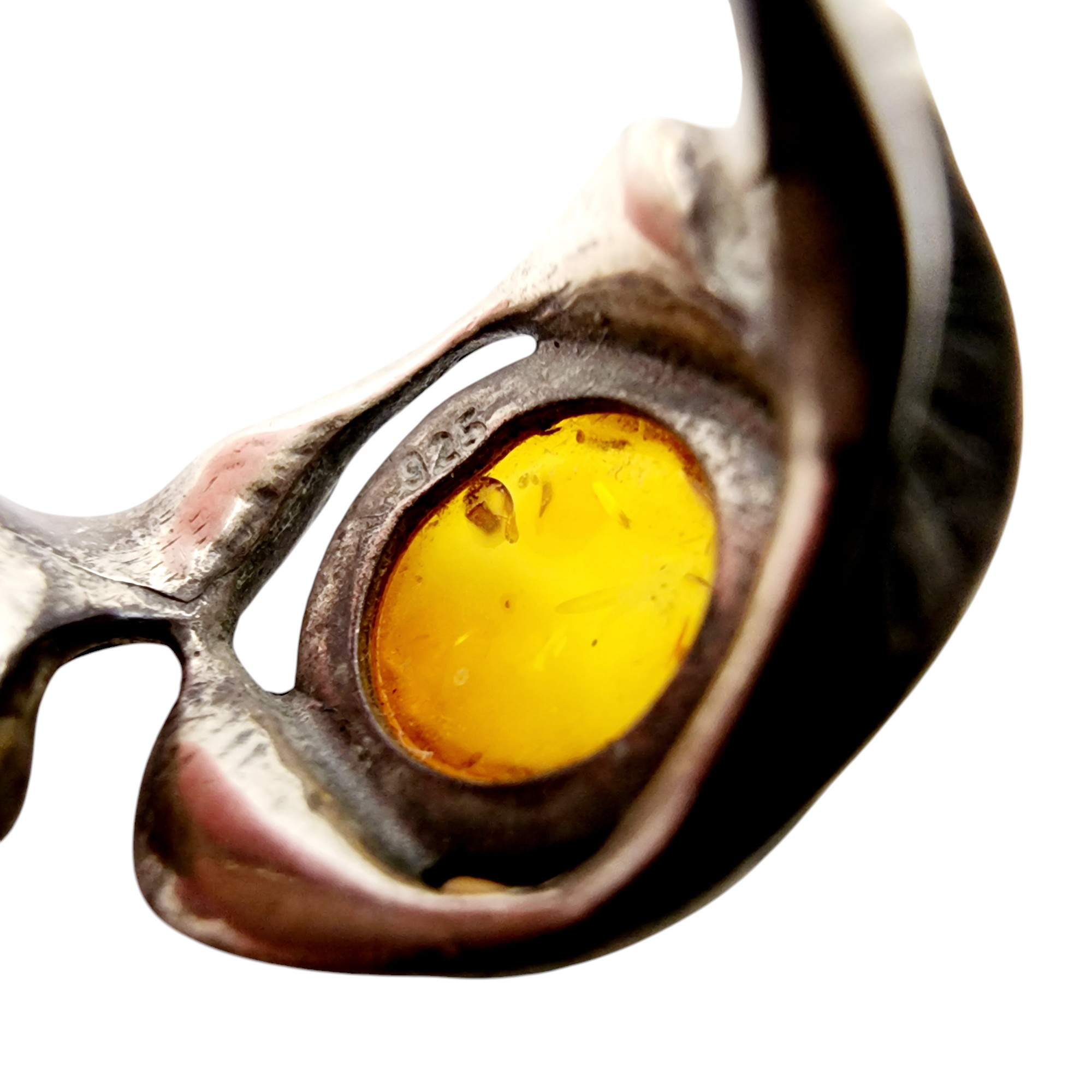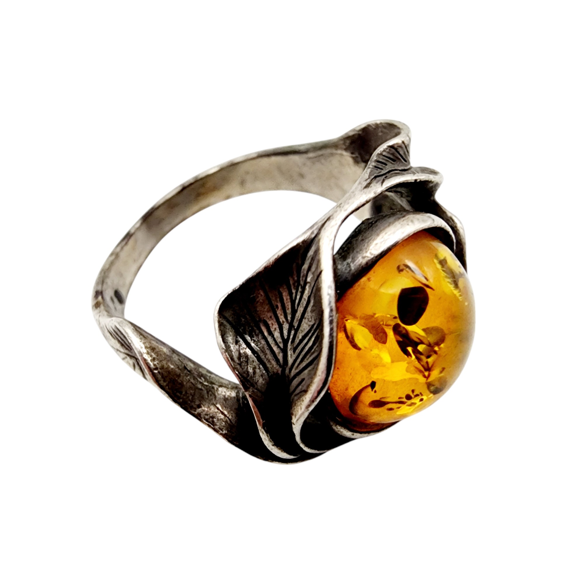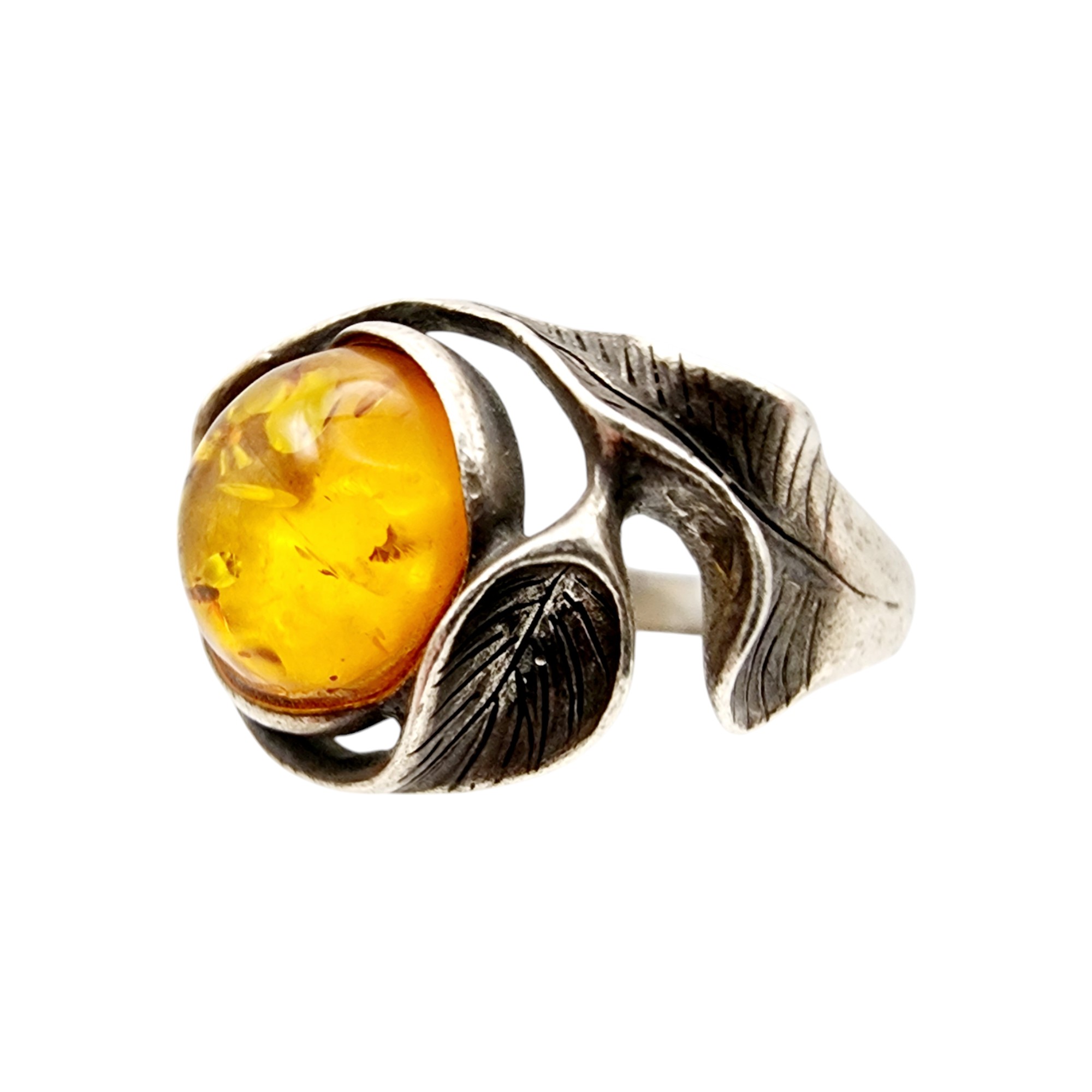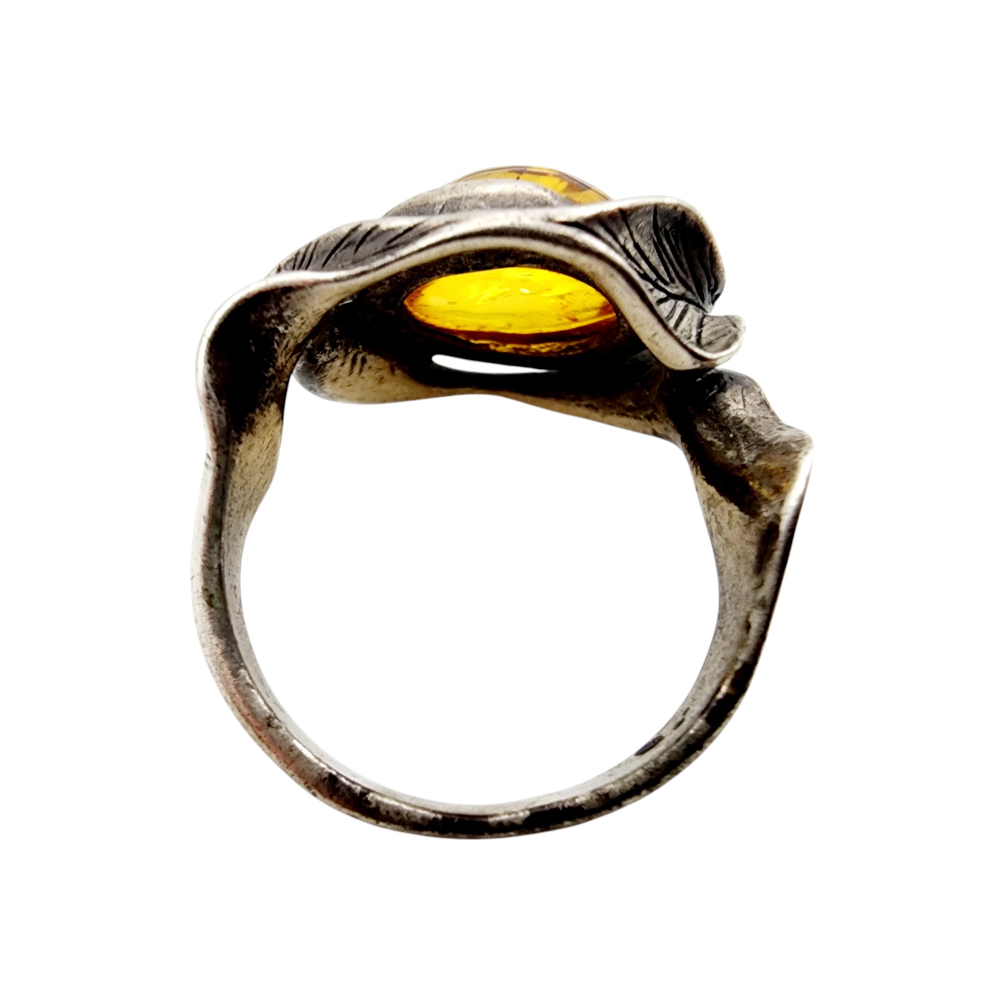 Vintage Sterling Brutalist Amber Ring Sz 5.5 4g