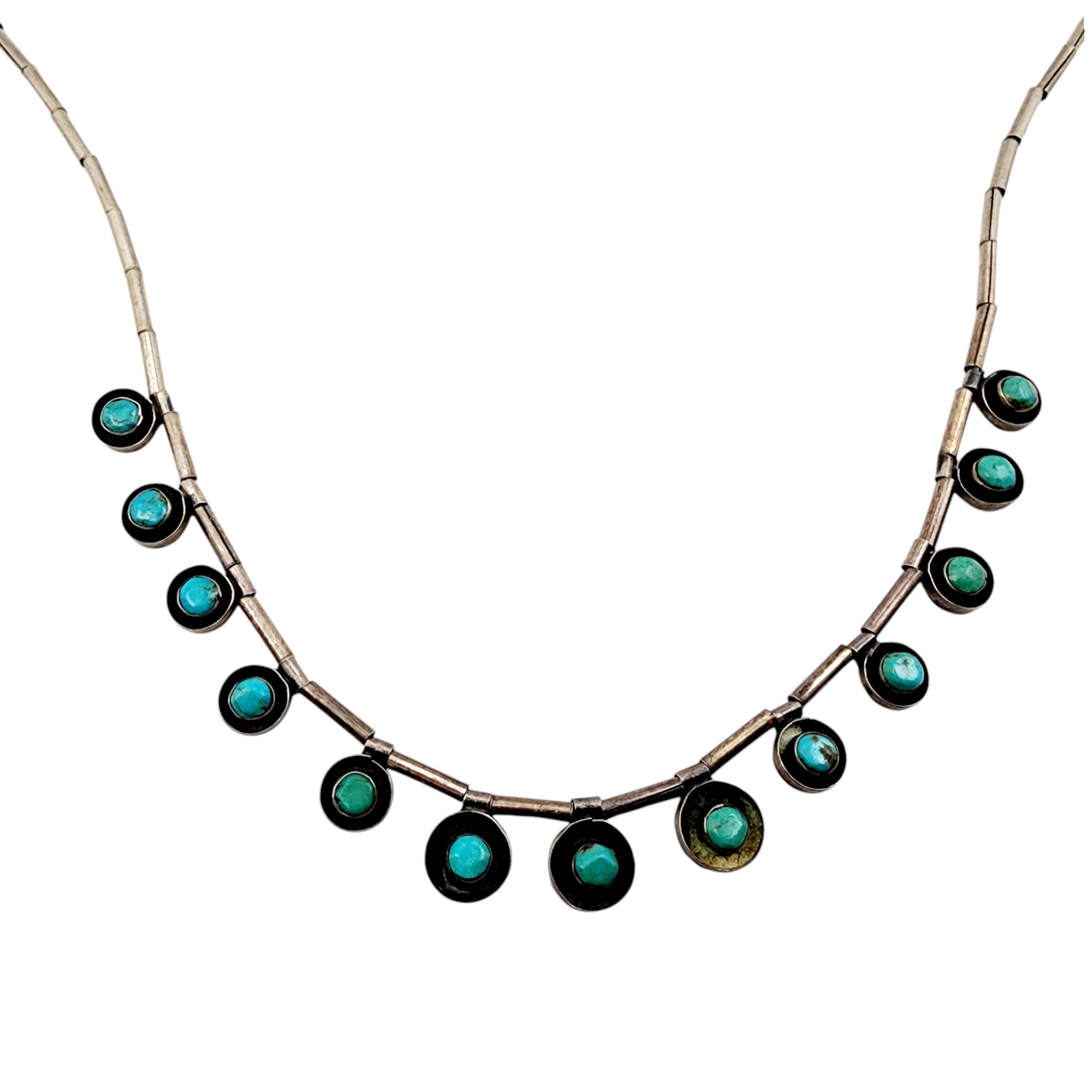 Vintage Taxco Mexico Sterling Turquoise Necklace 16.9g