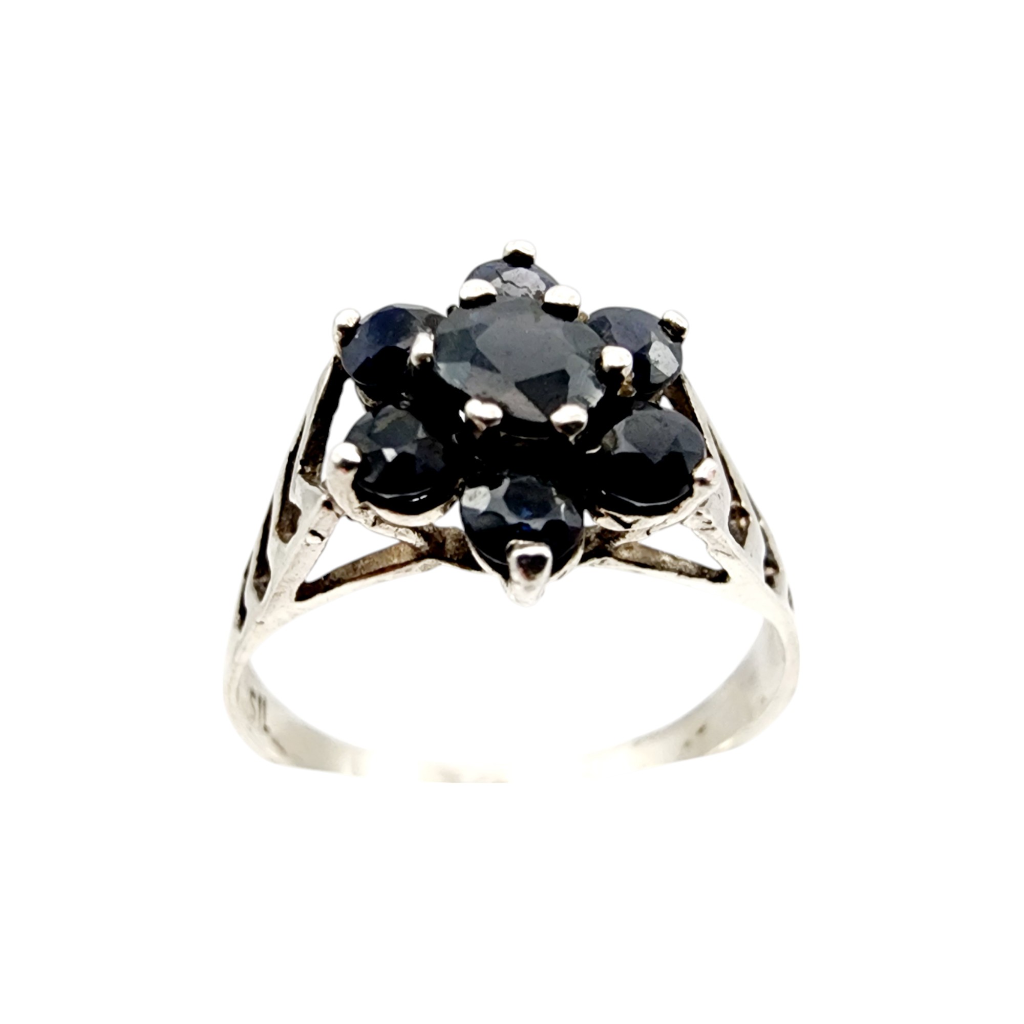 Sterling Sapphire Cluster Ring Sz 7.25 1.8g