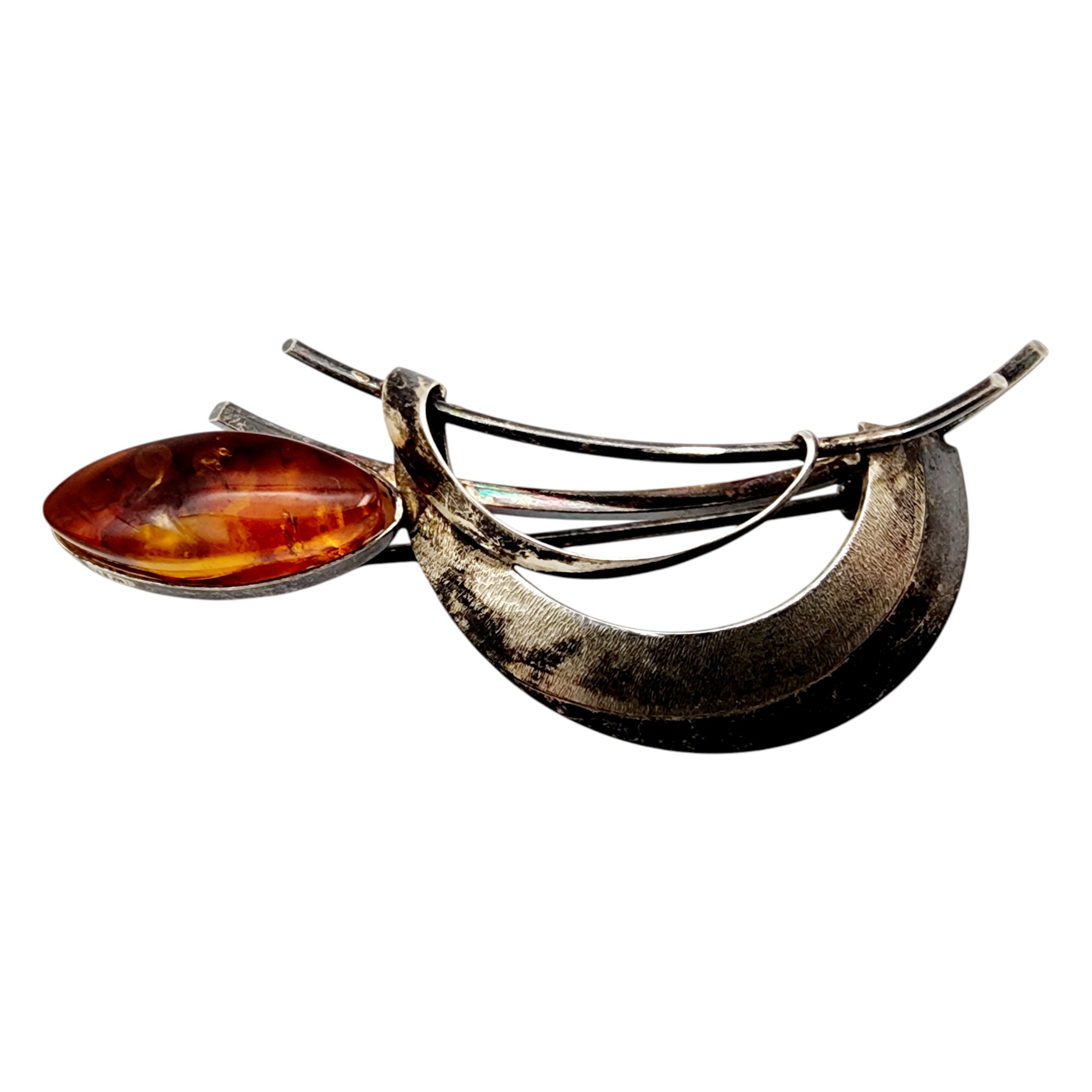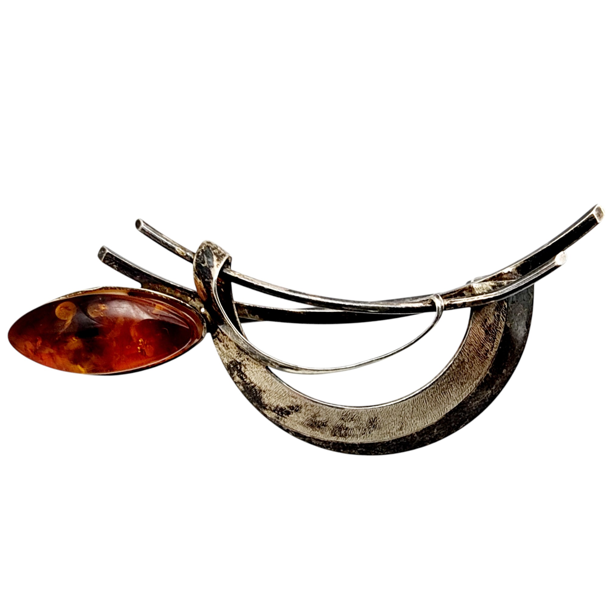 Antique Hallmarked Sterling Amber Brooch 5.4g