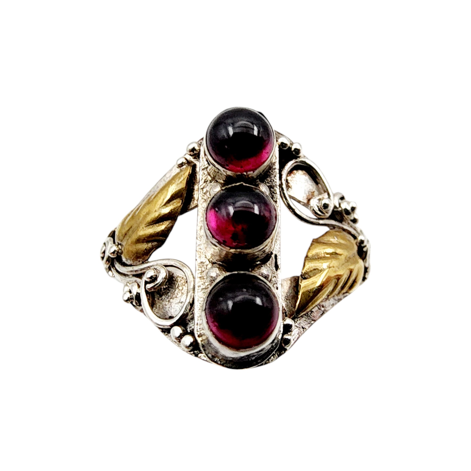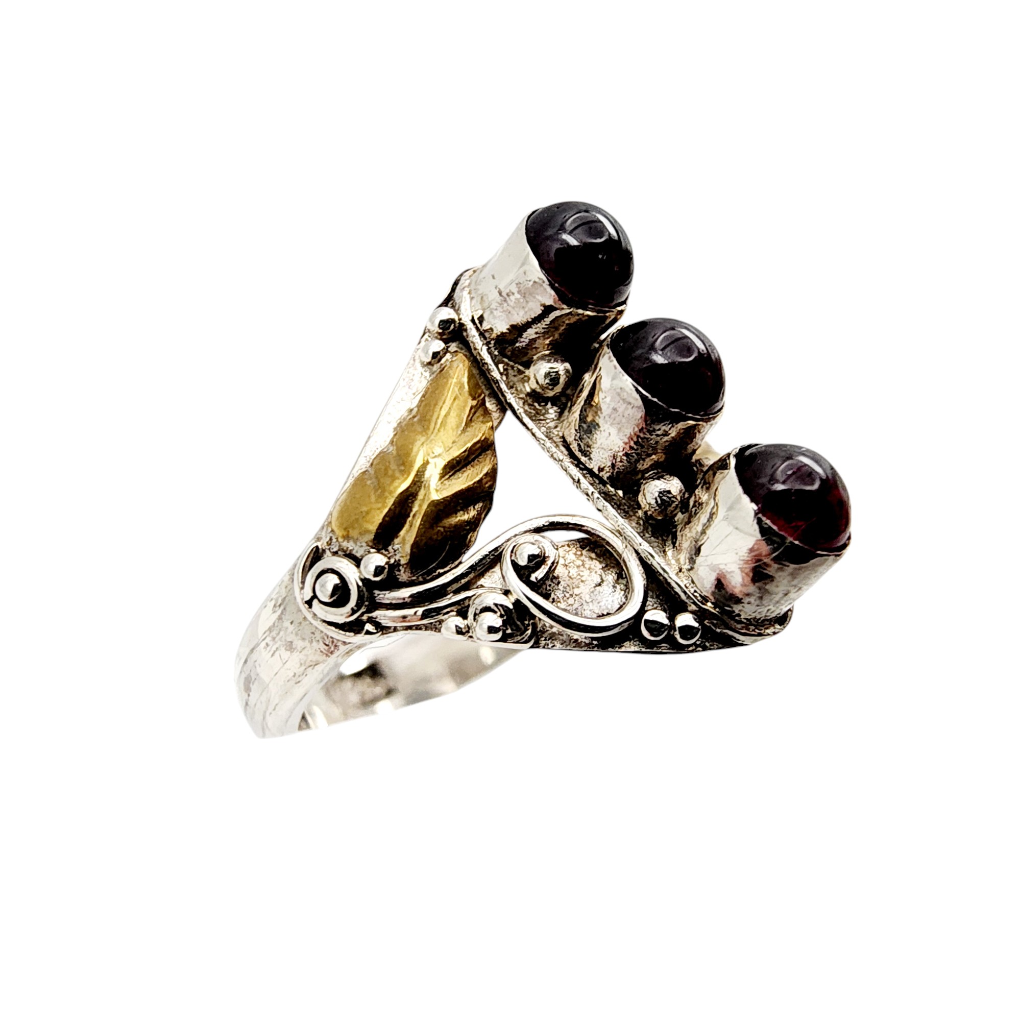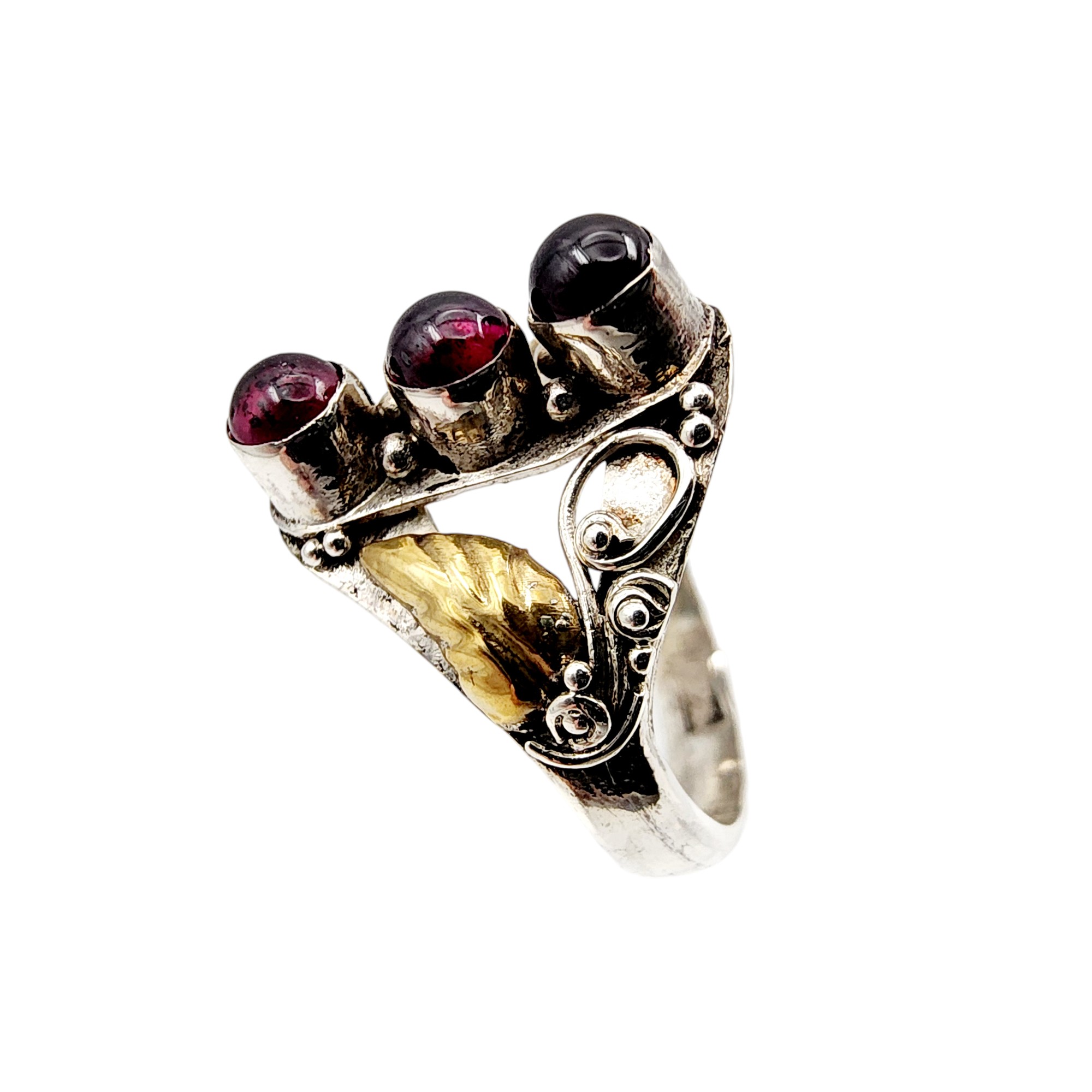 Sterling Garnet Scroll Ring Sz 4 2.2g