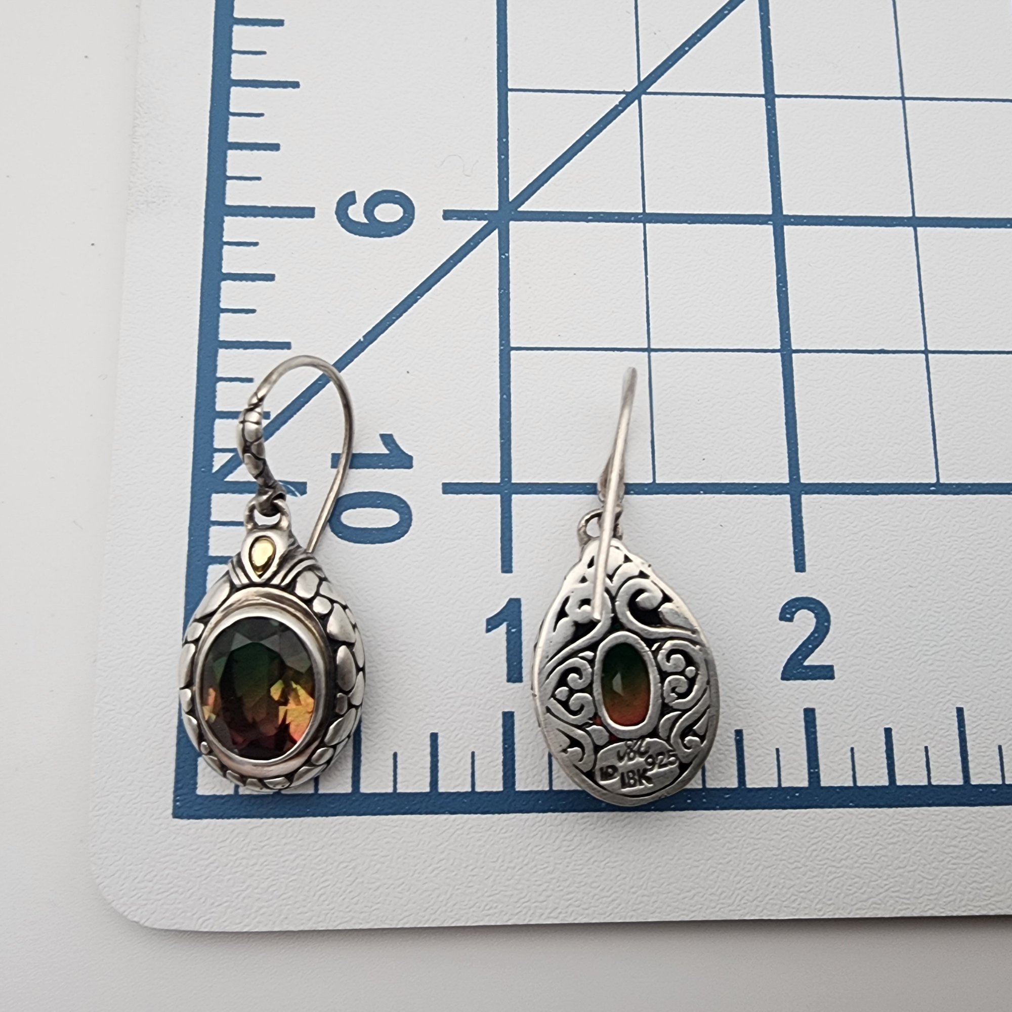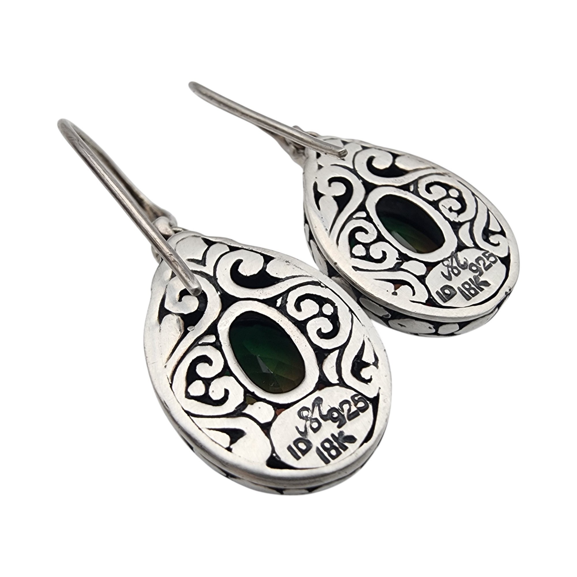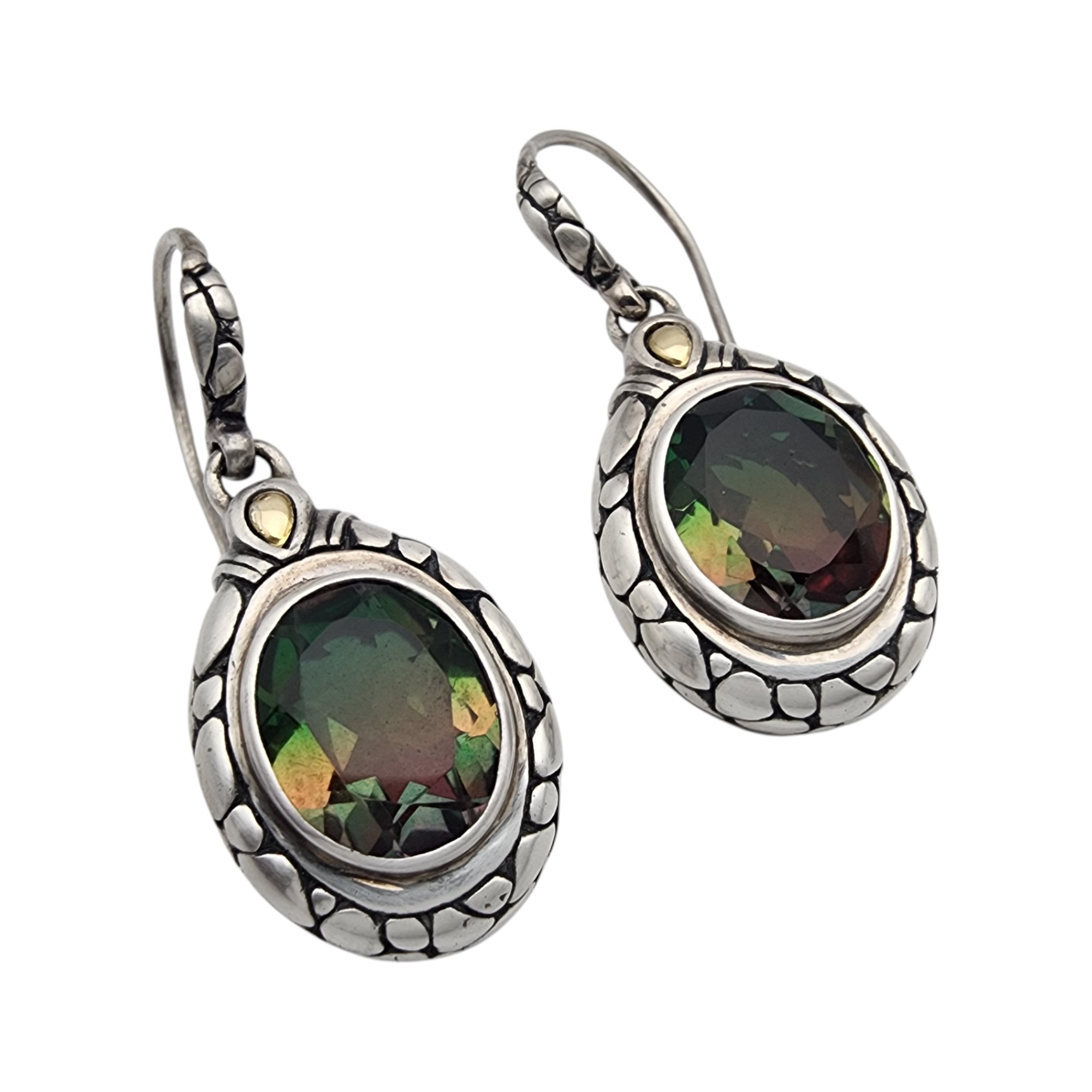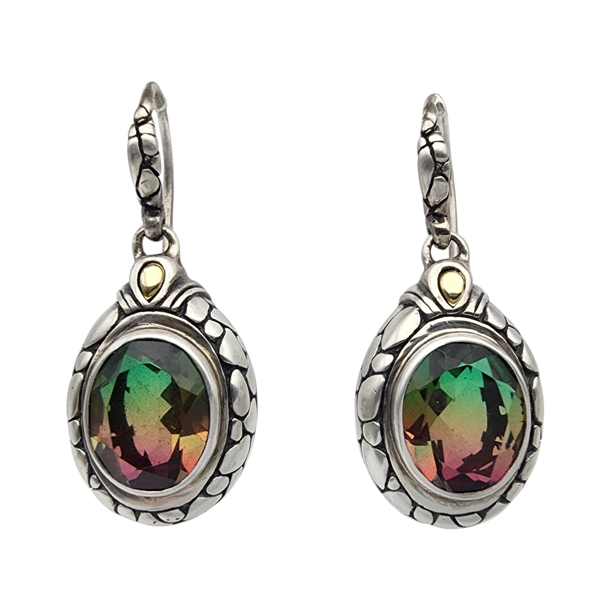 Signed 18k Gold & Sterling Watermelon Quartz Earrings, 9.5g