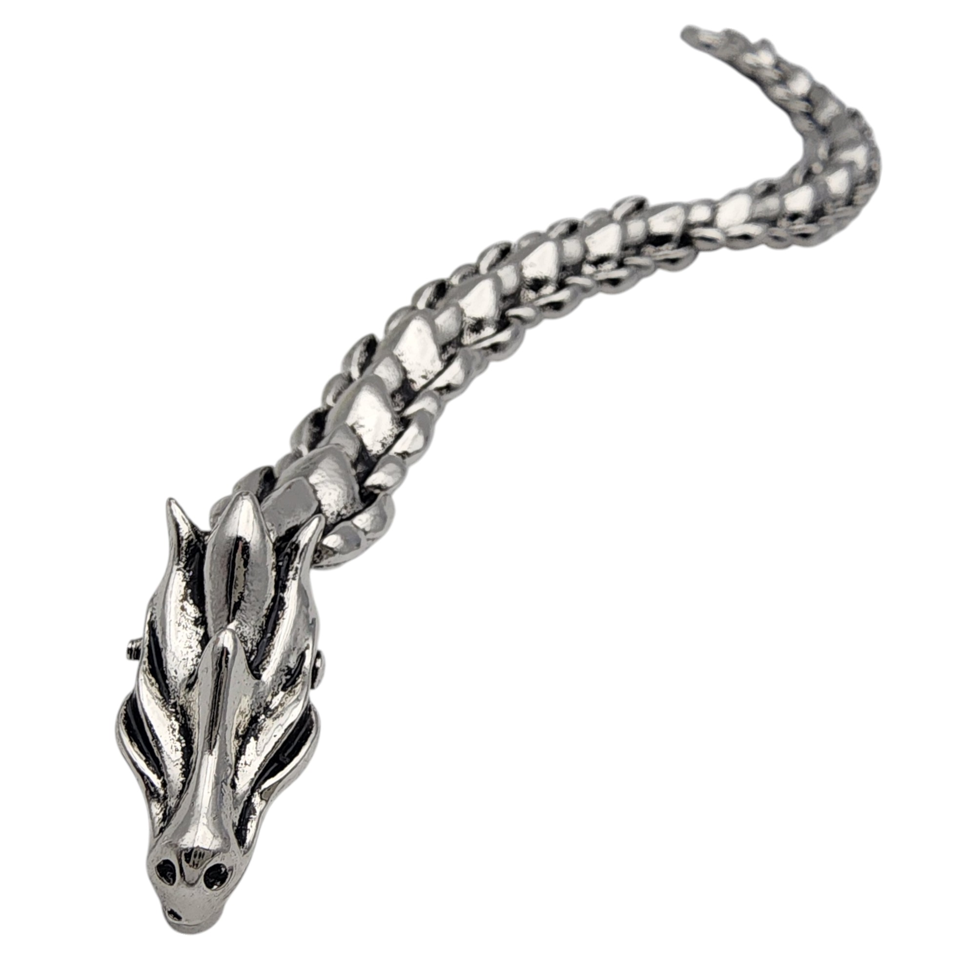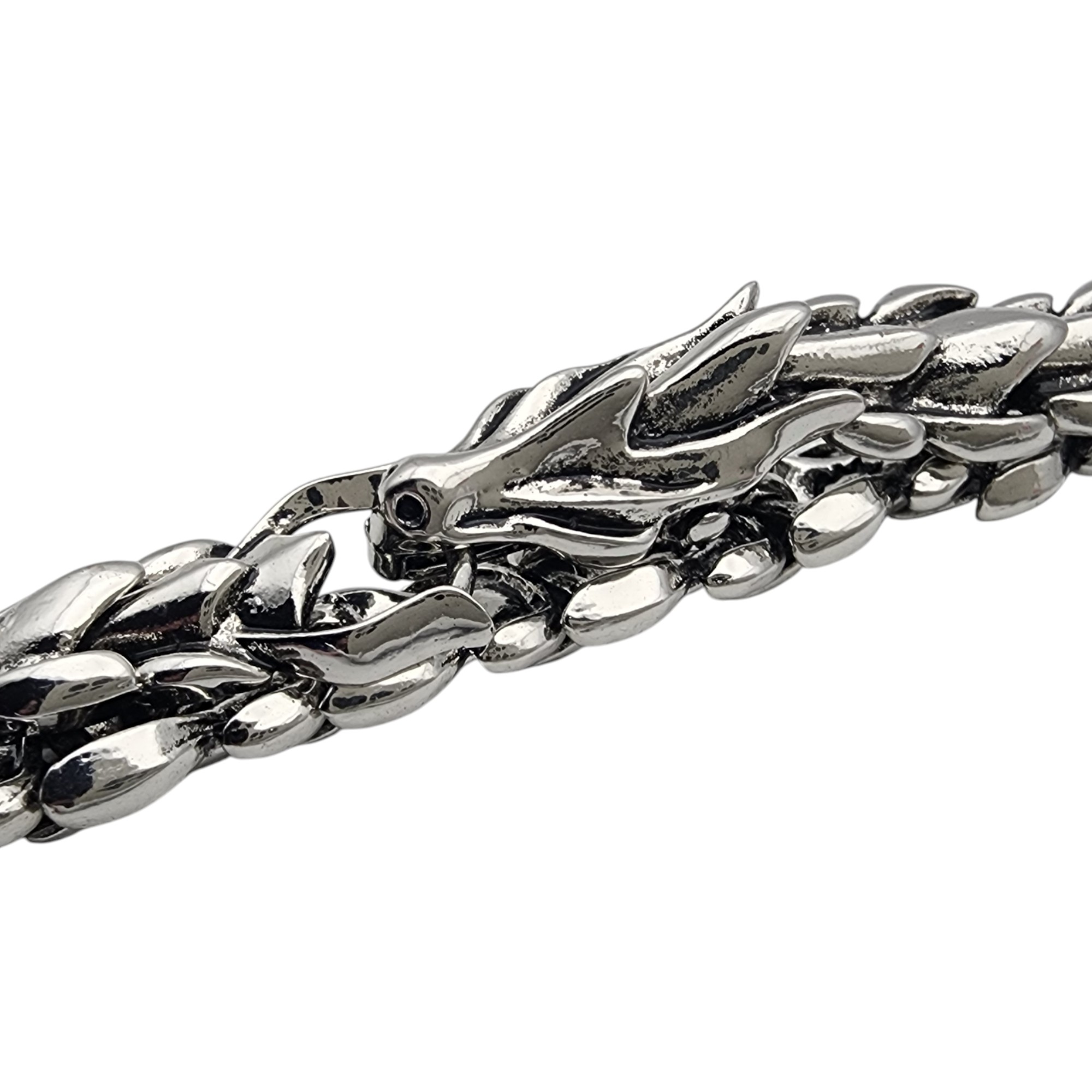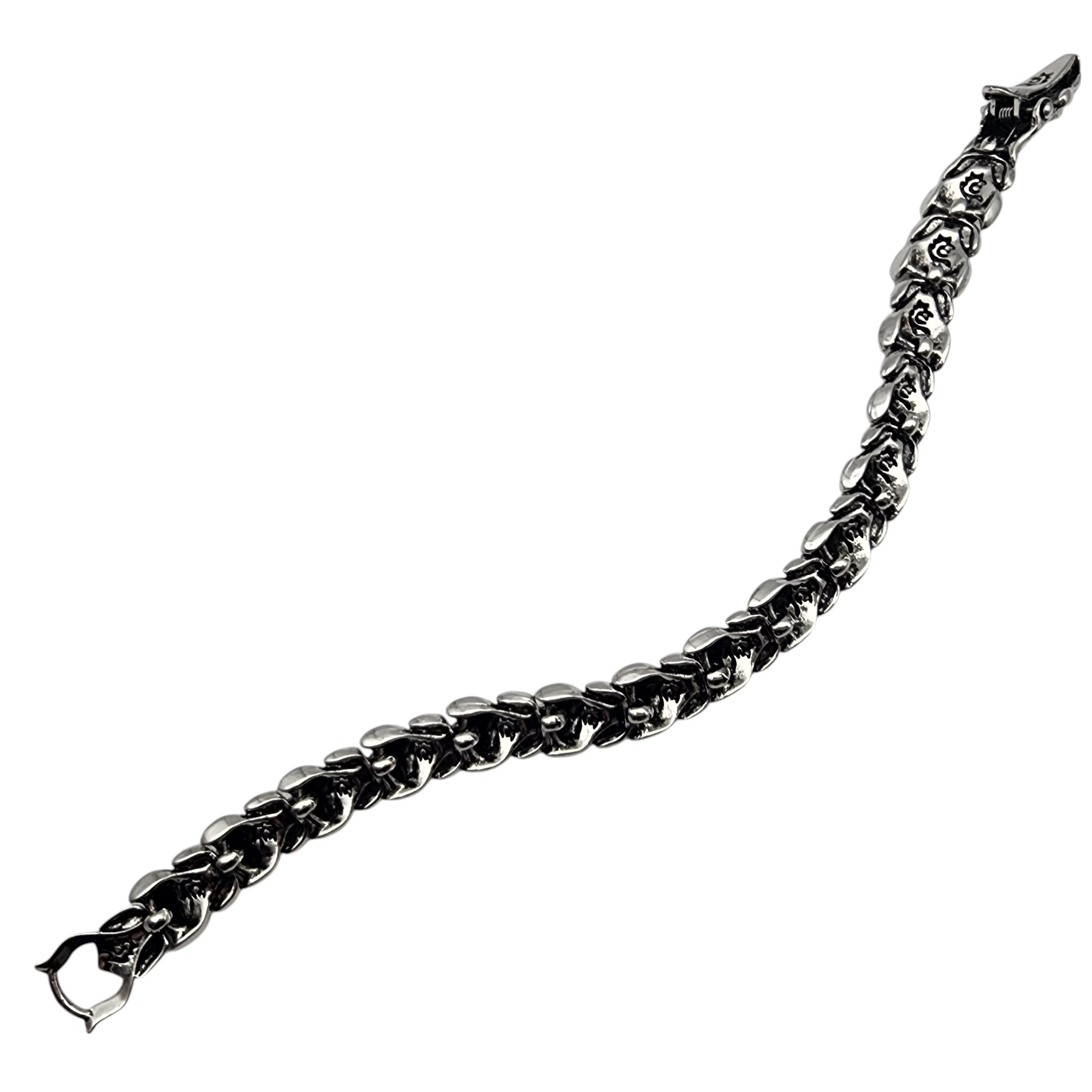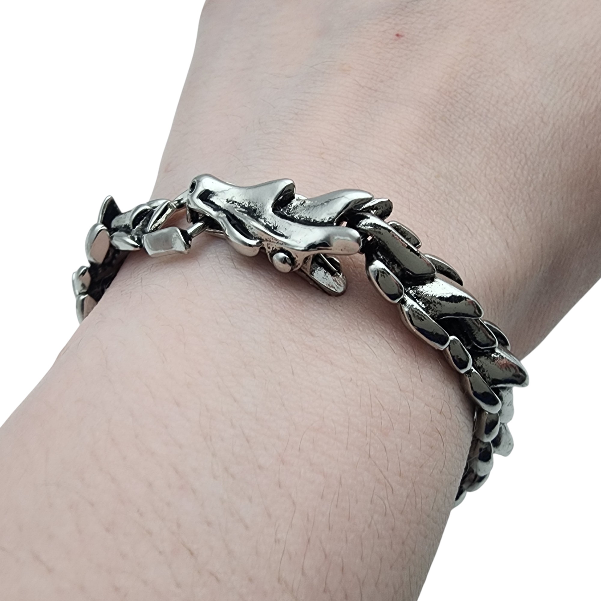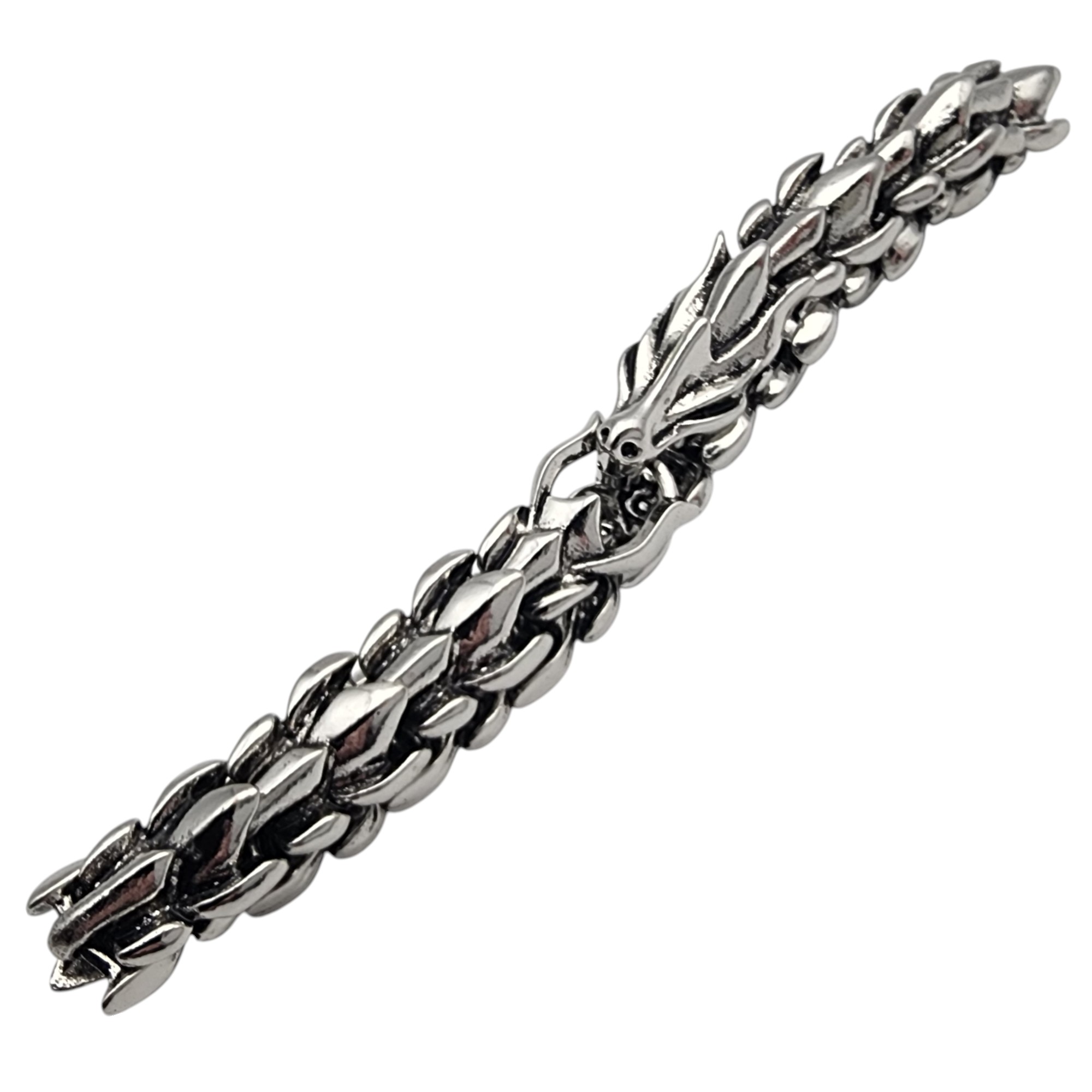 Signed Sterling Silver Dragon Head & Scale Bracelet, 36.5g