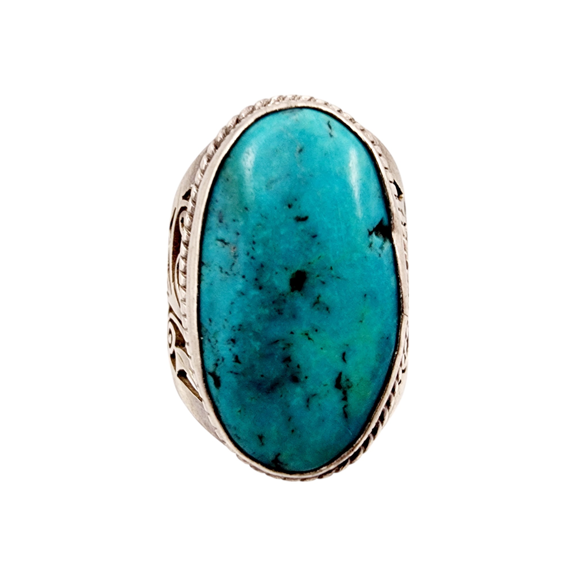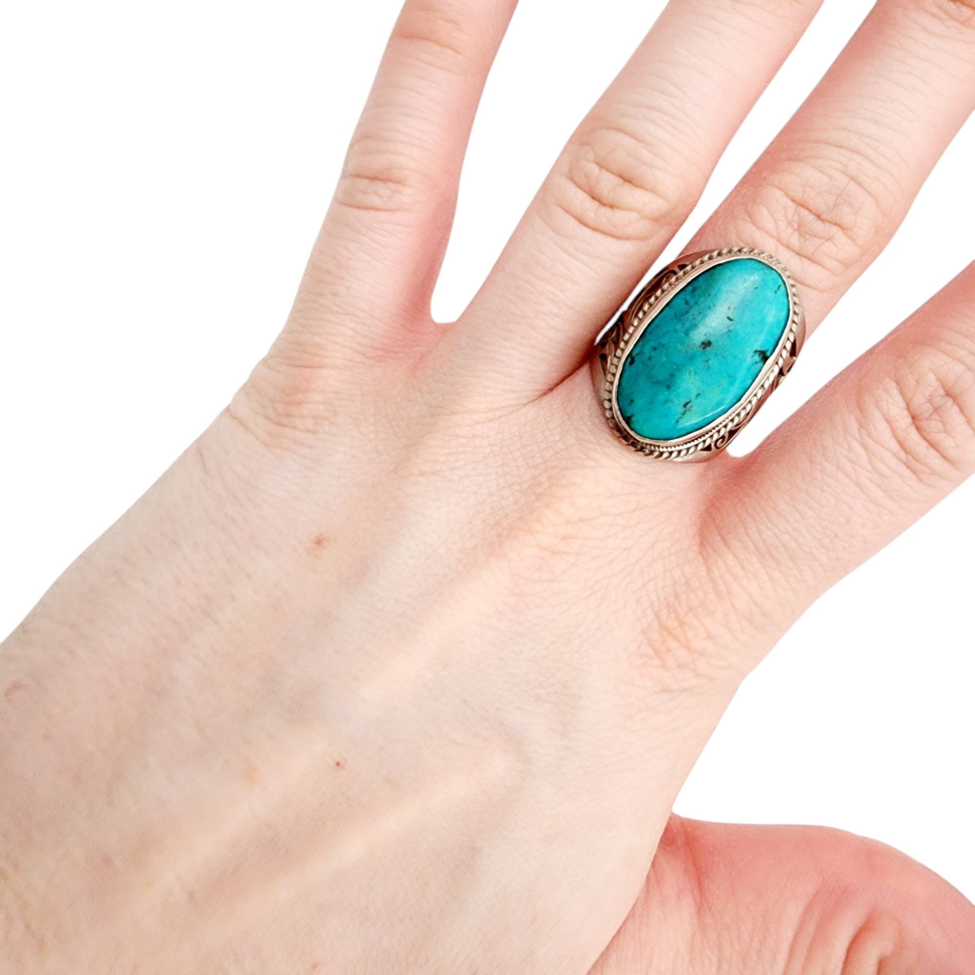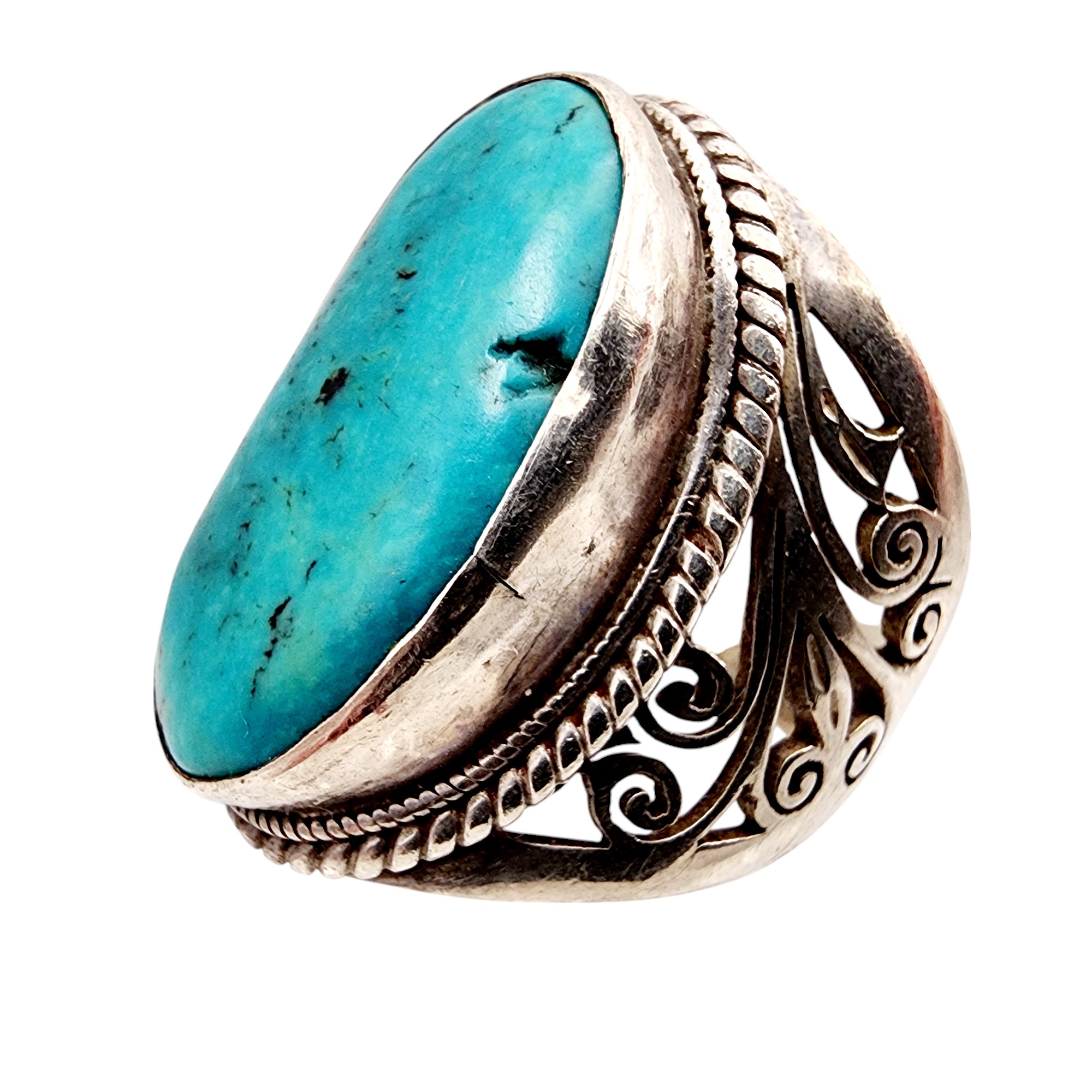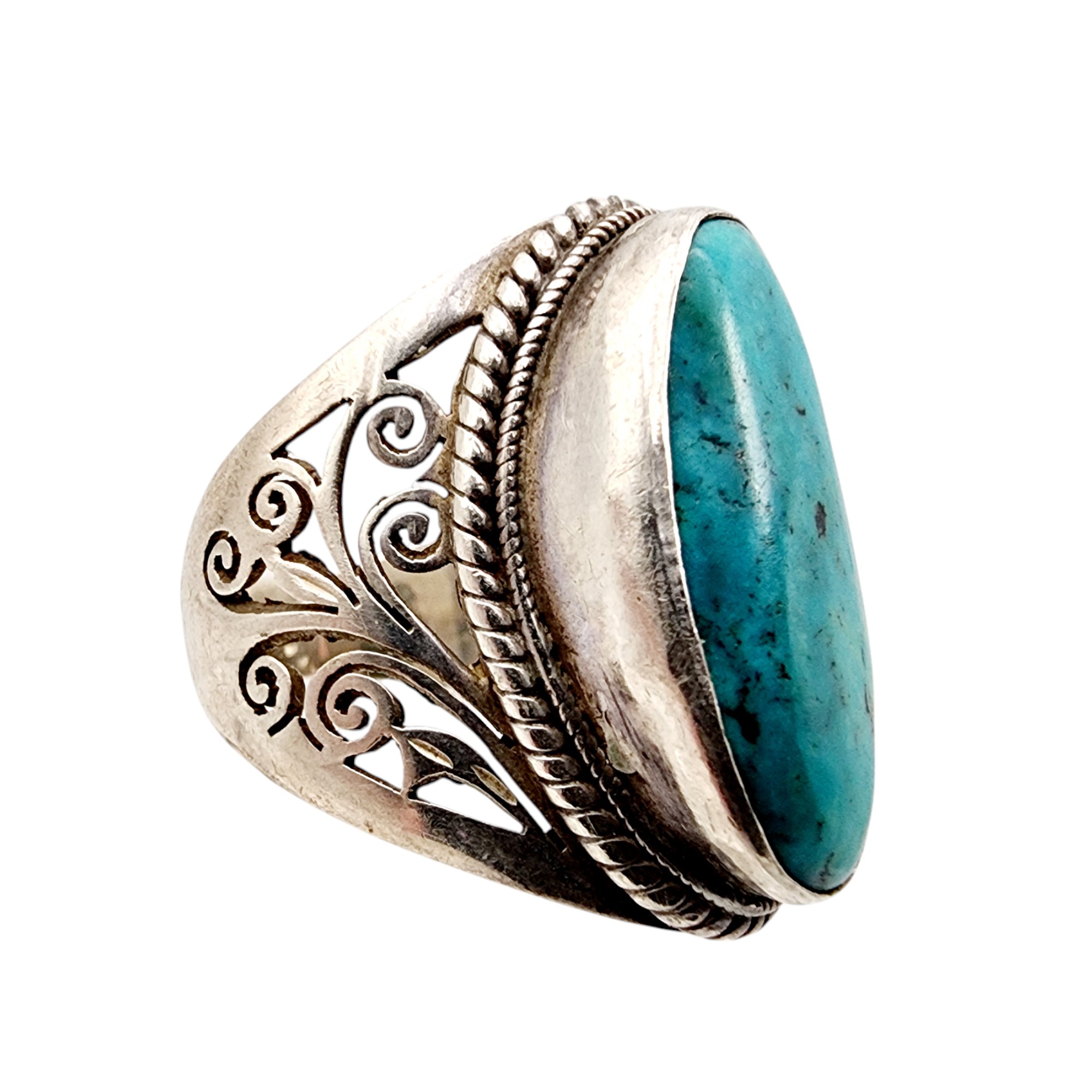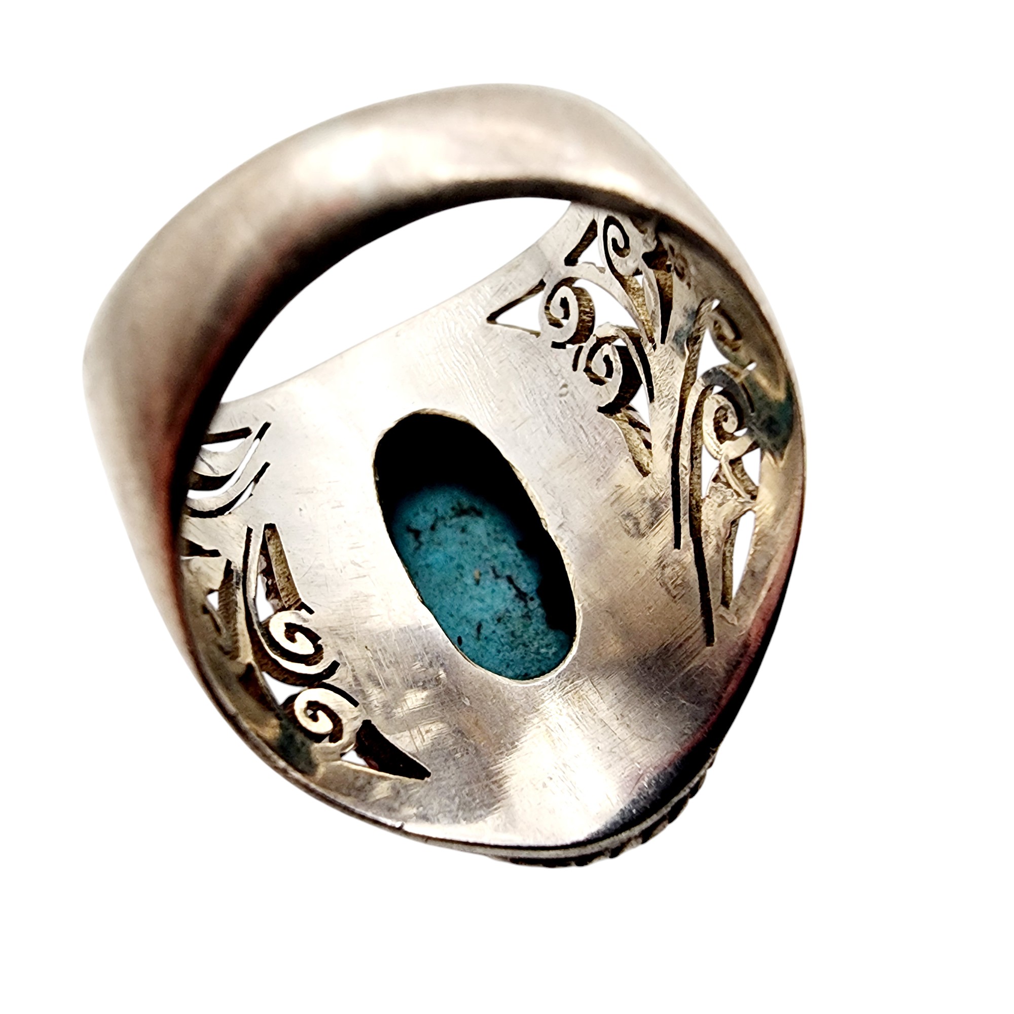 Vintage Sterling Large Turquoise Ring Sz 8 12.4g, imperfection in turquoise, see side picture