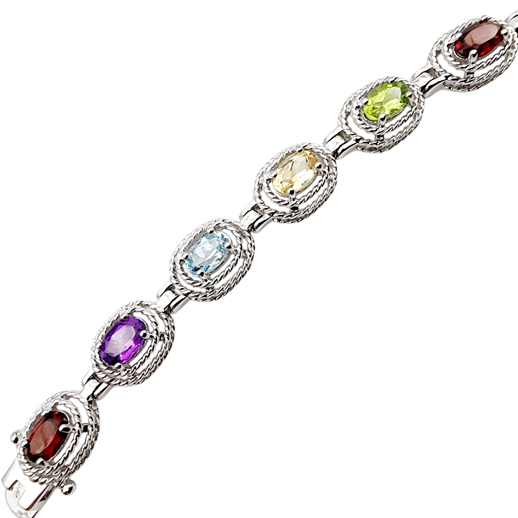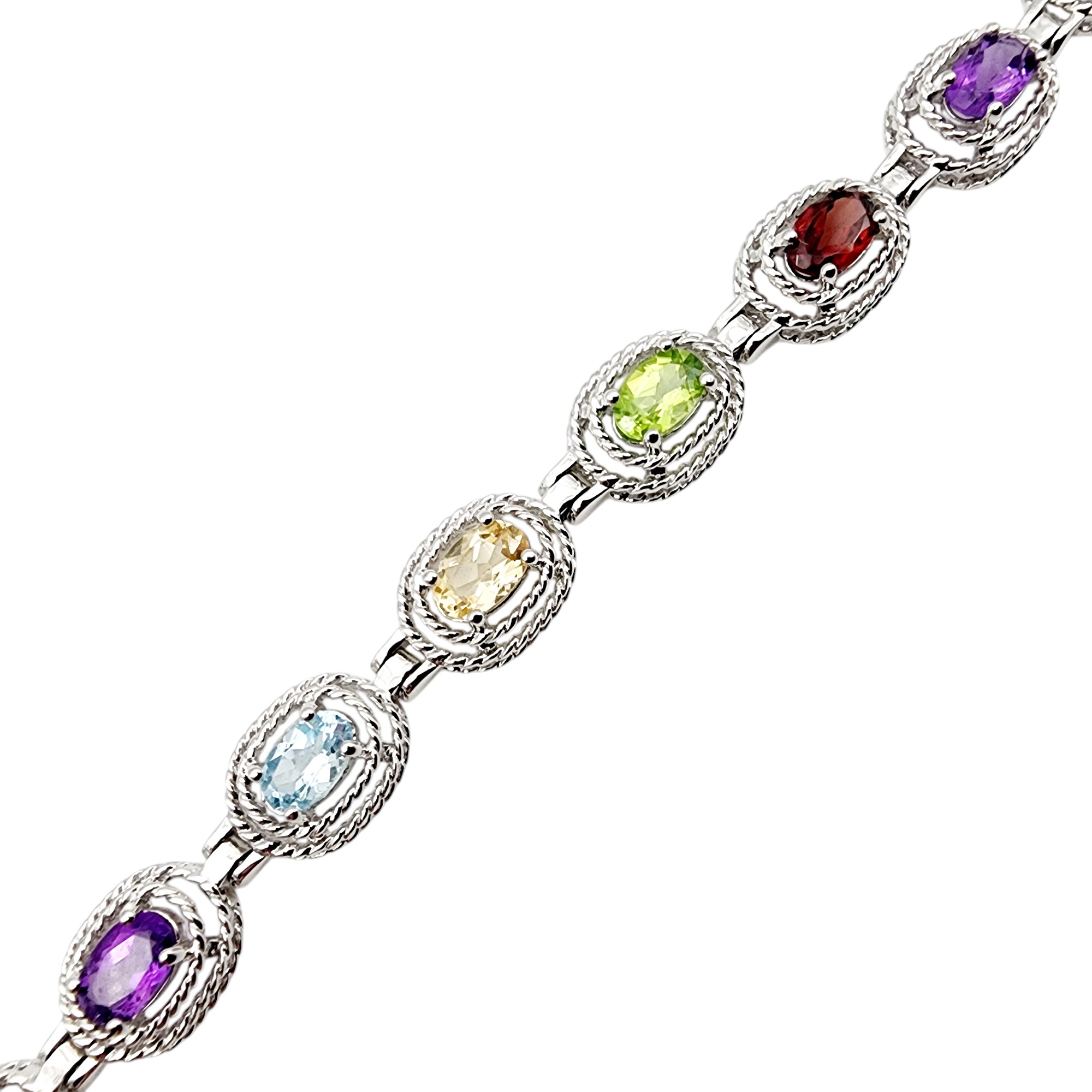 Ross Simons Sterling Multistone Tennis Bracelet 12.2g – topaz, citrine, peridot, garnet, amethyst