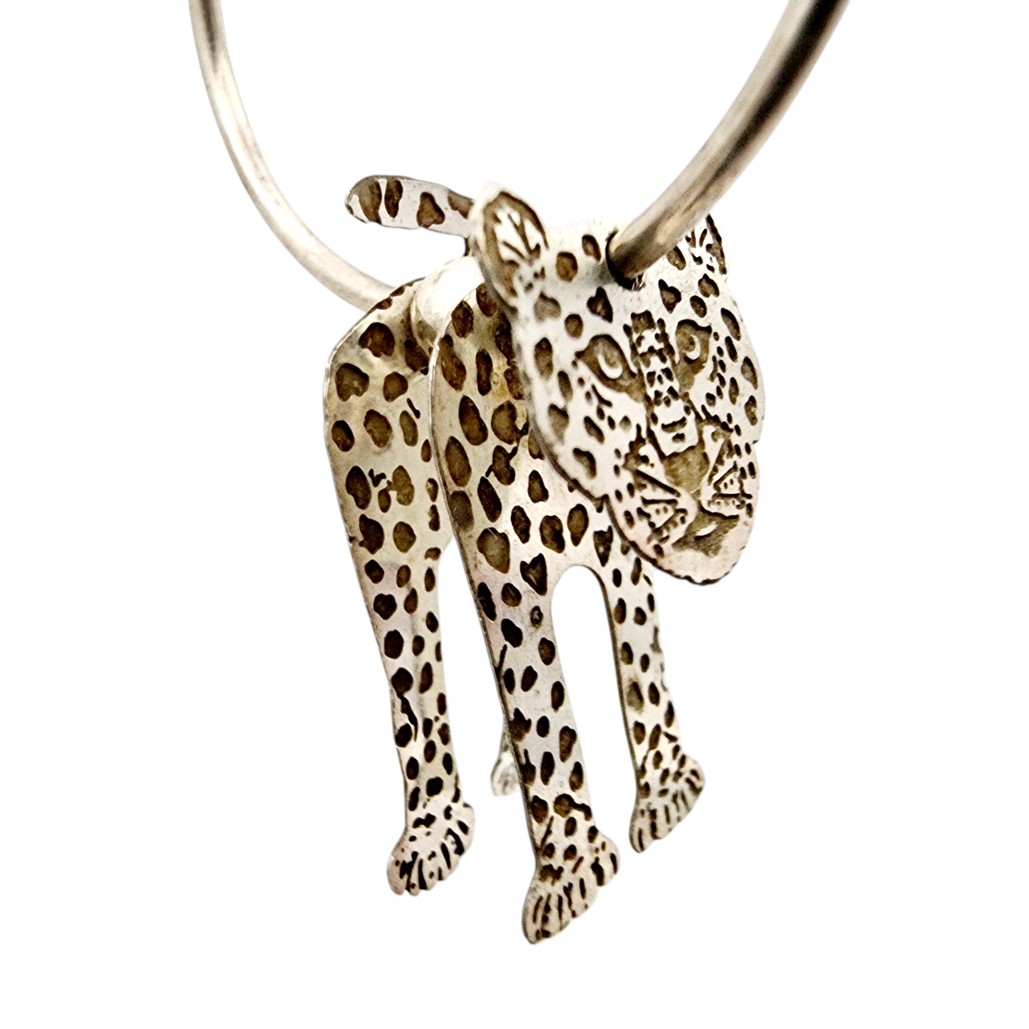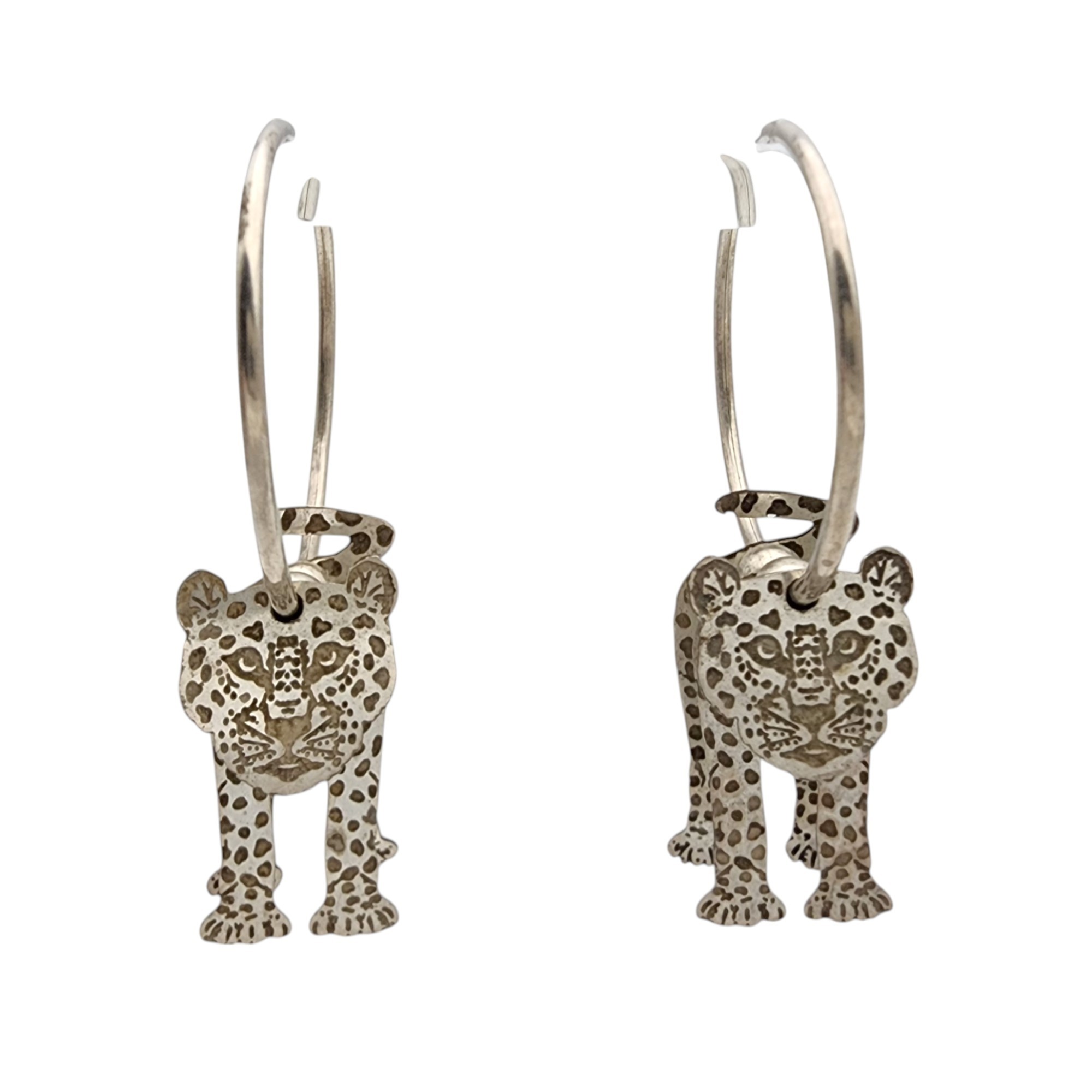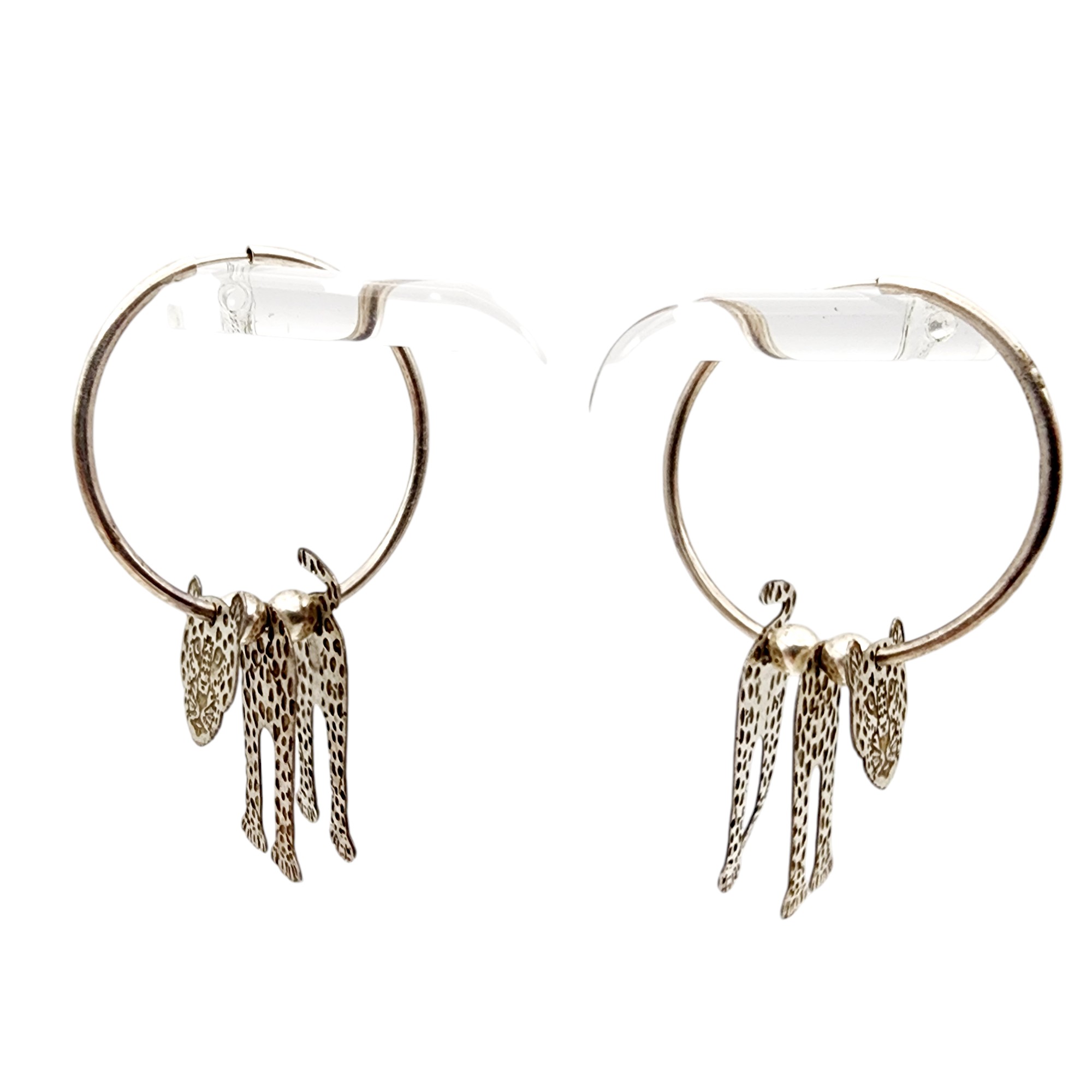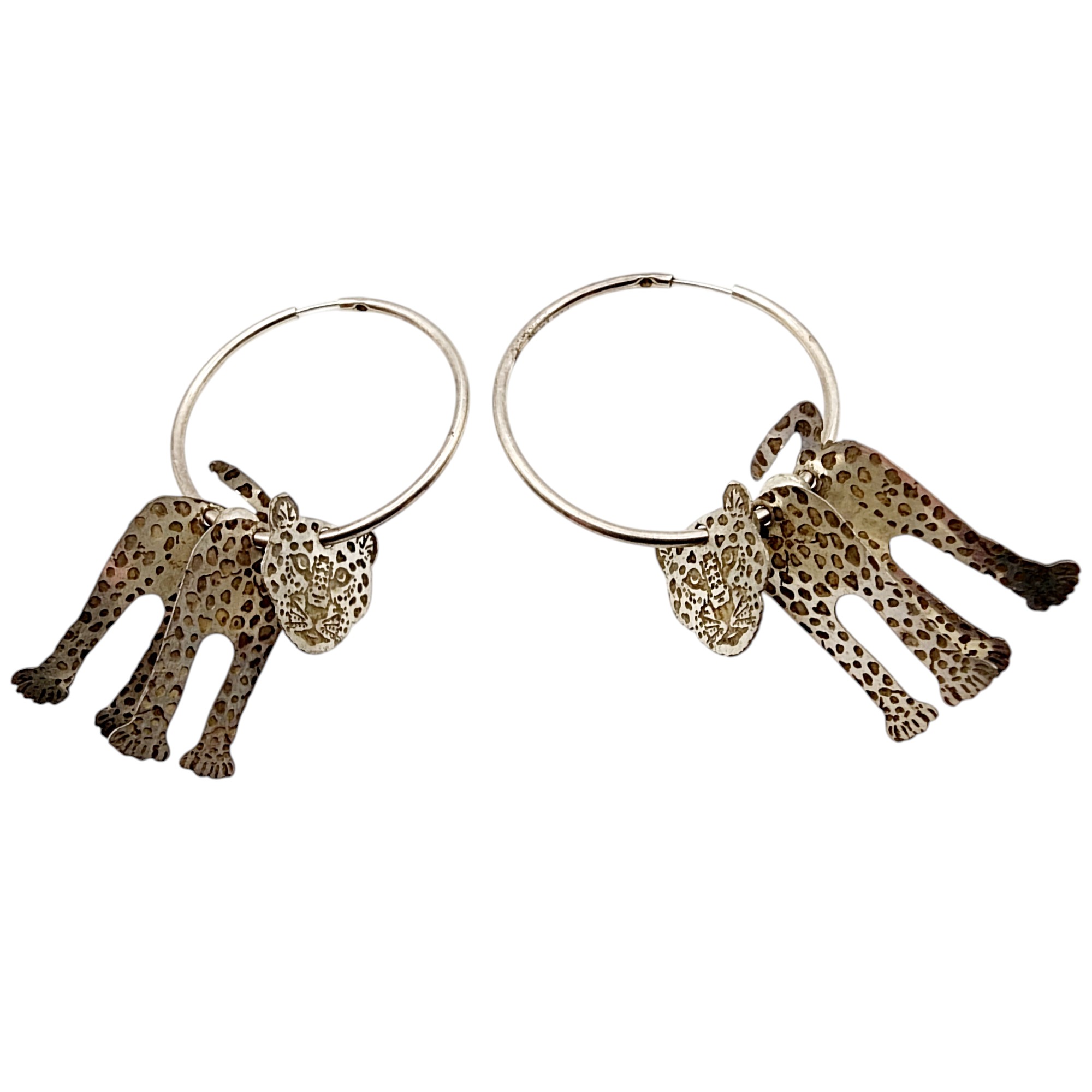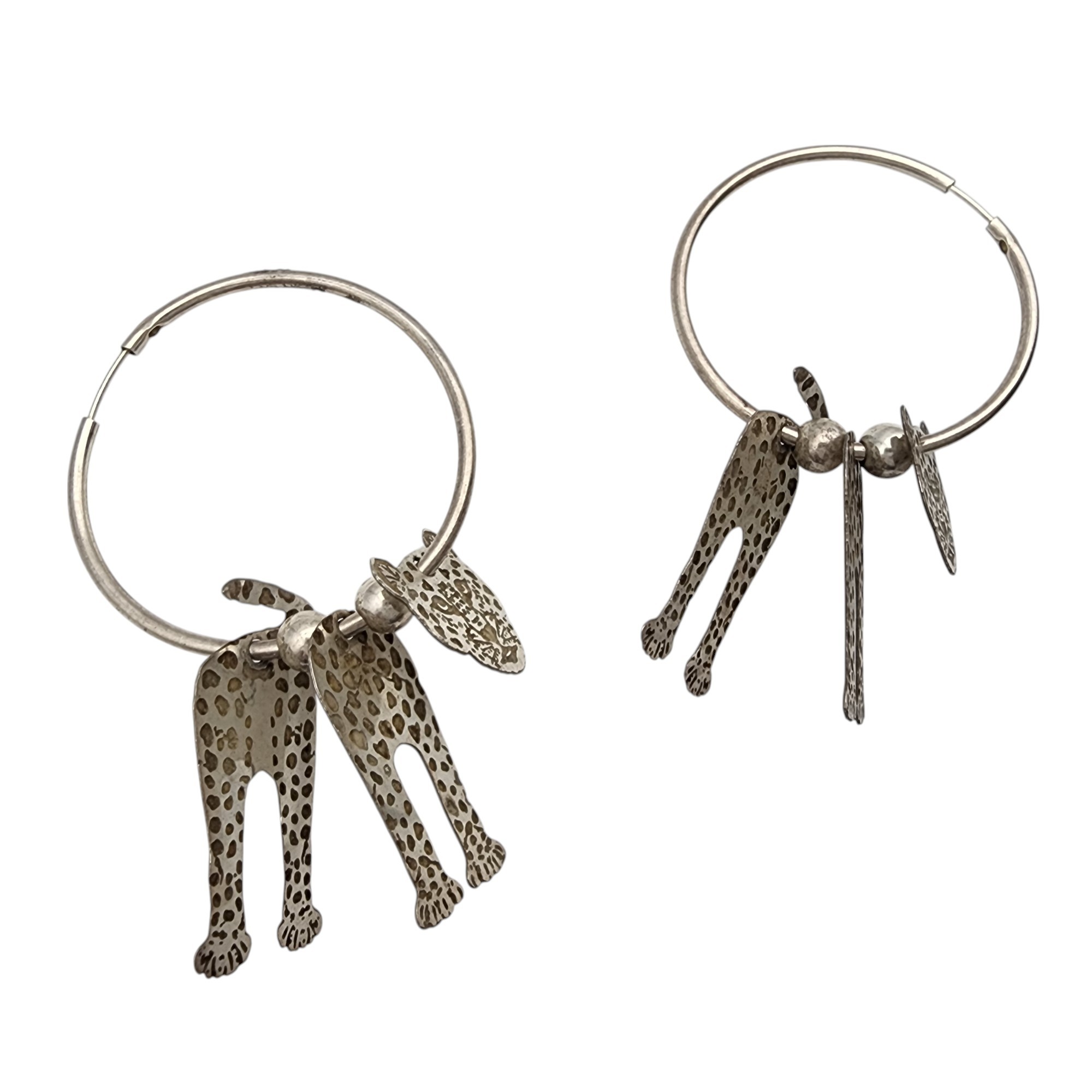 Unique Sterling Leopard Bobble Hoop Earrings, 3.7g