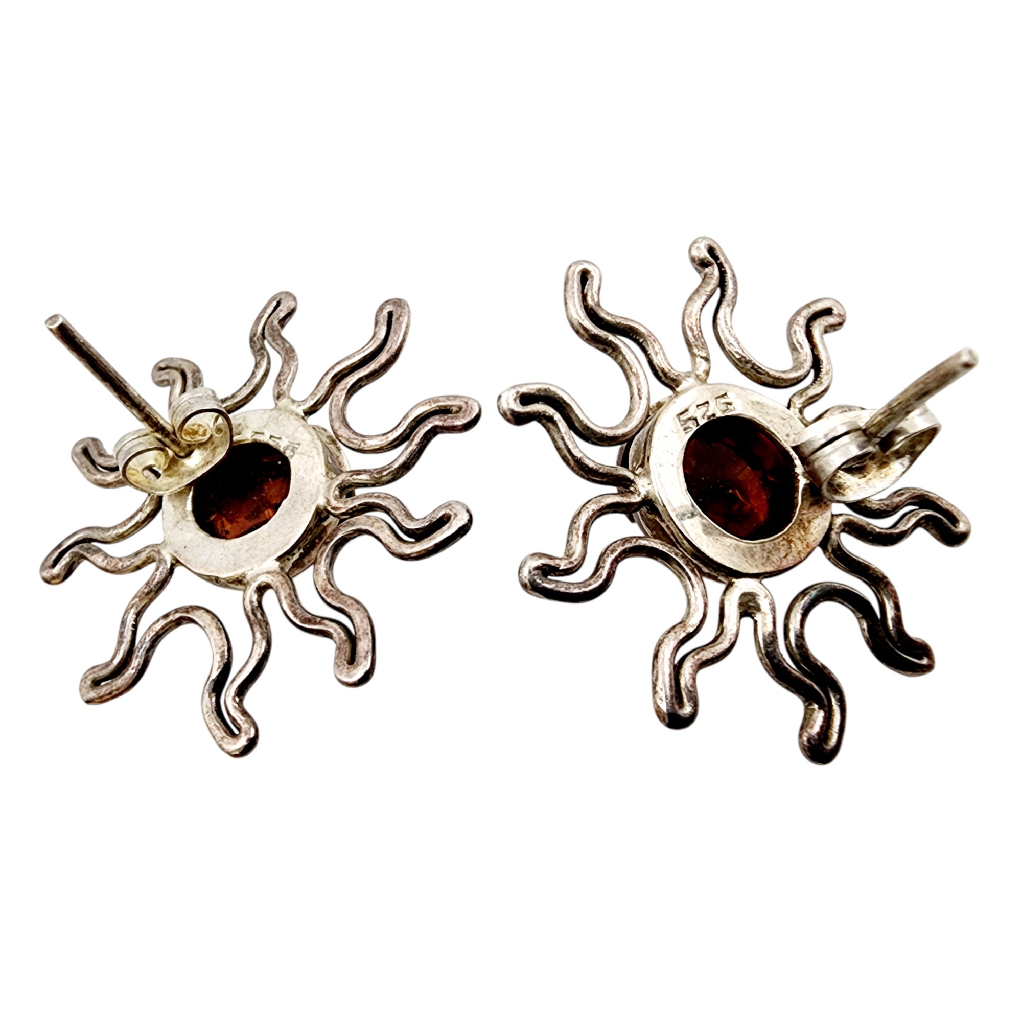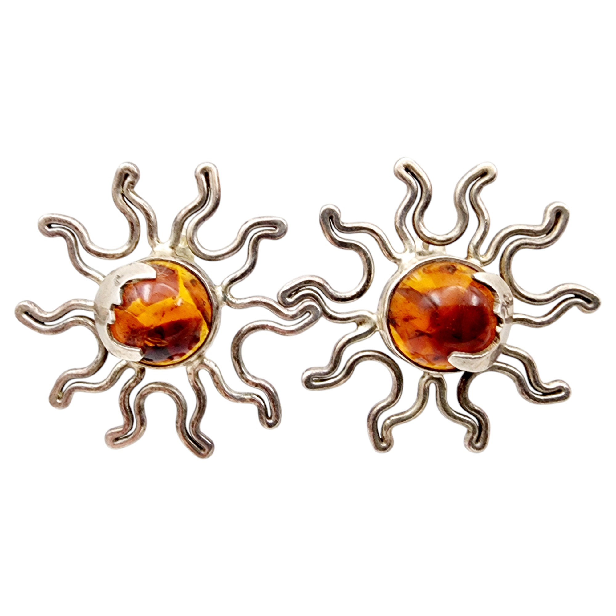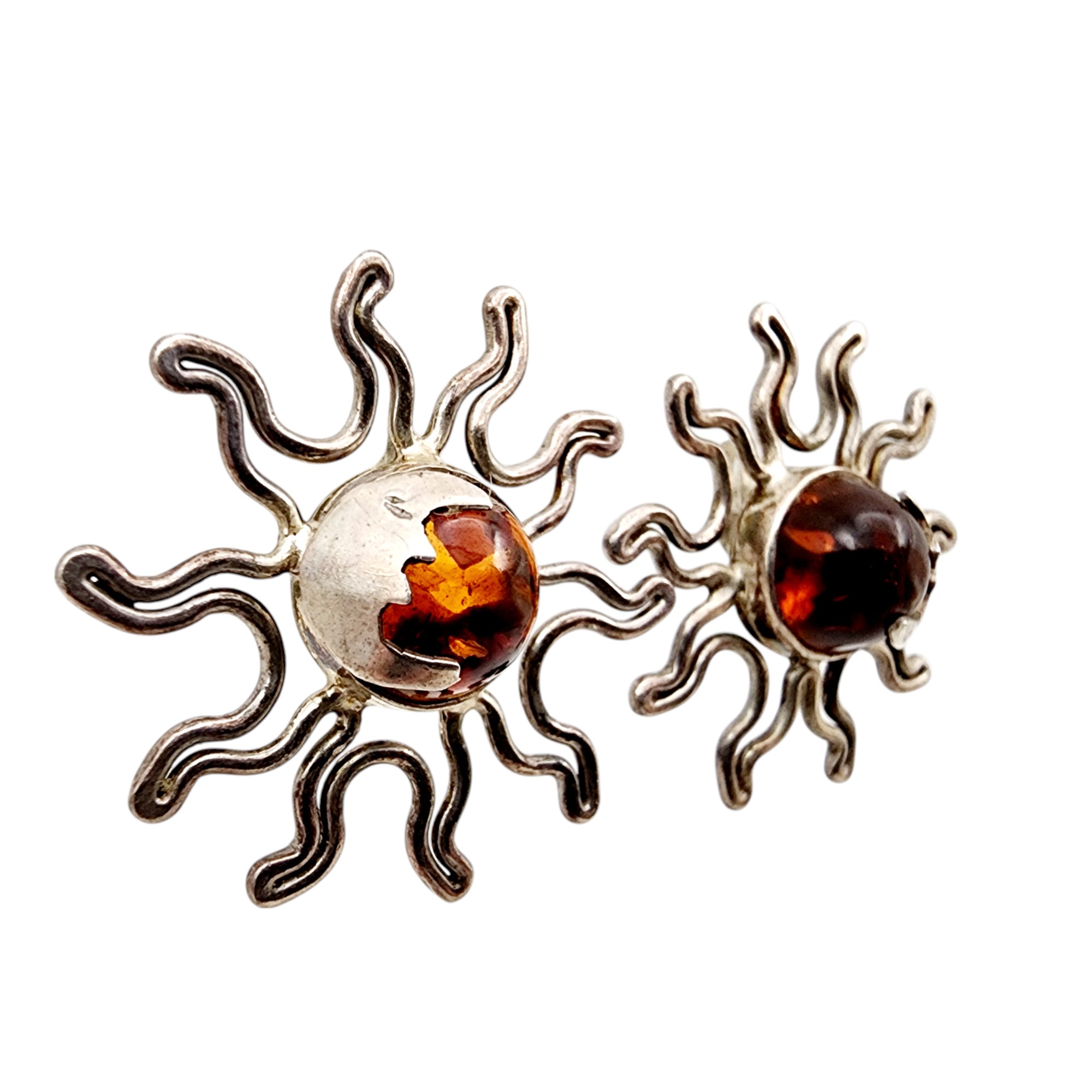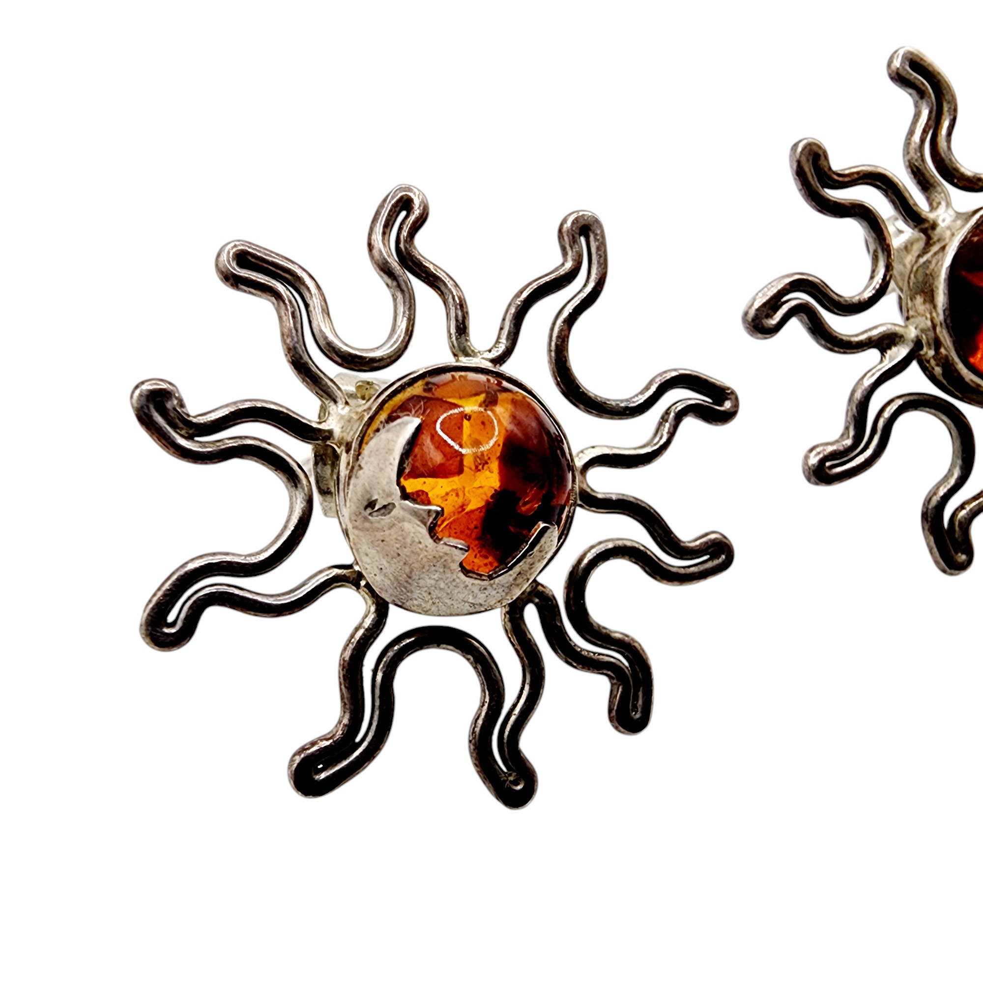 Vintage Sterling Amber Sun Moon Earrings 6.8g