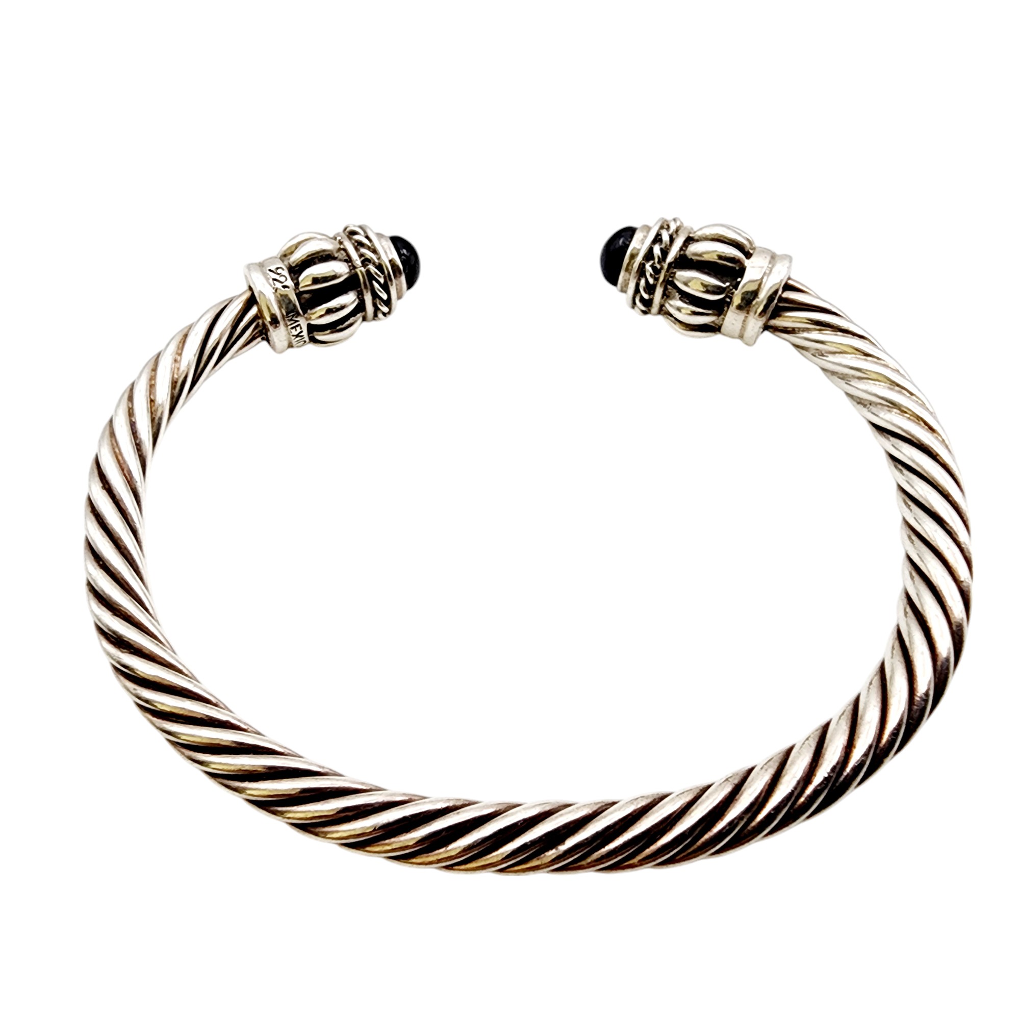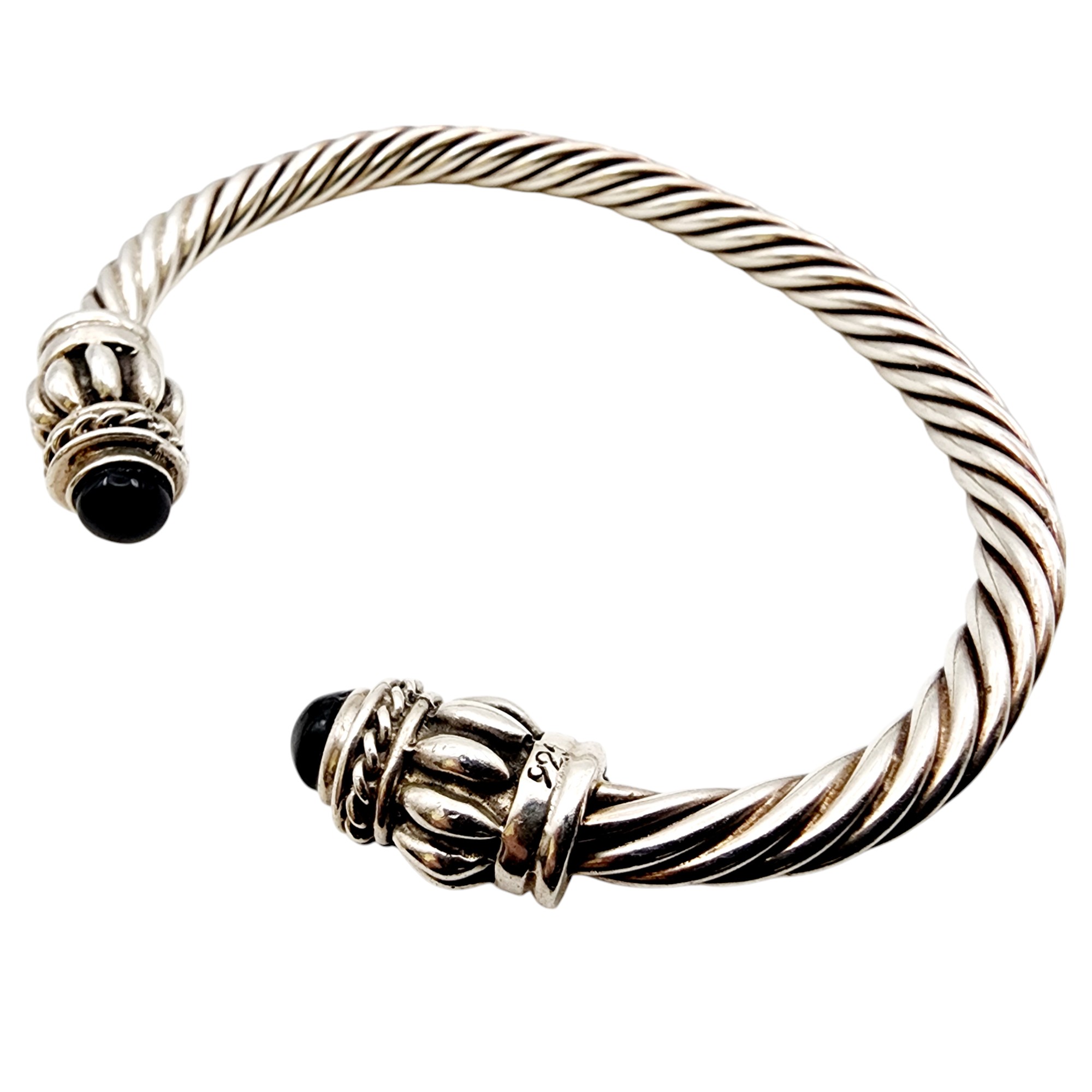 Vintage Mexico Sterling Onyx Cuff Bracelet 28.7g