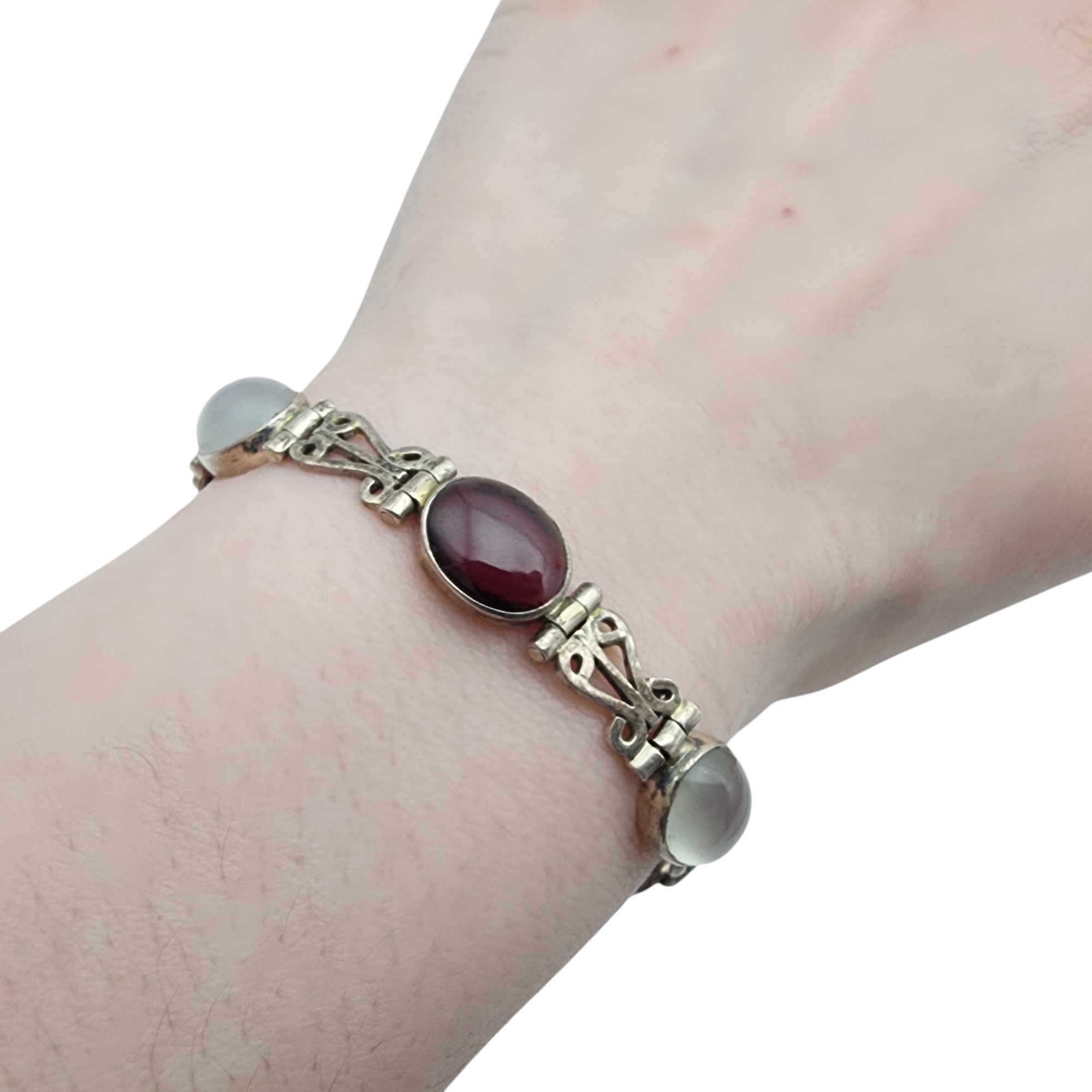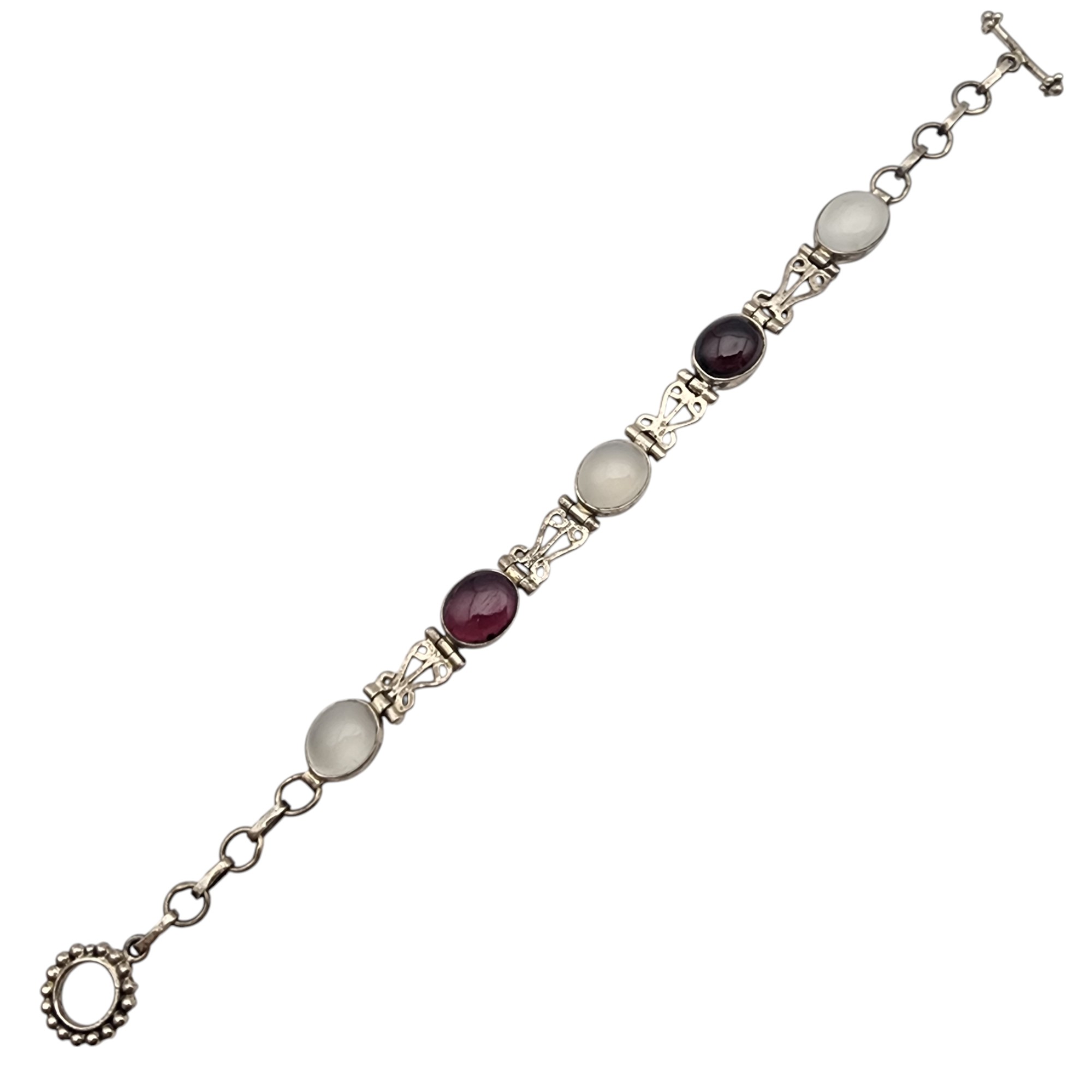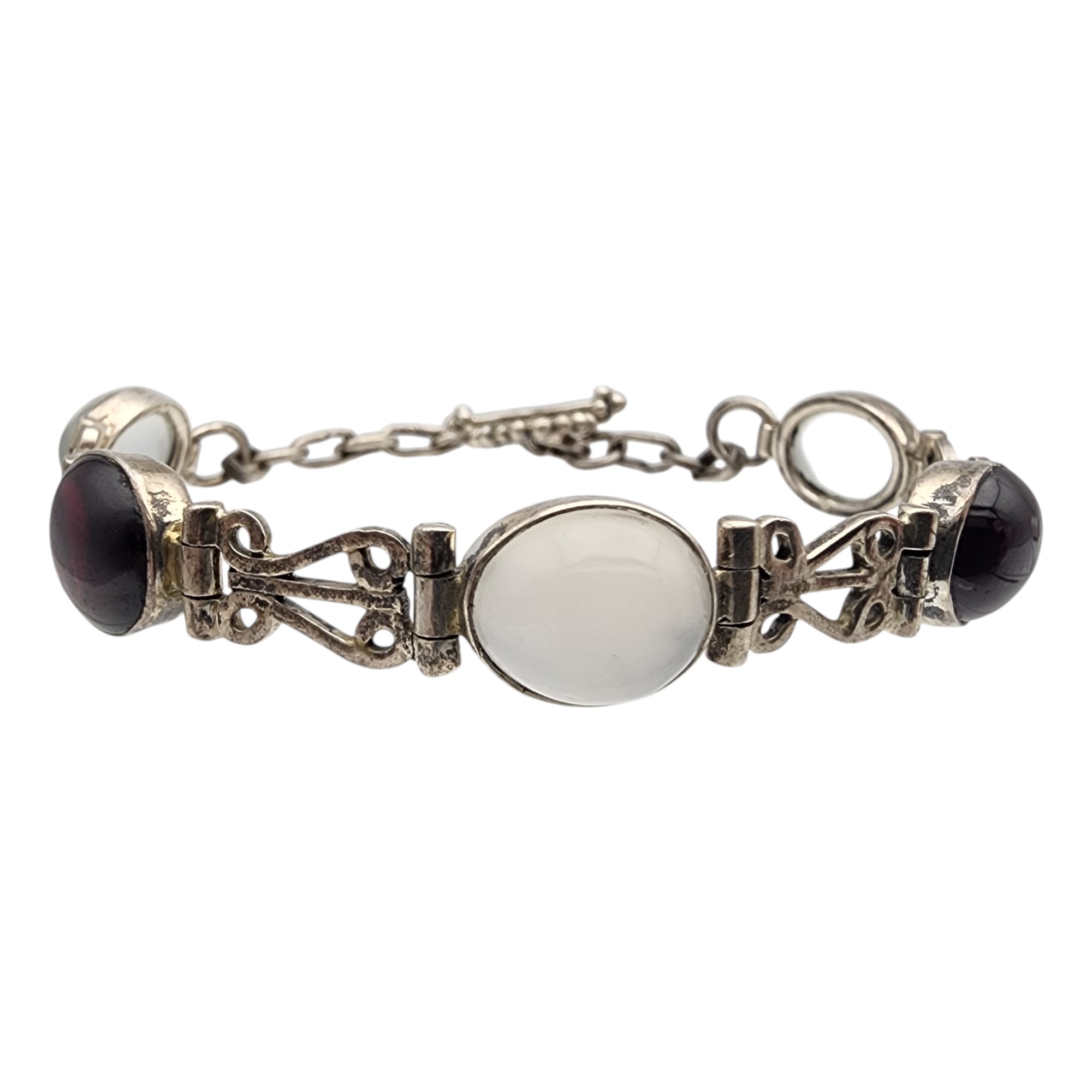Sterling Silver Garnet and Cat’s Eye Bracelet, 13.3g