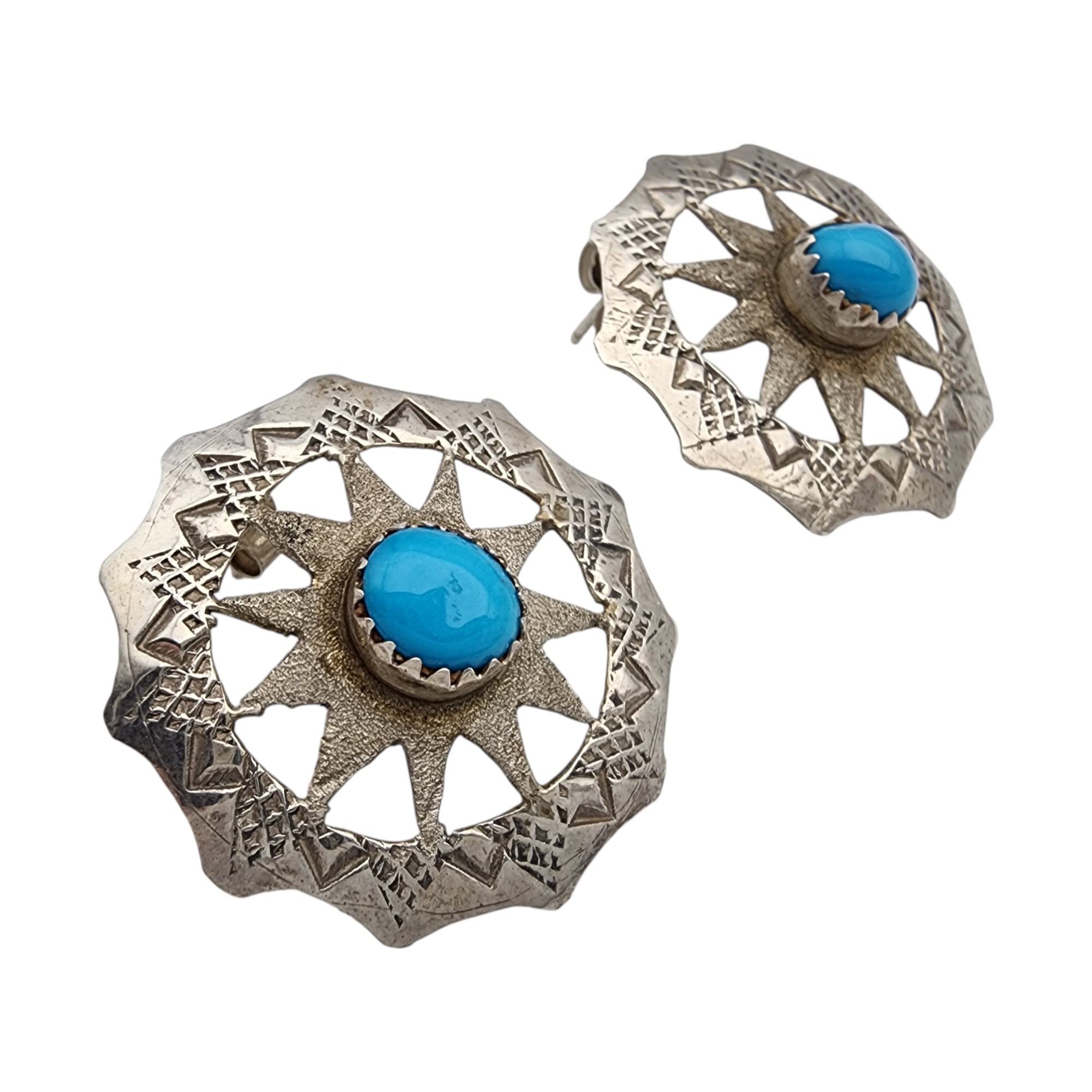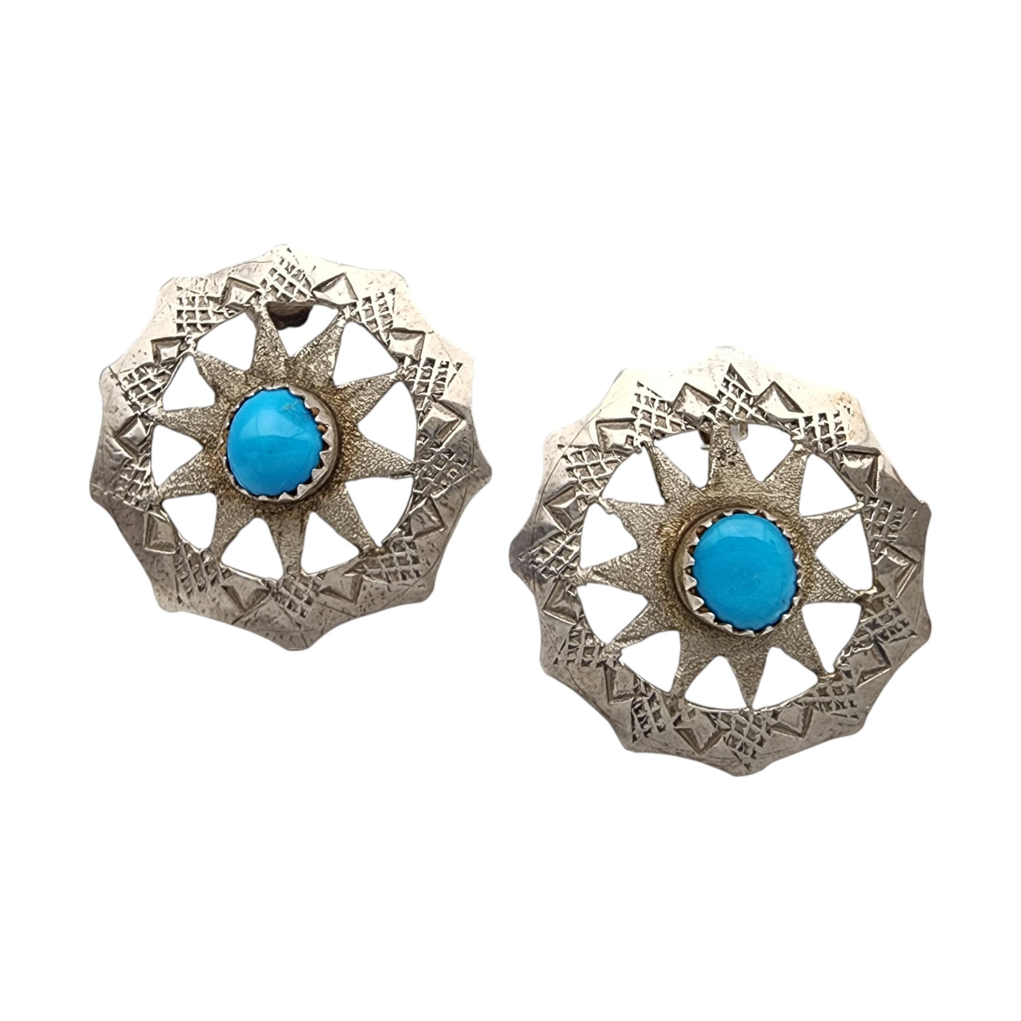 Sterling Southwest Turquoise Wheel Earrings 4.9g