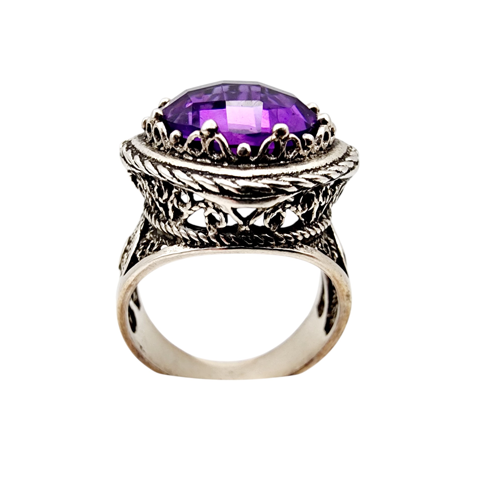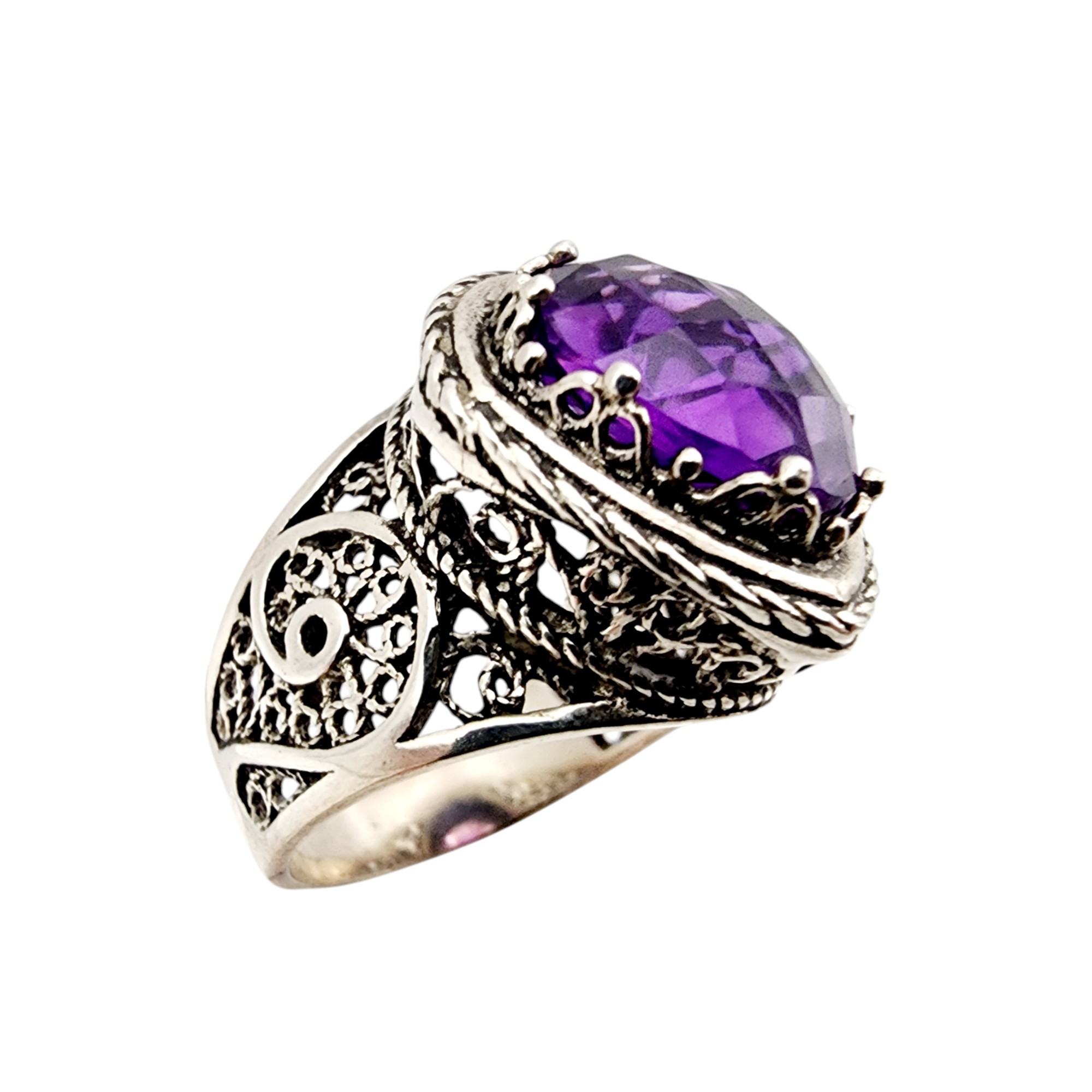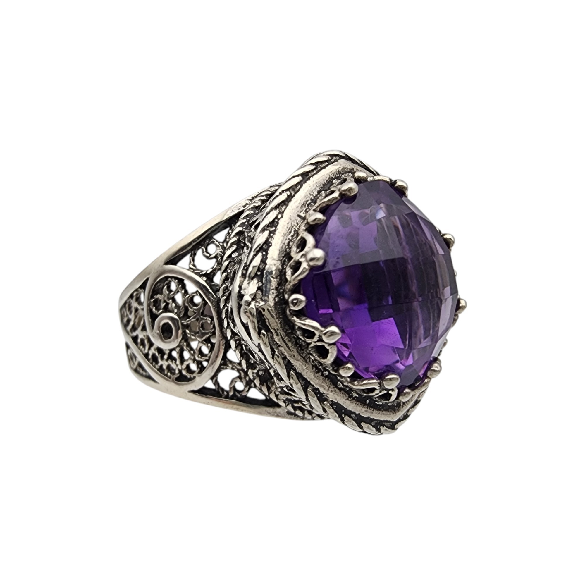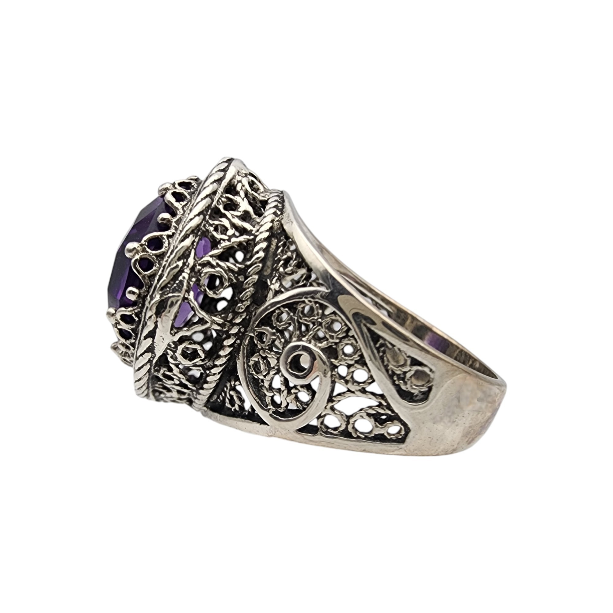 DGS Turkey Sterling Filigree Amethyst Ring Sz 8 8.4g