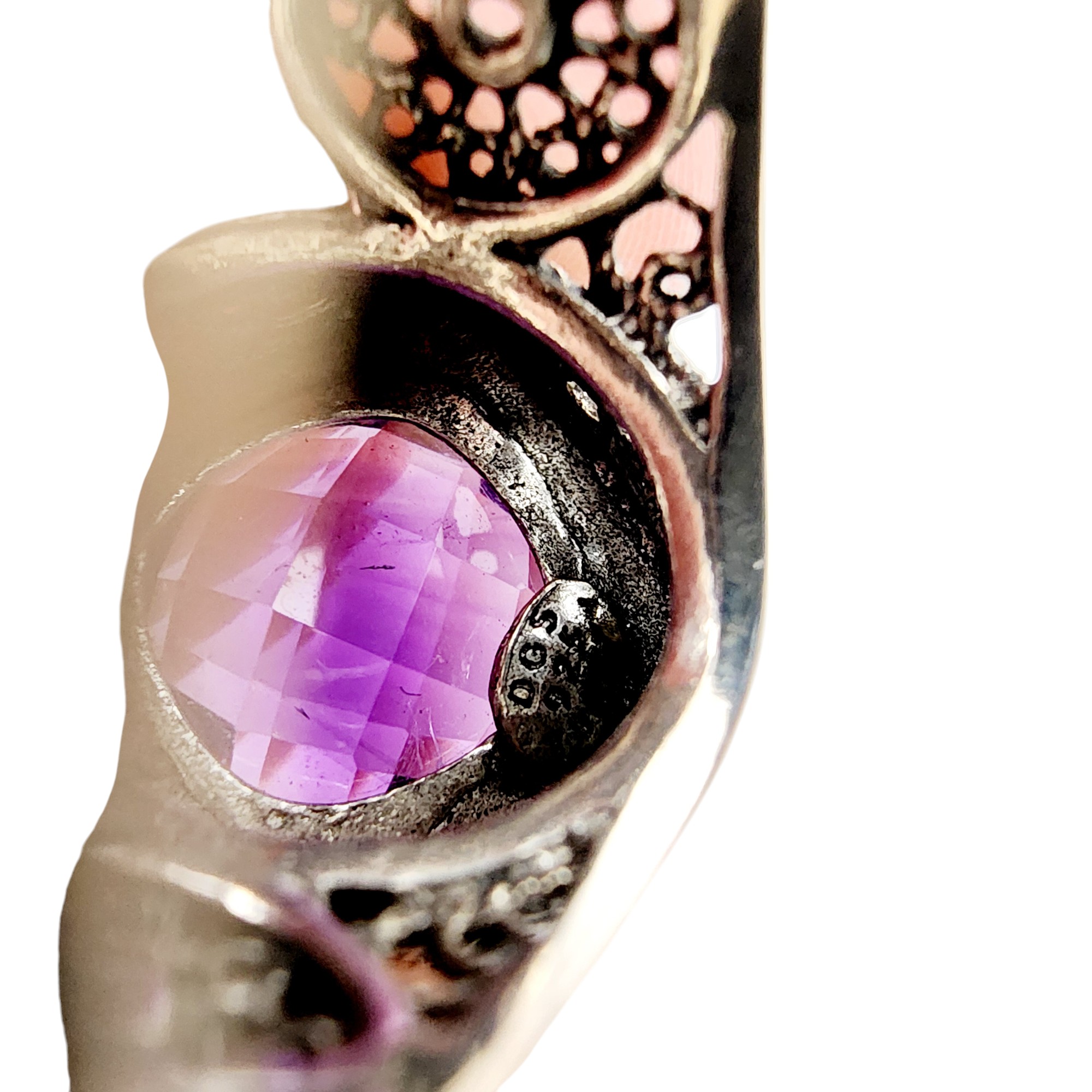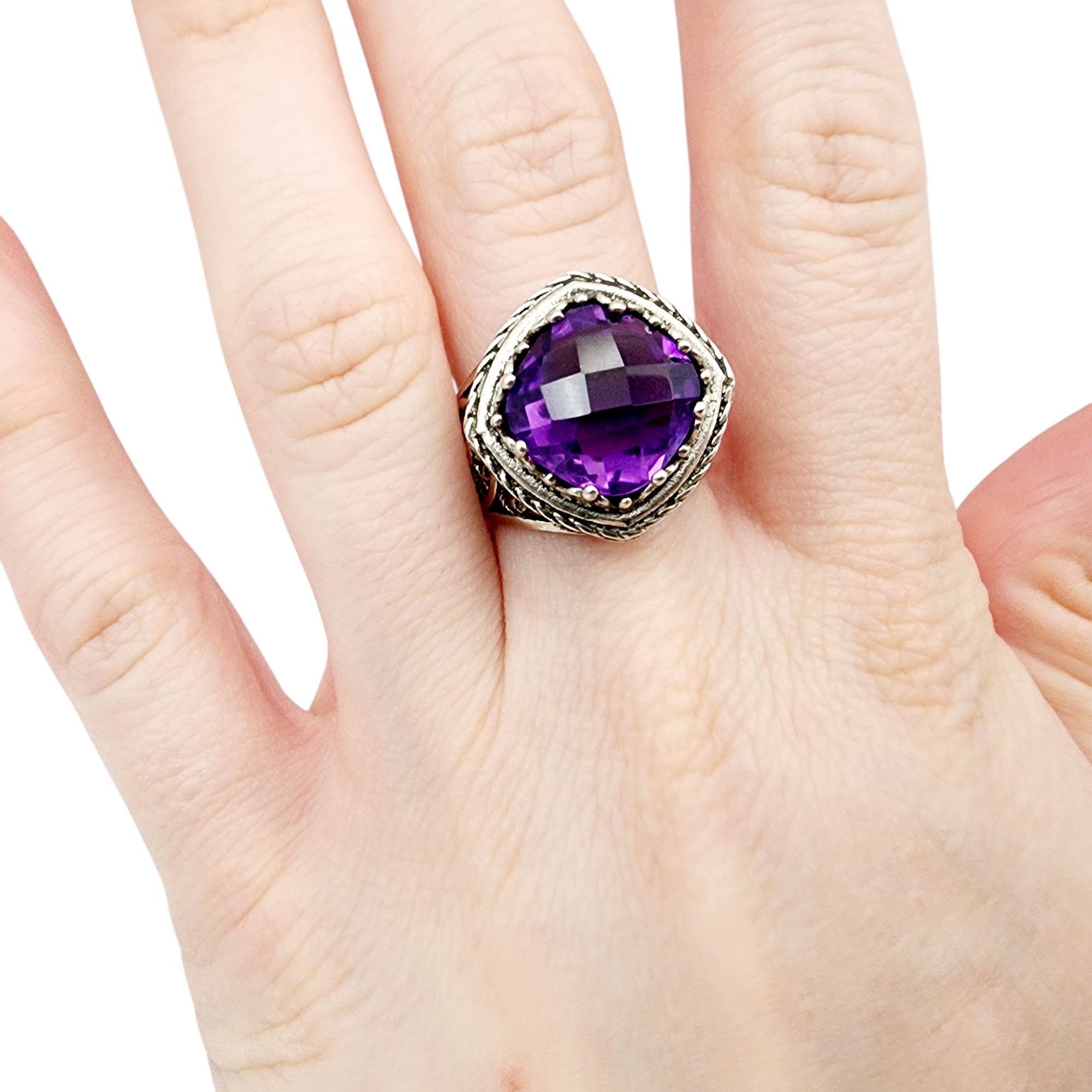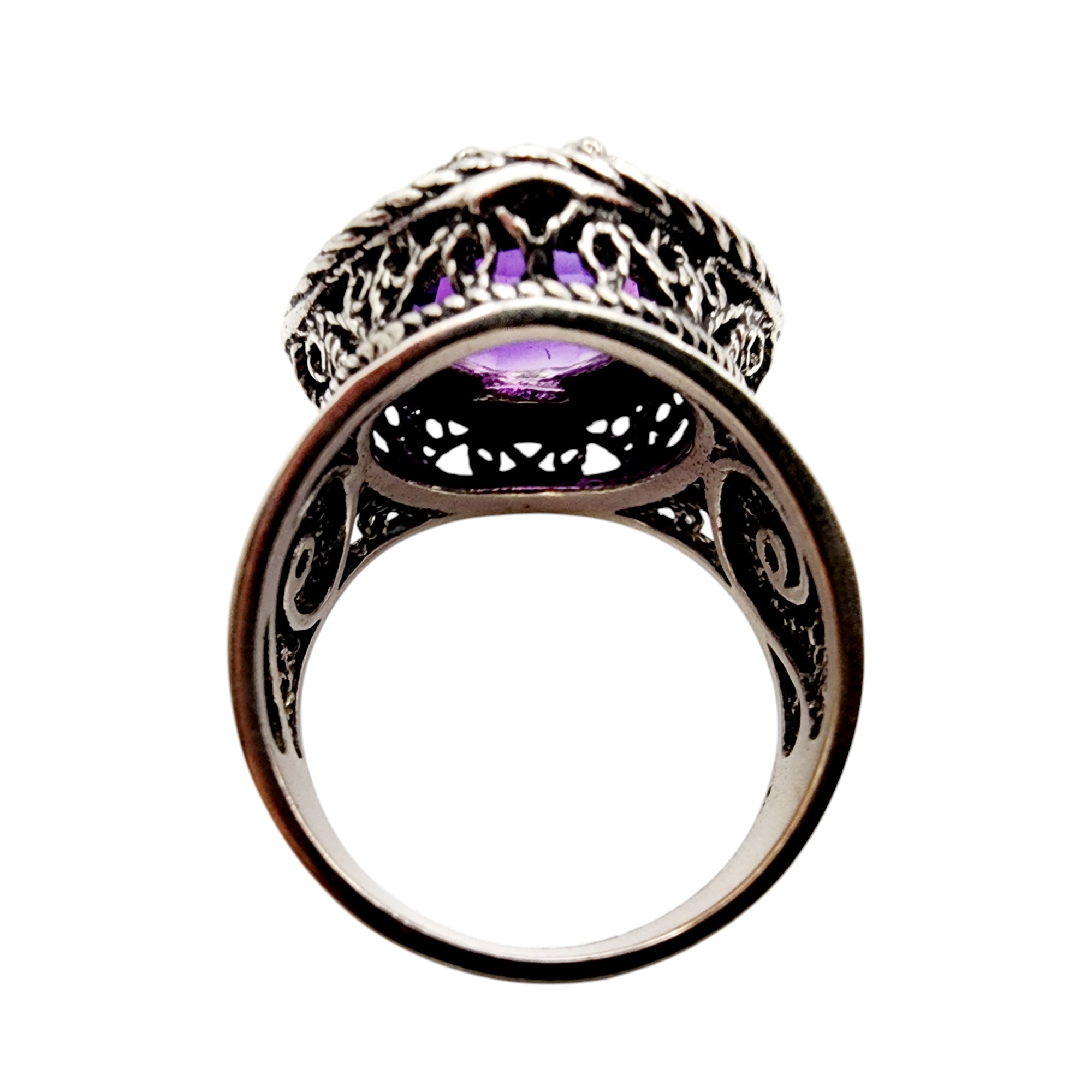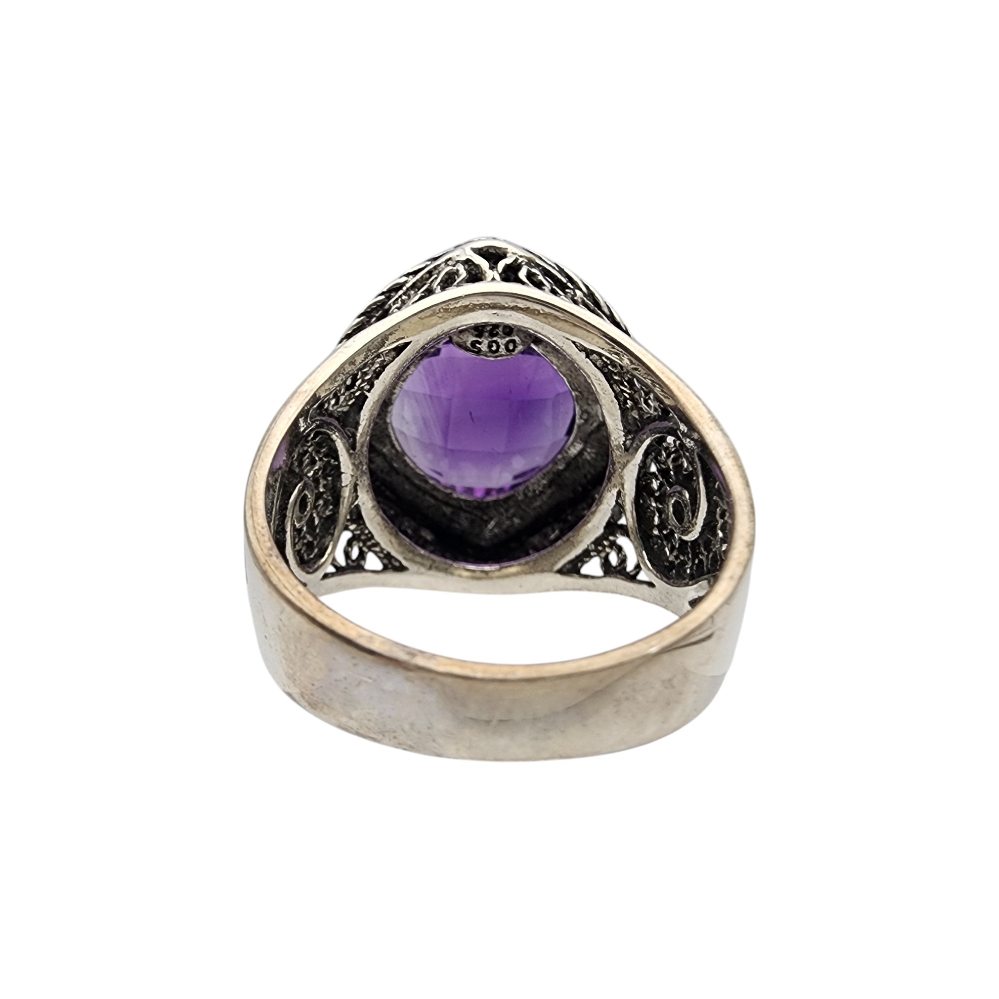 DGS Turkey Sterling Filigree Amethyst Ring Sz 8 8.4g
