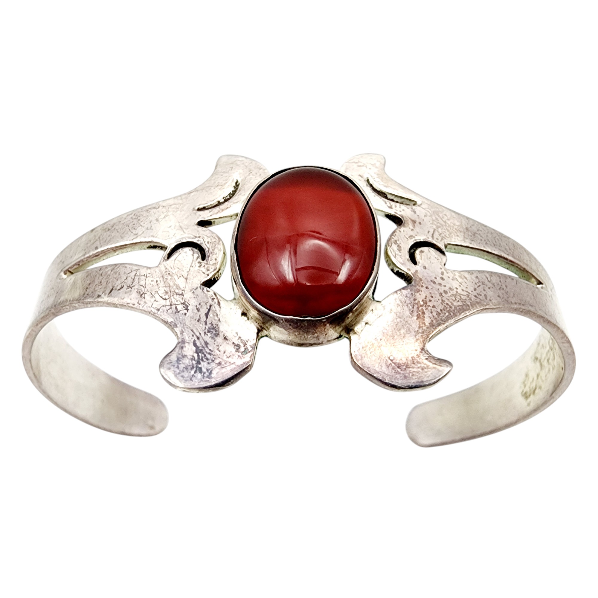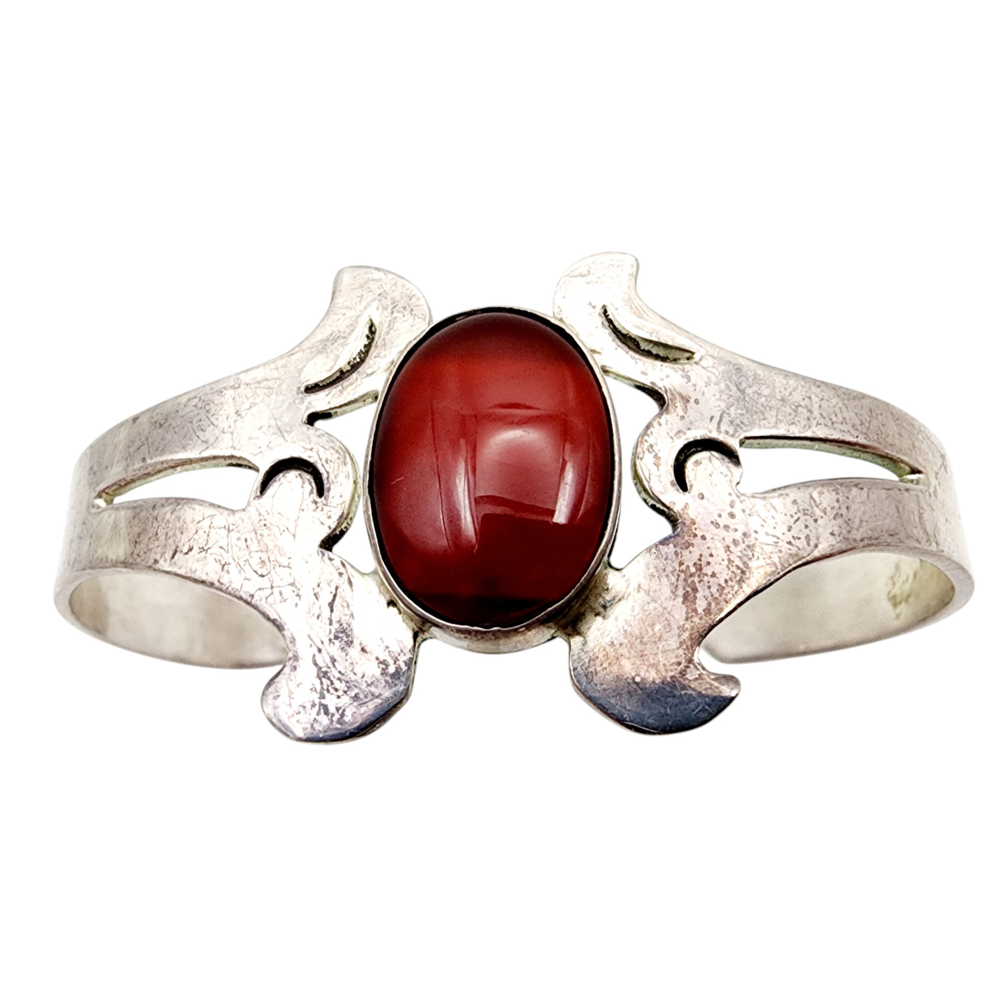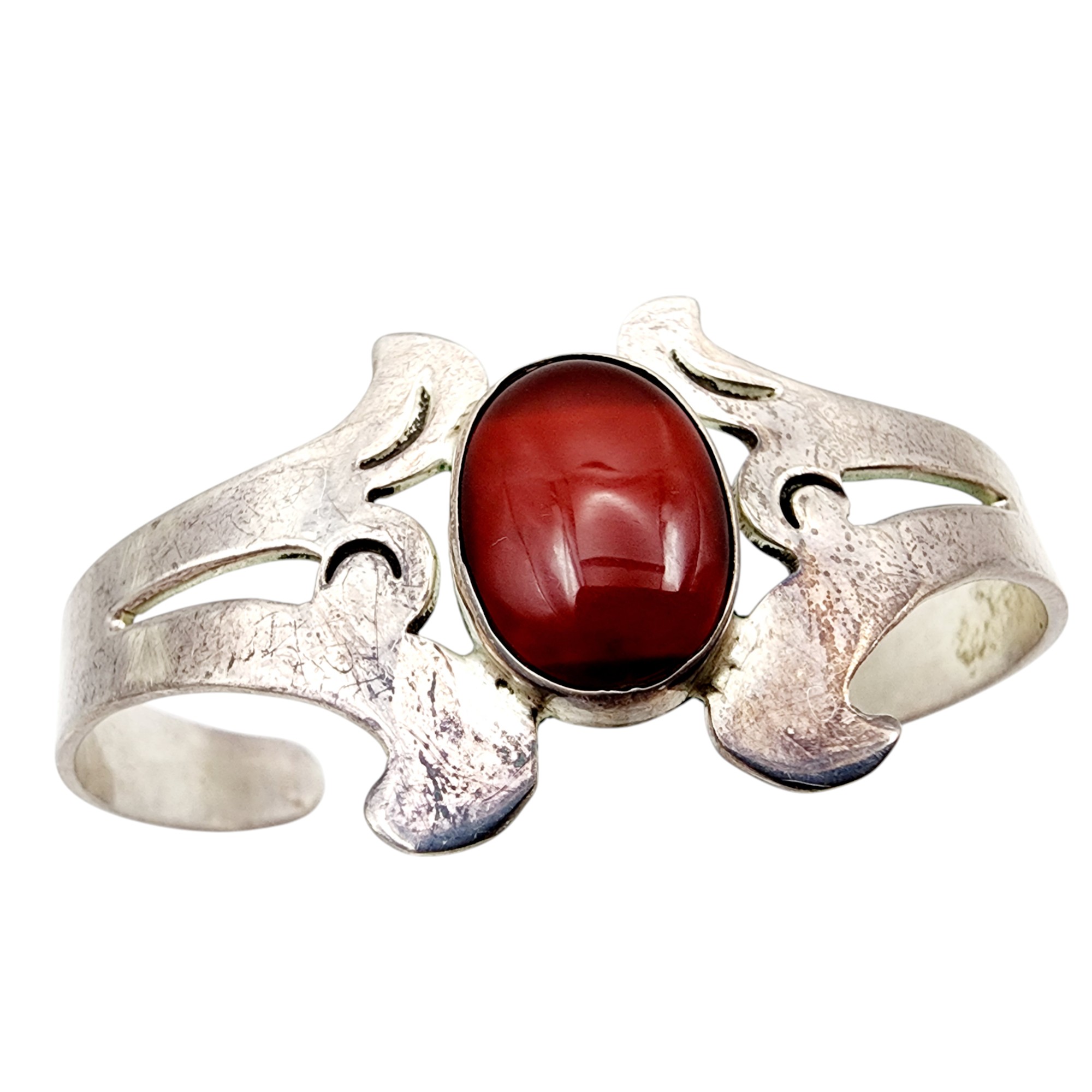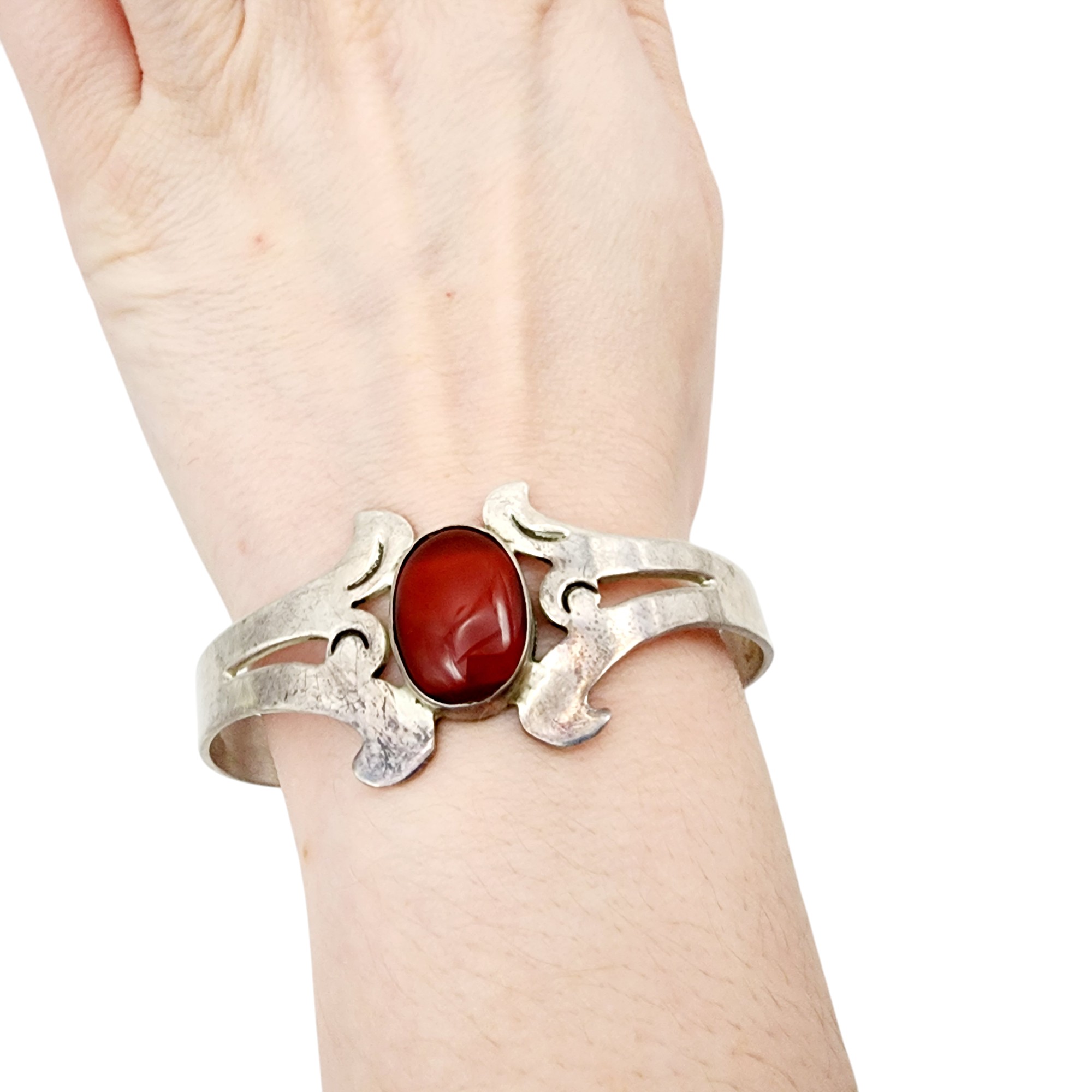 Vintage Mexico Sterling Carnelian Cuff Bracelet