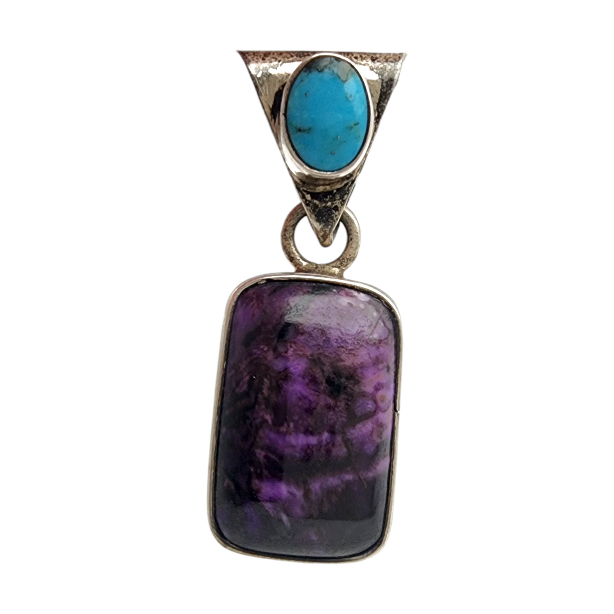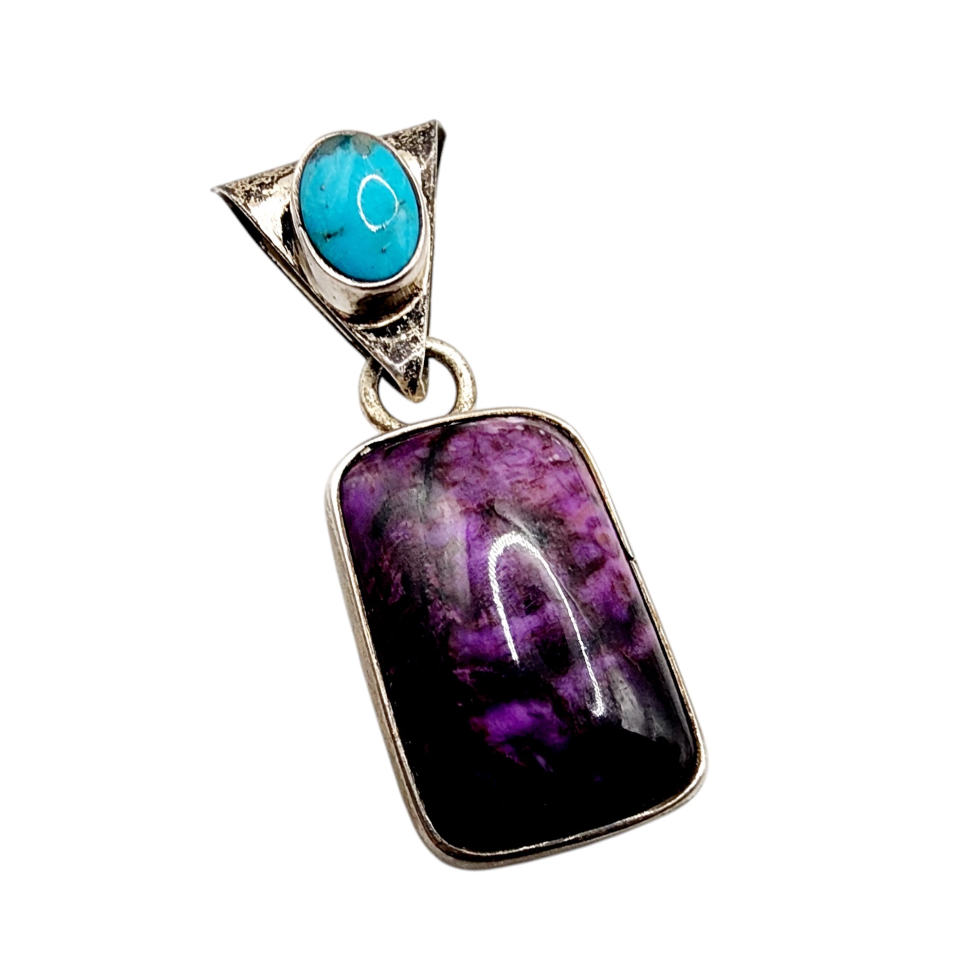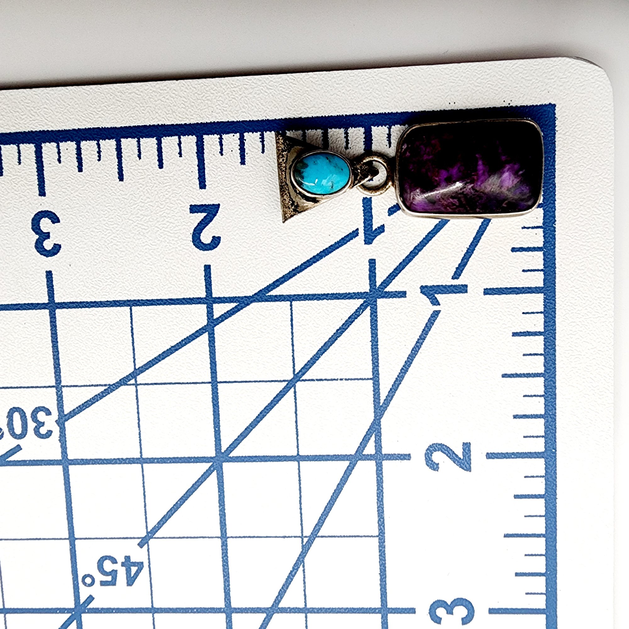 Signed Artisan Sterling Sugilite Turquoise Pendant 6.5g