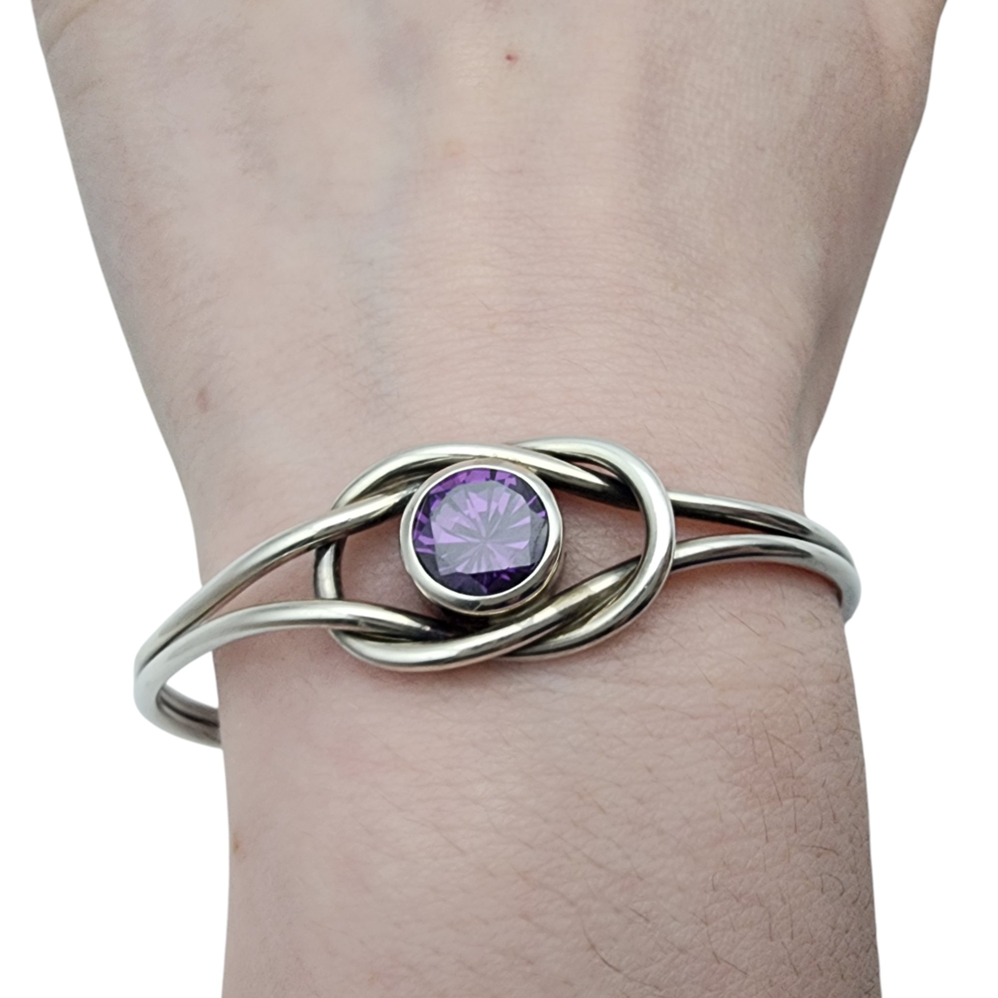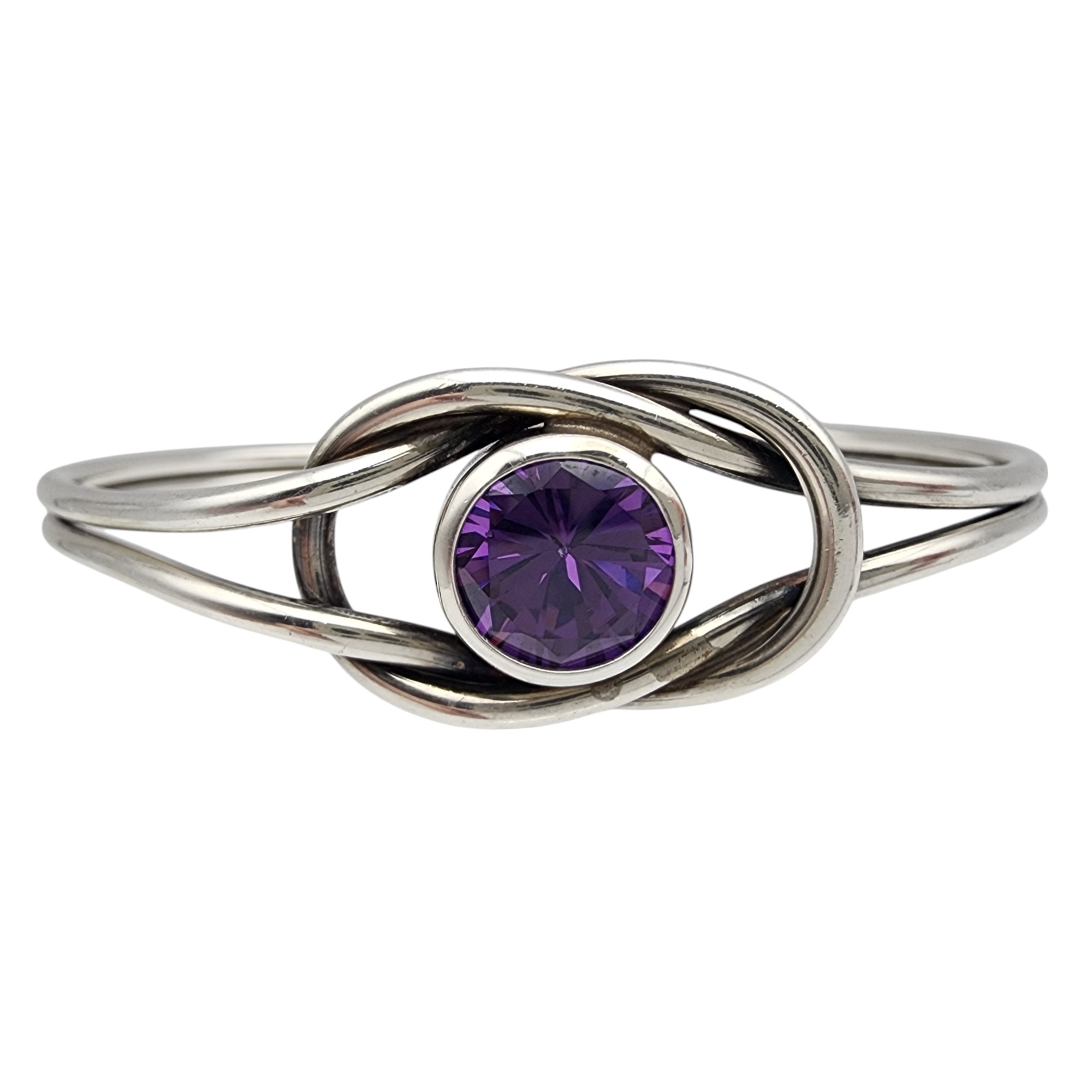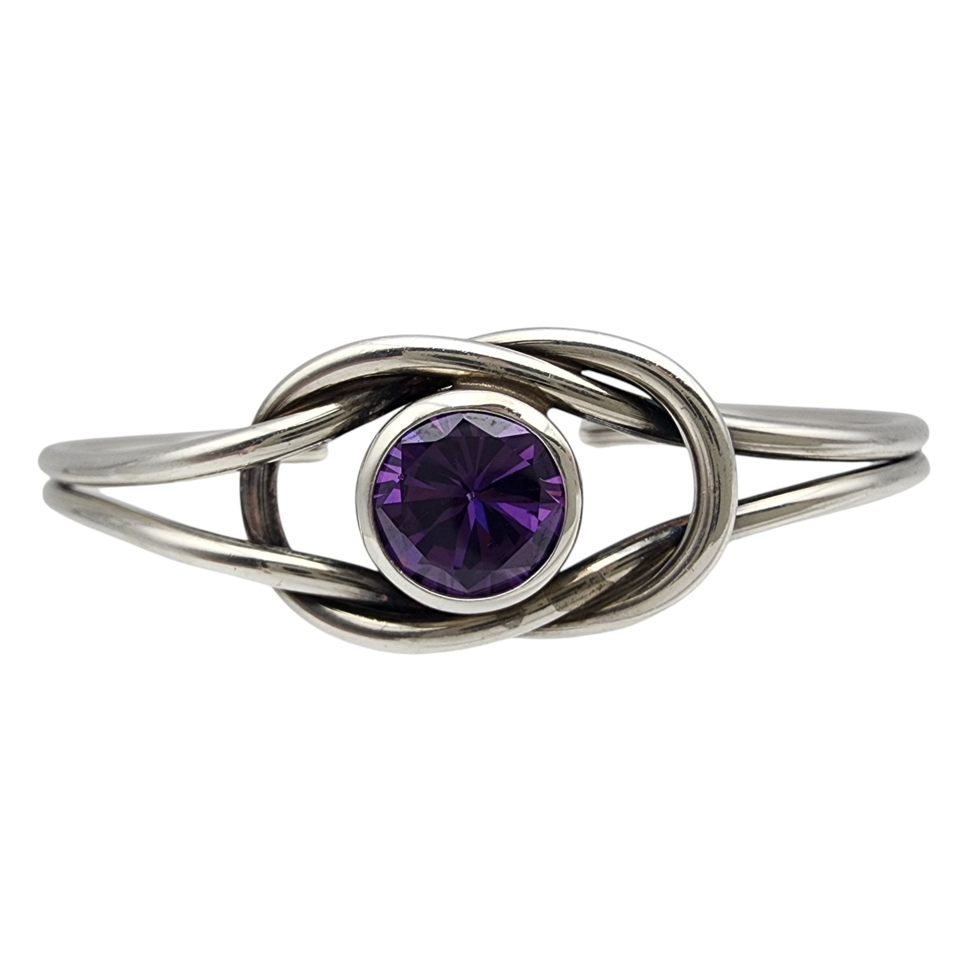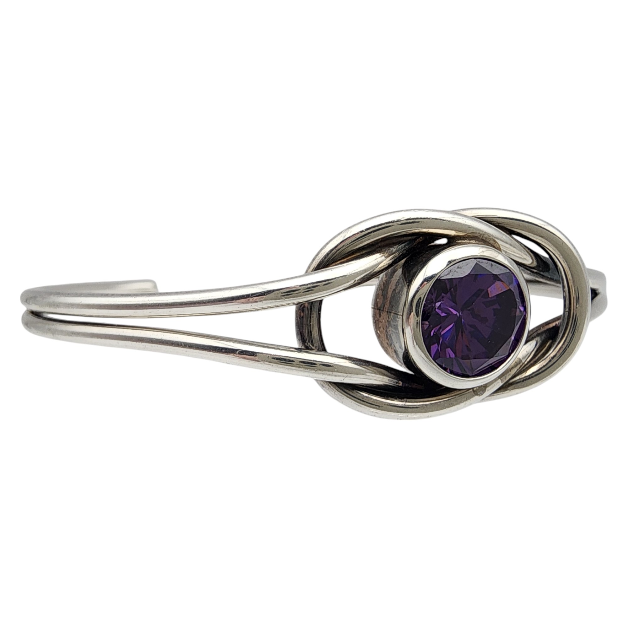 Sterling Silver Amethyst Cuff Bracelet, 14.6g, possibly tourmaline or other similar gemstone.