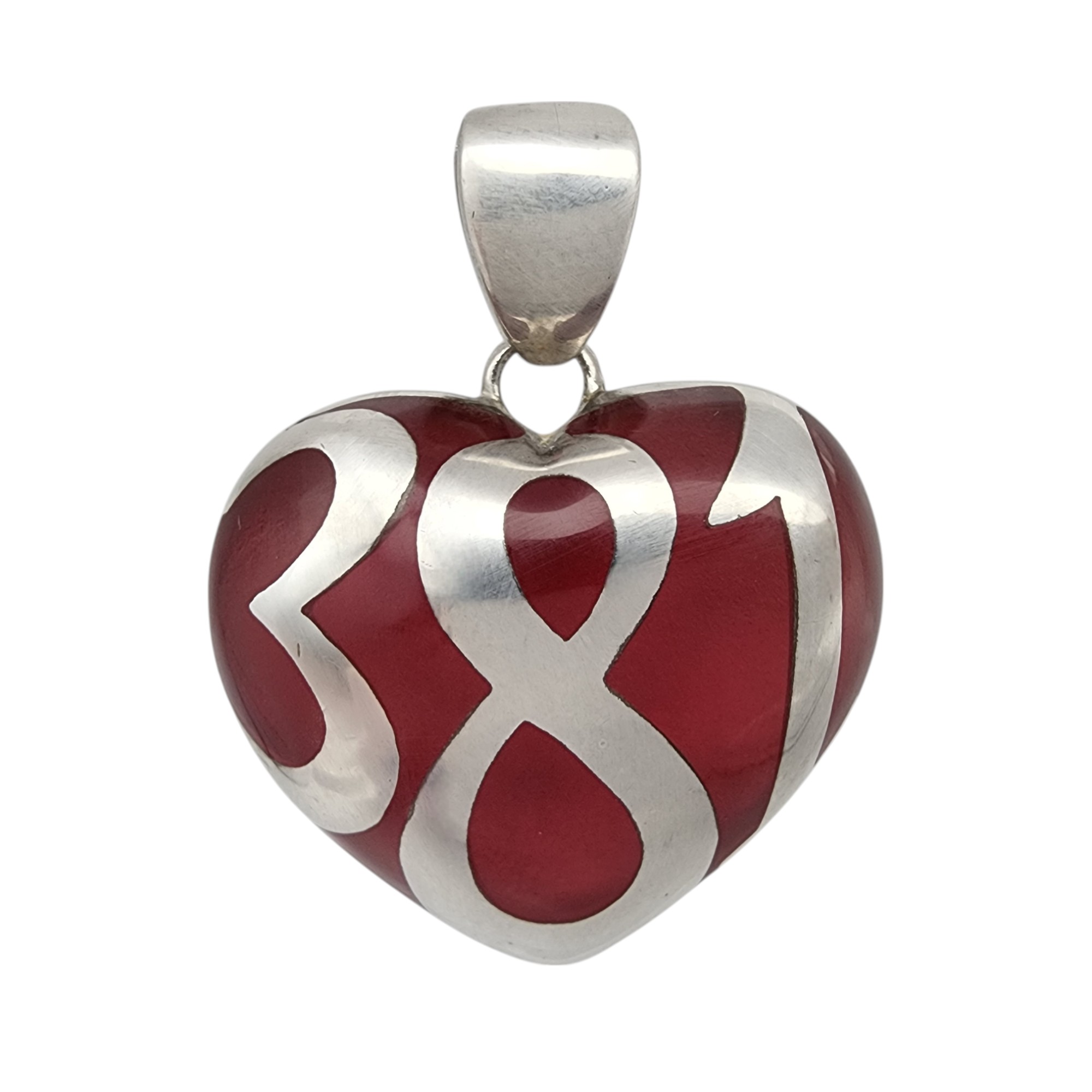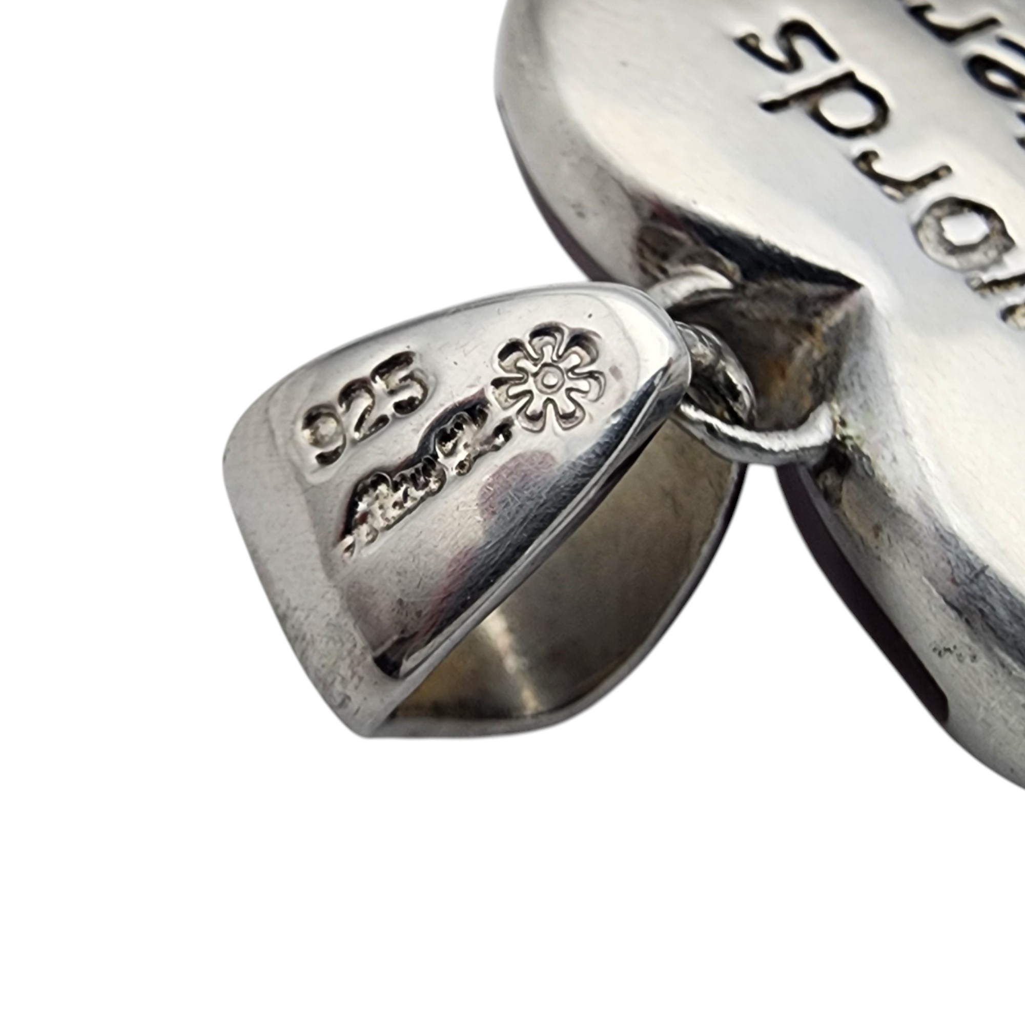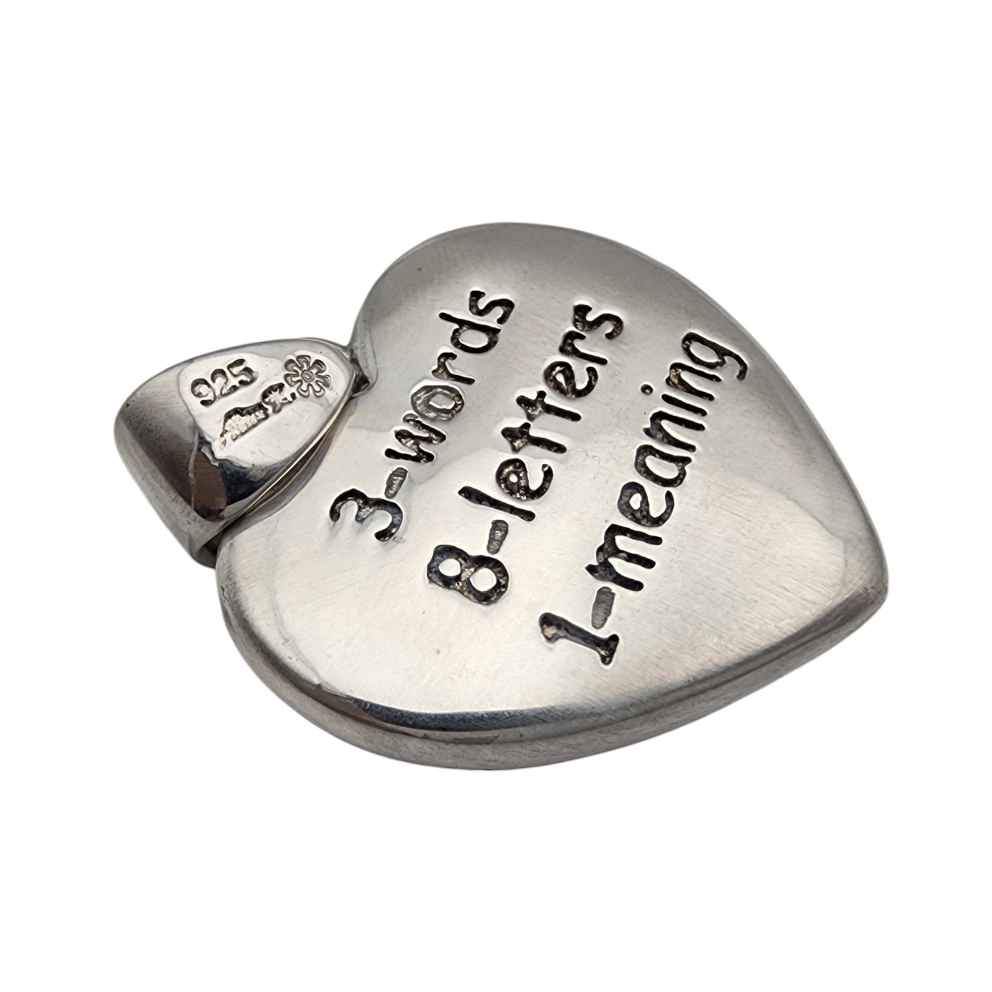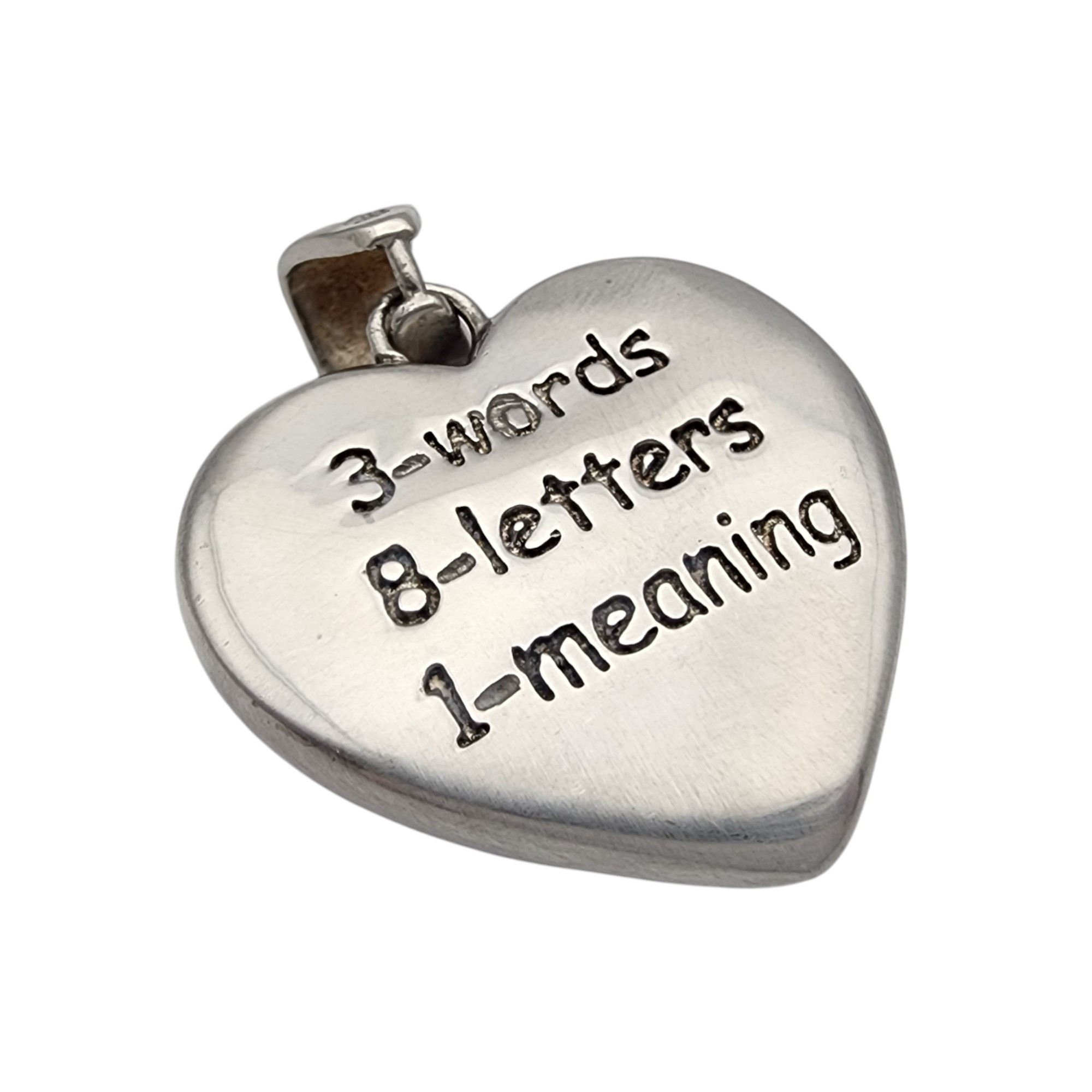 Alan K Sterling 3-8-1 Heart Pendant, 14.1g, likely from the “Designo” line – Alan K is often associated with his jewelry with Millefiori, Murano glass, etc., back of pendant says “3 words, 8 letters, 1 meaning”.