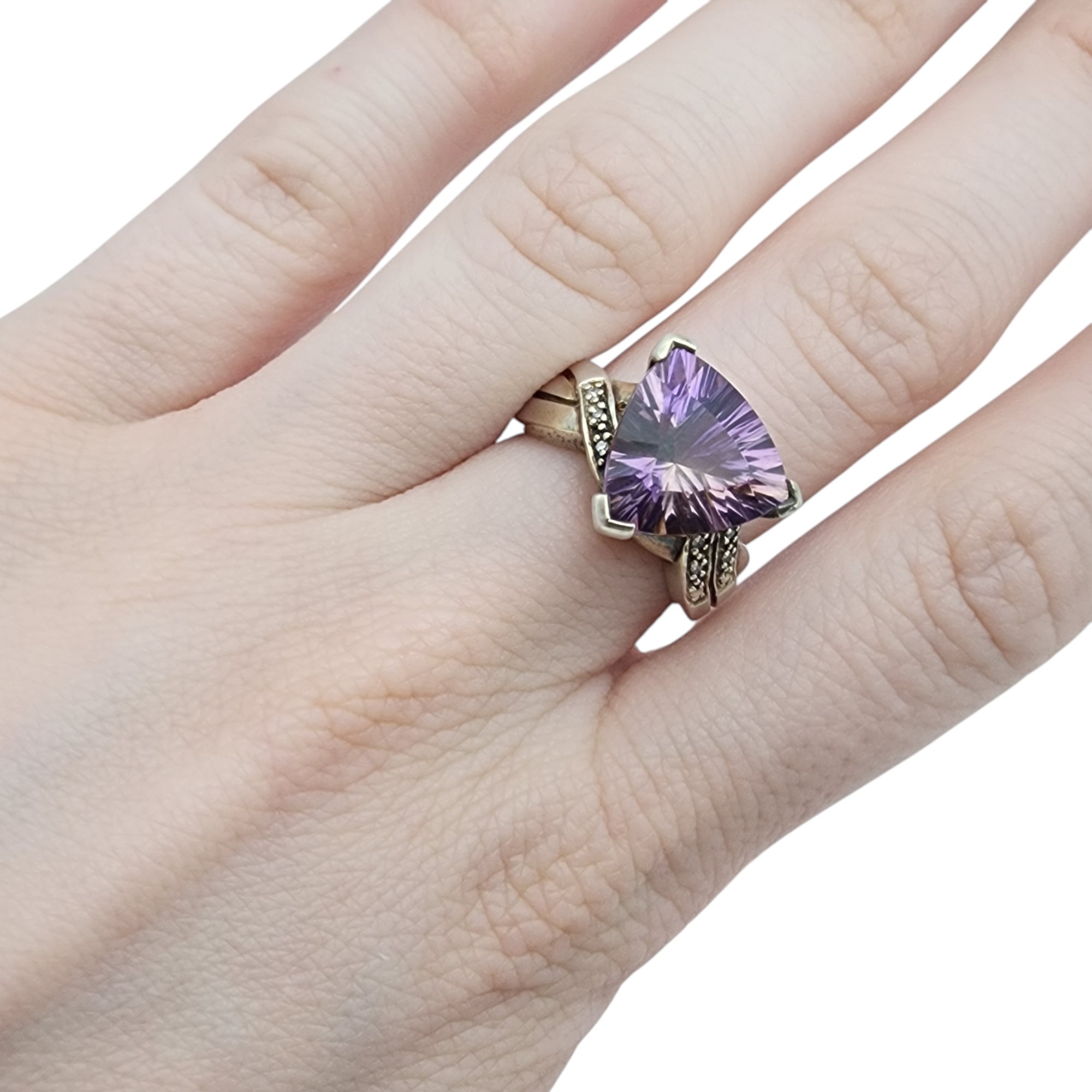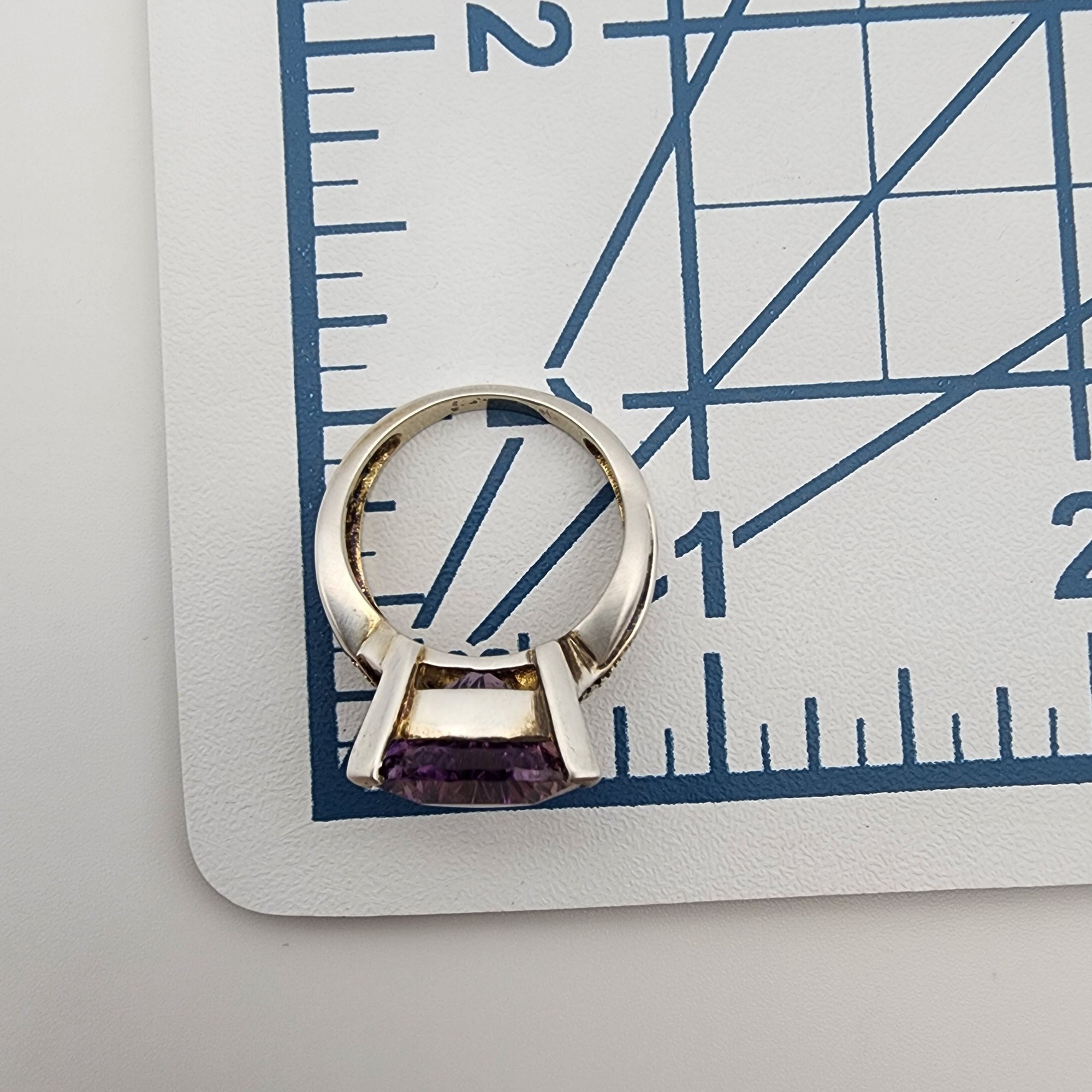 Gold over Sterling Amethyst and Moissanite/Diamond Ring Sz 7, 6.4g, gem tester unable to differentiate b/w diamond vs moissanite