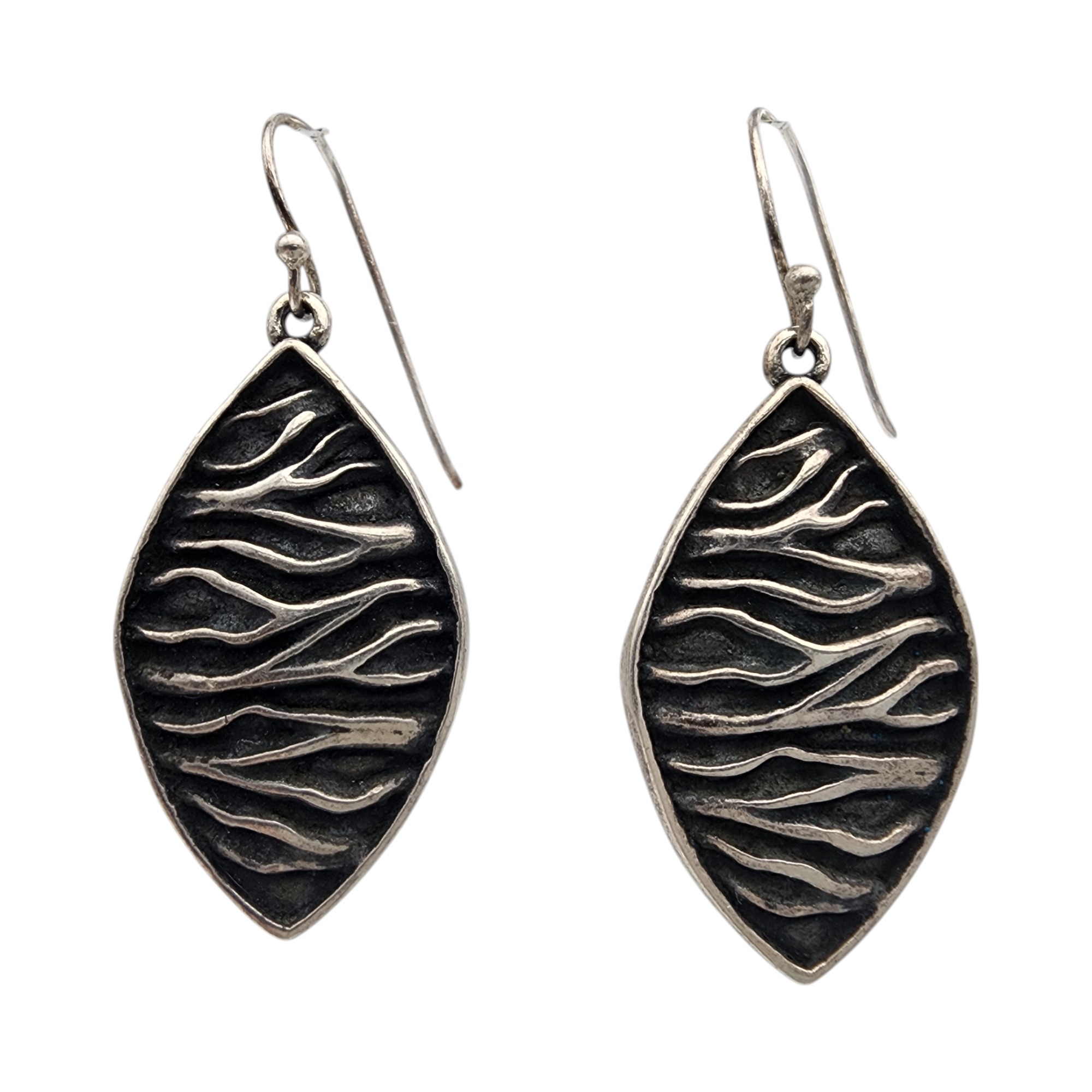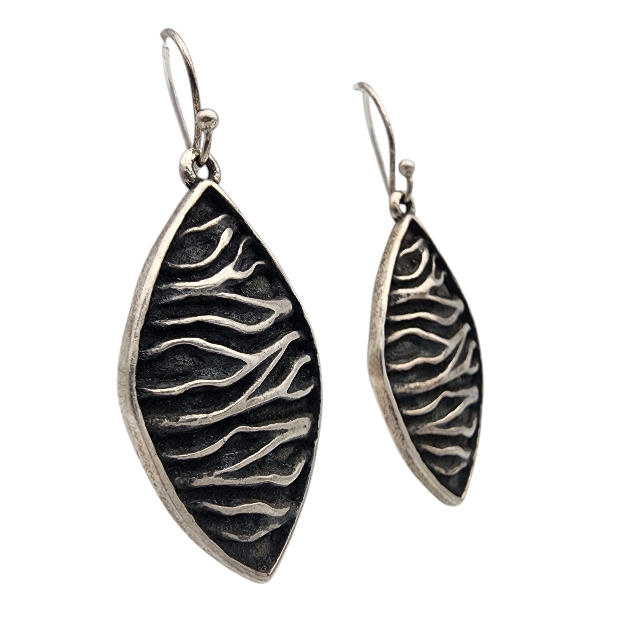 Signed Designer Sterling Textured Dangle Earrings, 8.1g