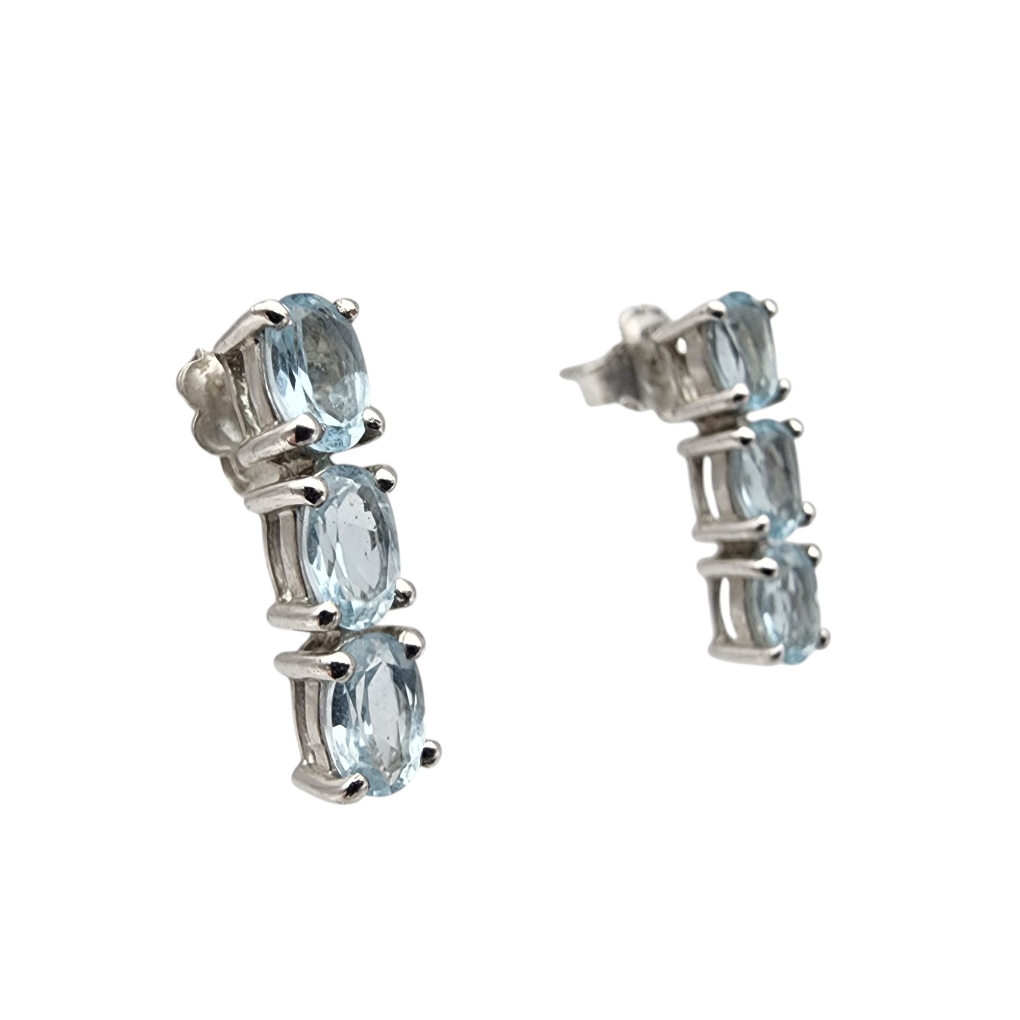 Sterling Silver Topaz Bar Earrings, 3.2g