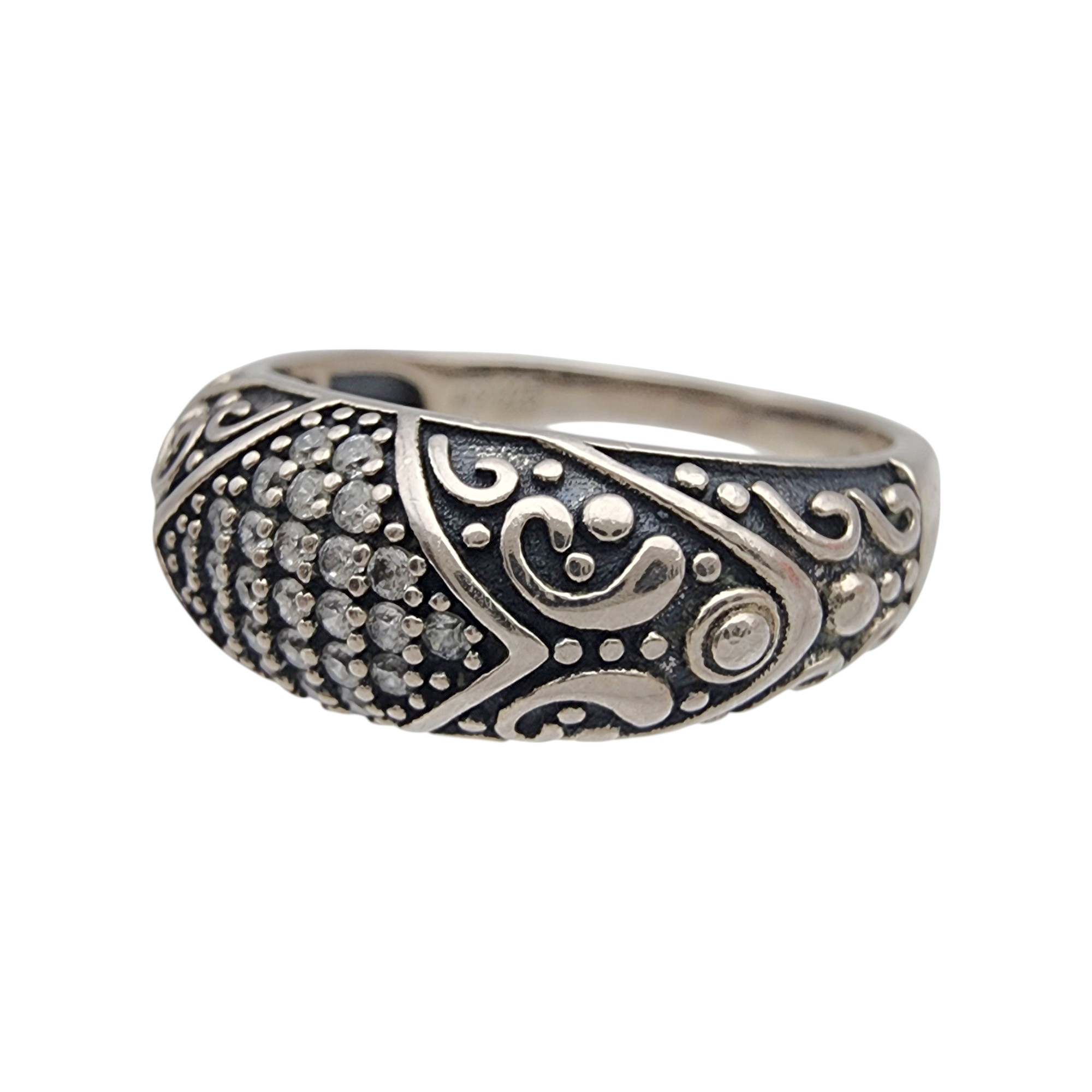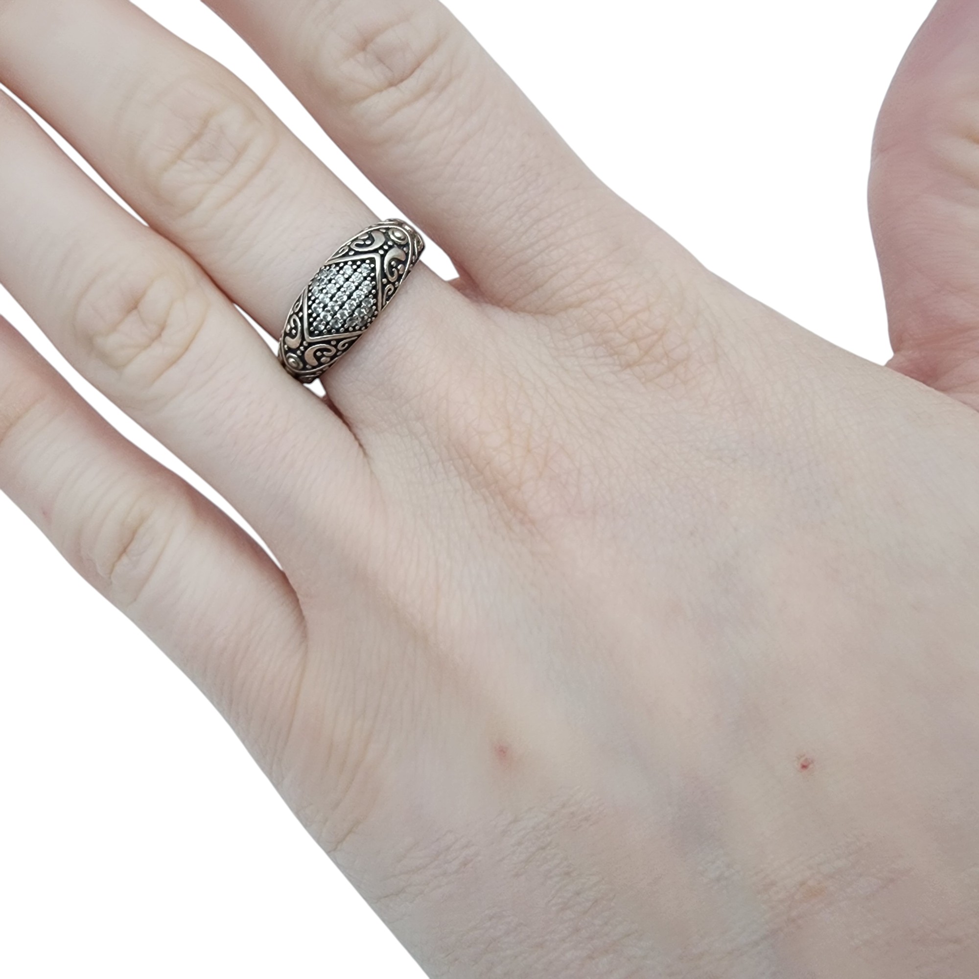 Signed Sterling Silver Pave Ring Sz 7, 3.7g