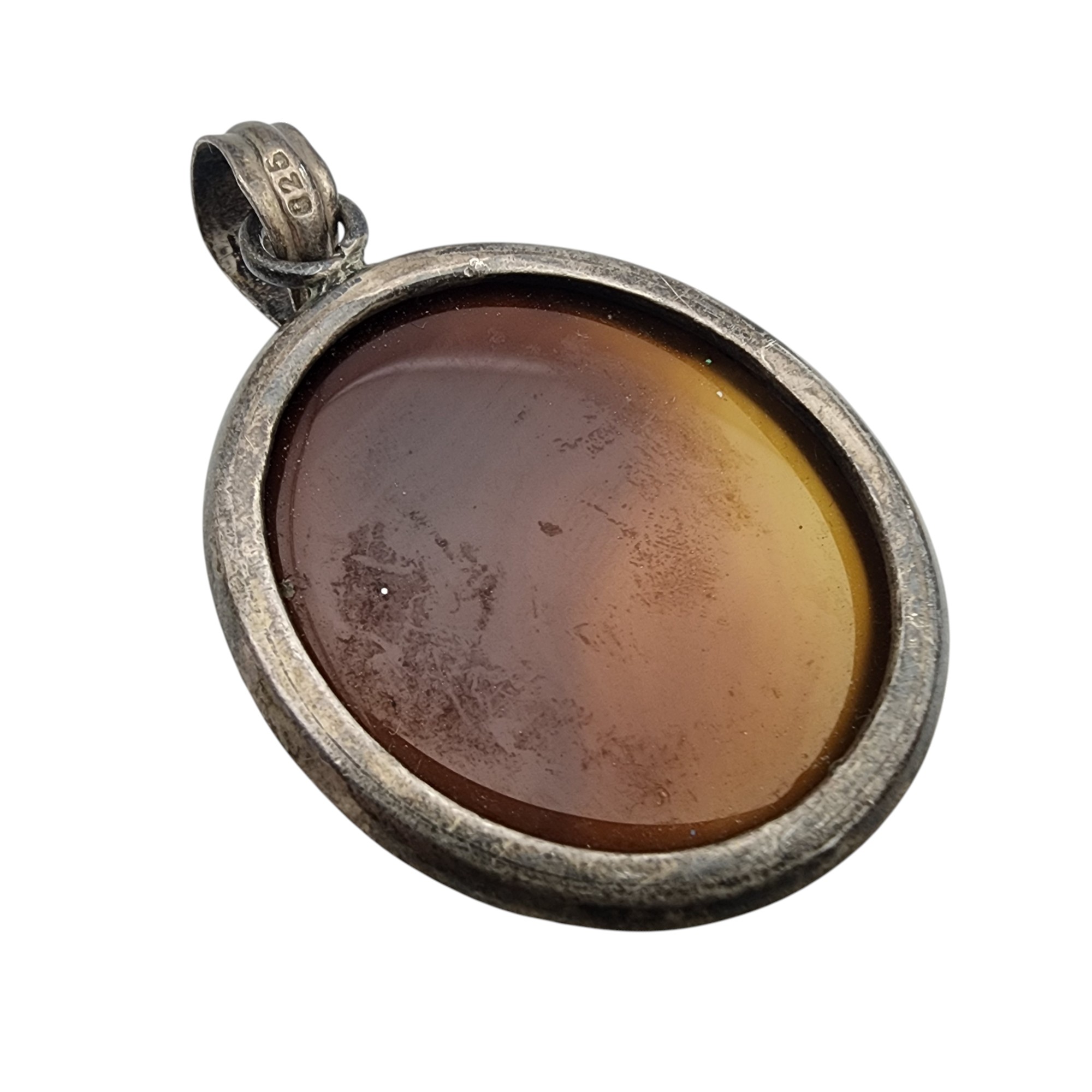 Vintage Sterling Silver Carnelian/Agate Pendant, 16.7g