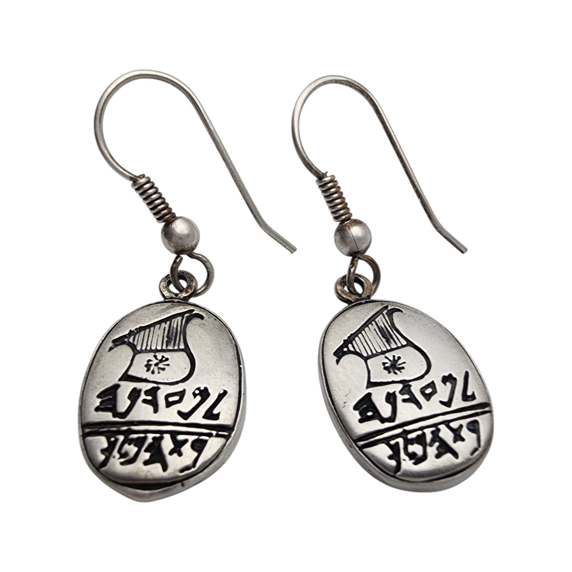 Signed Sterling Greek Lyre and Harp Earrings, 4.2g
