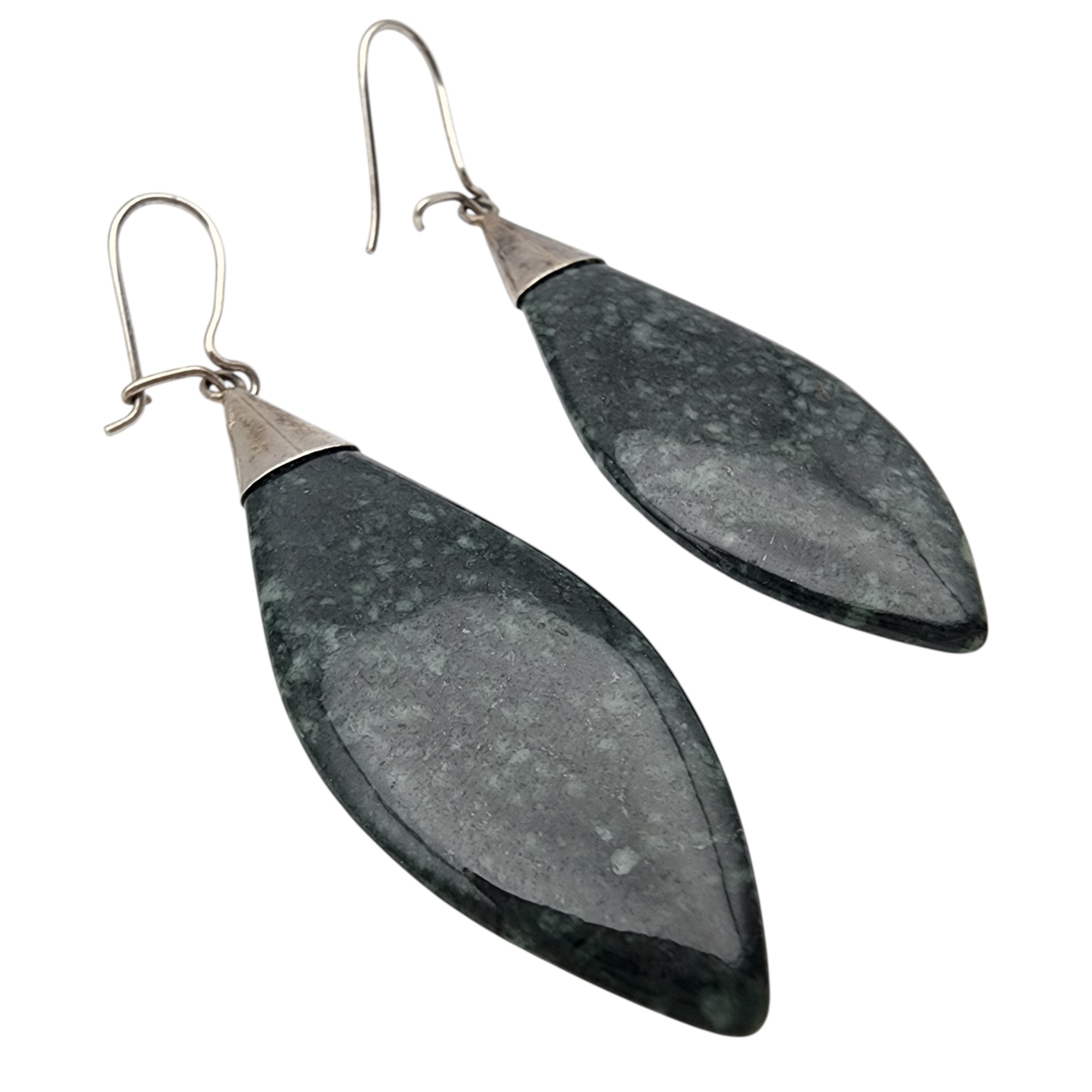 Sterling Silver Nephrite? Earrings, 8.5g