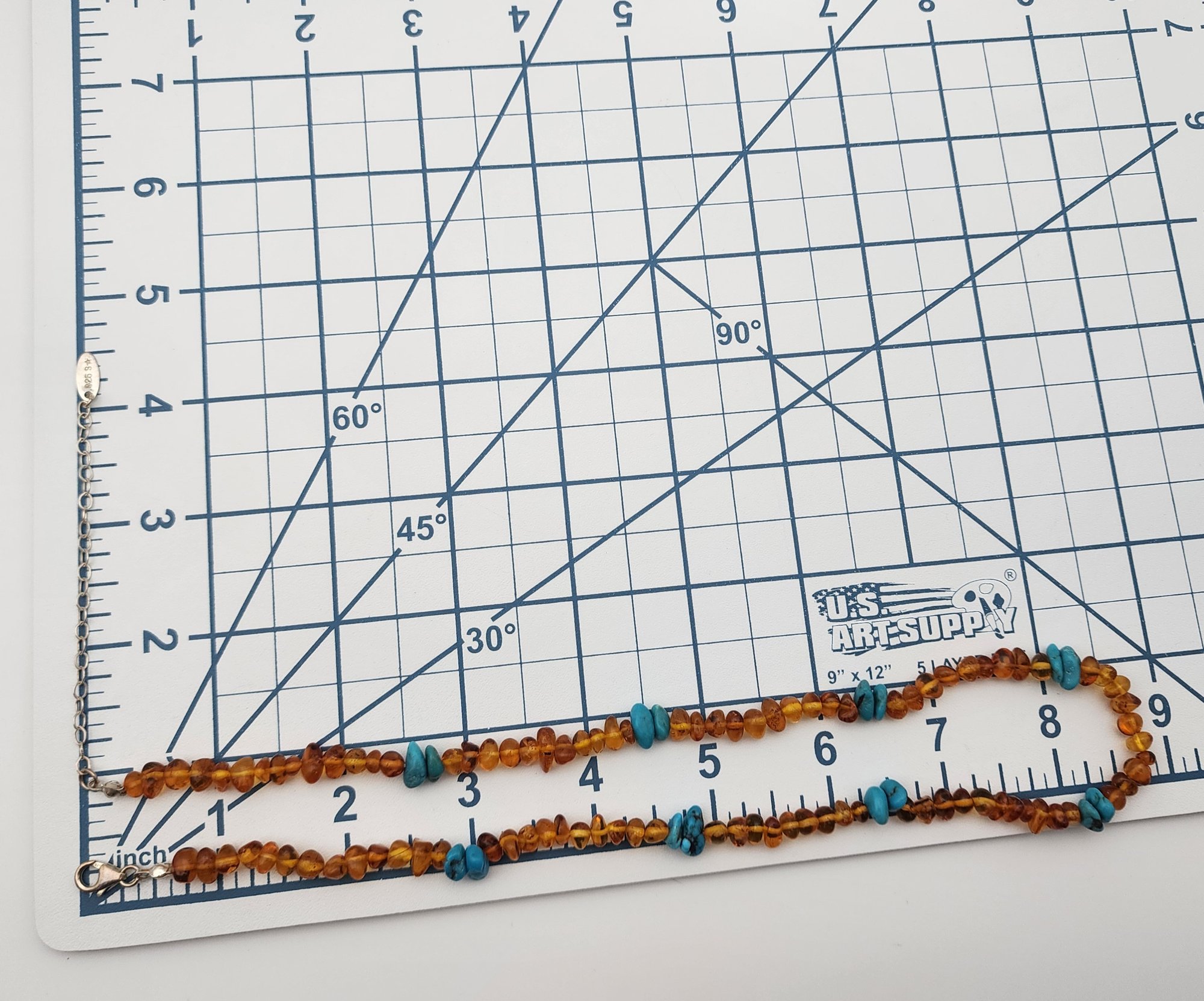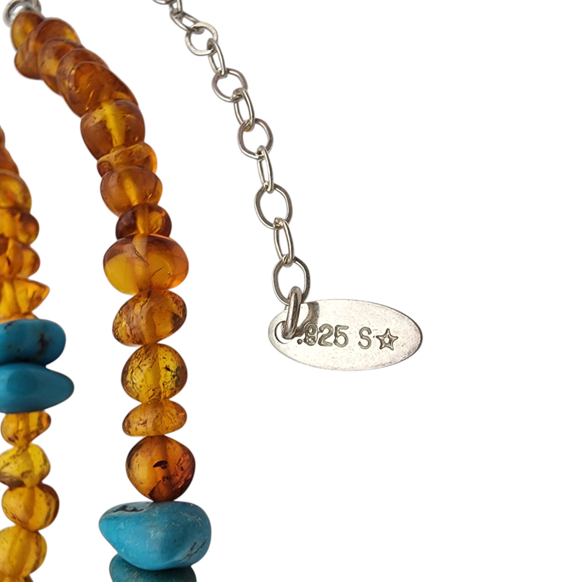 Southwestern Sterling Amber and Turquoise Chip Necklace, 13.4g, approximately 18″ + 3″ extension