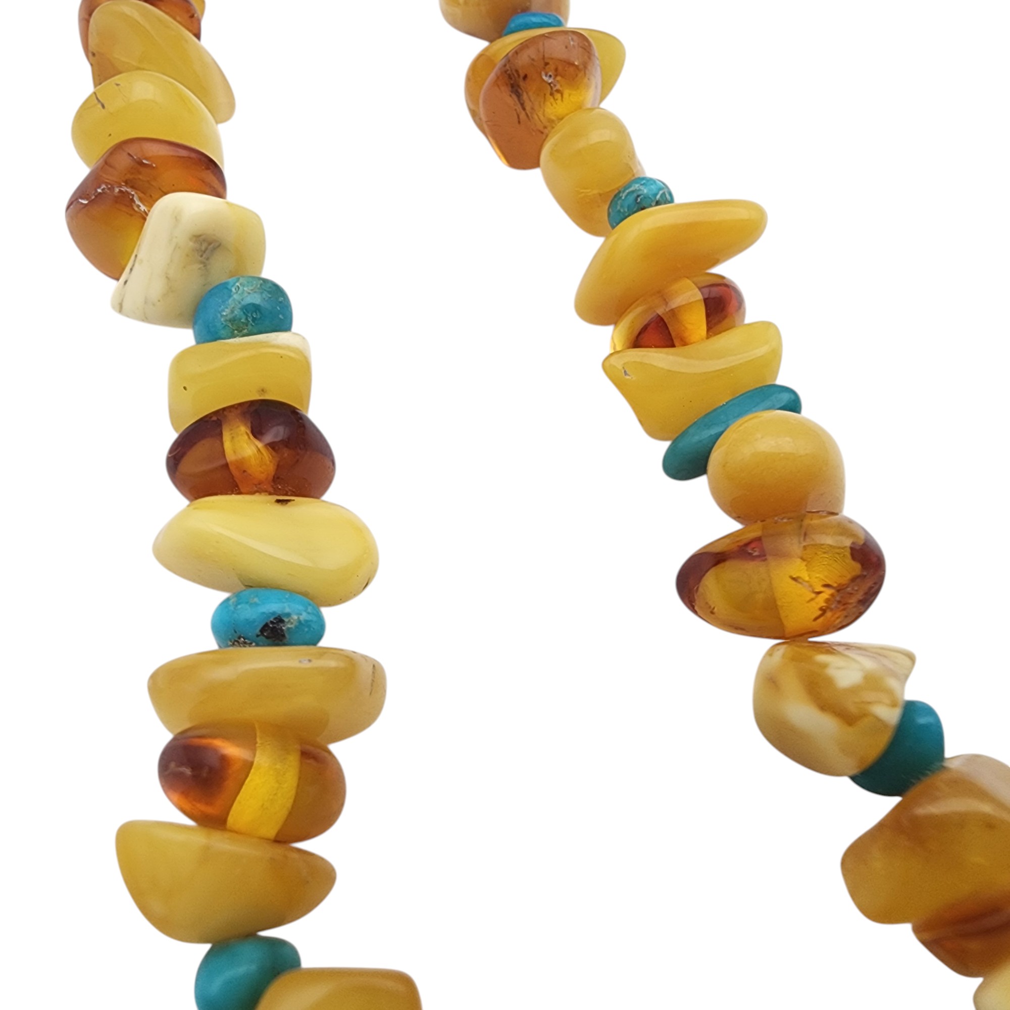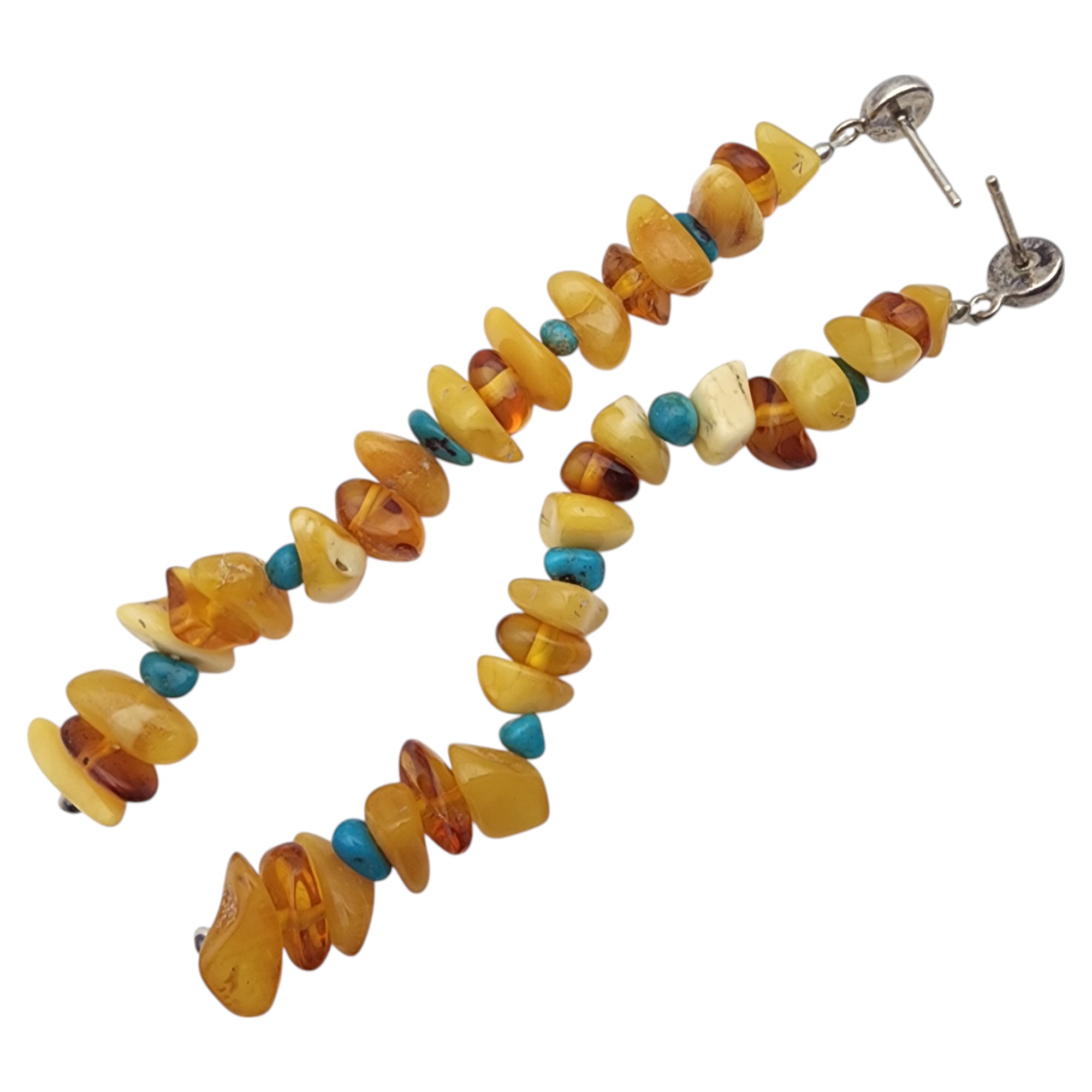 Southwestern Sterling Amber and Turquoise Chip Dangle Earrings, 5.6g