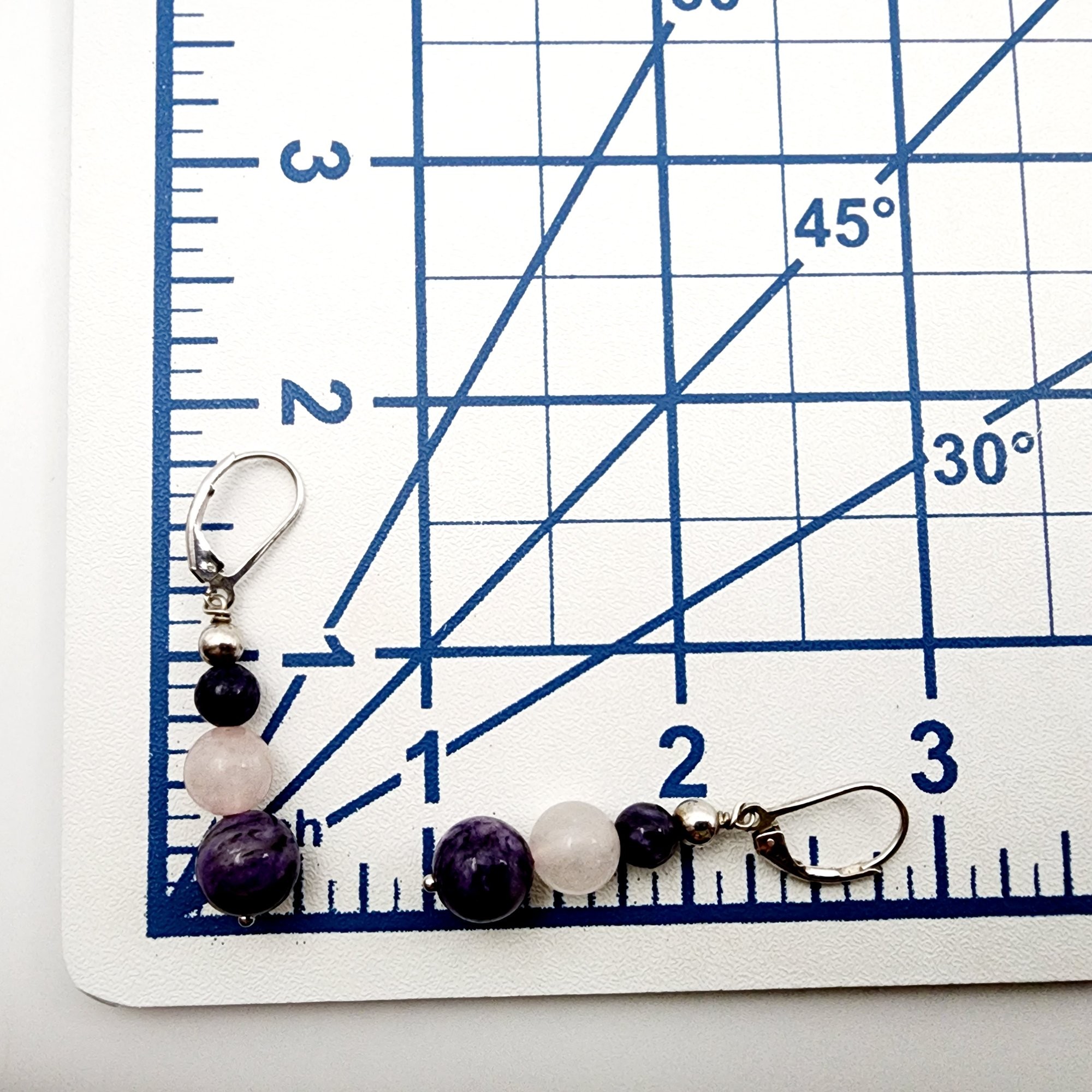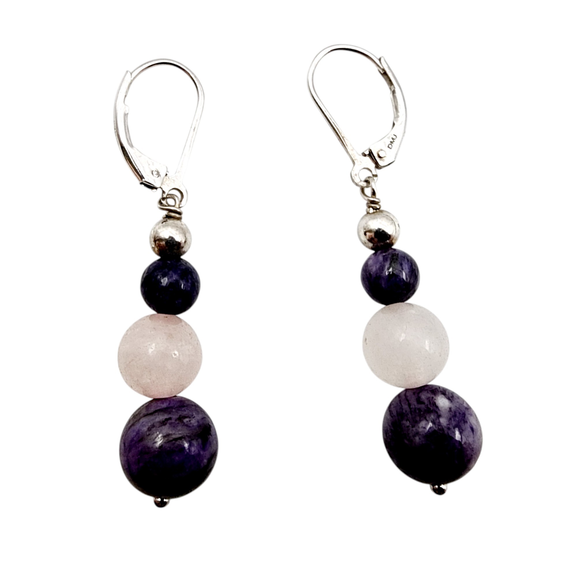 Sterling Rose Quartz Charoite Earrings 6g