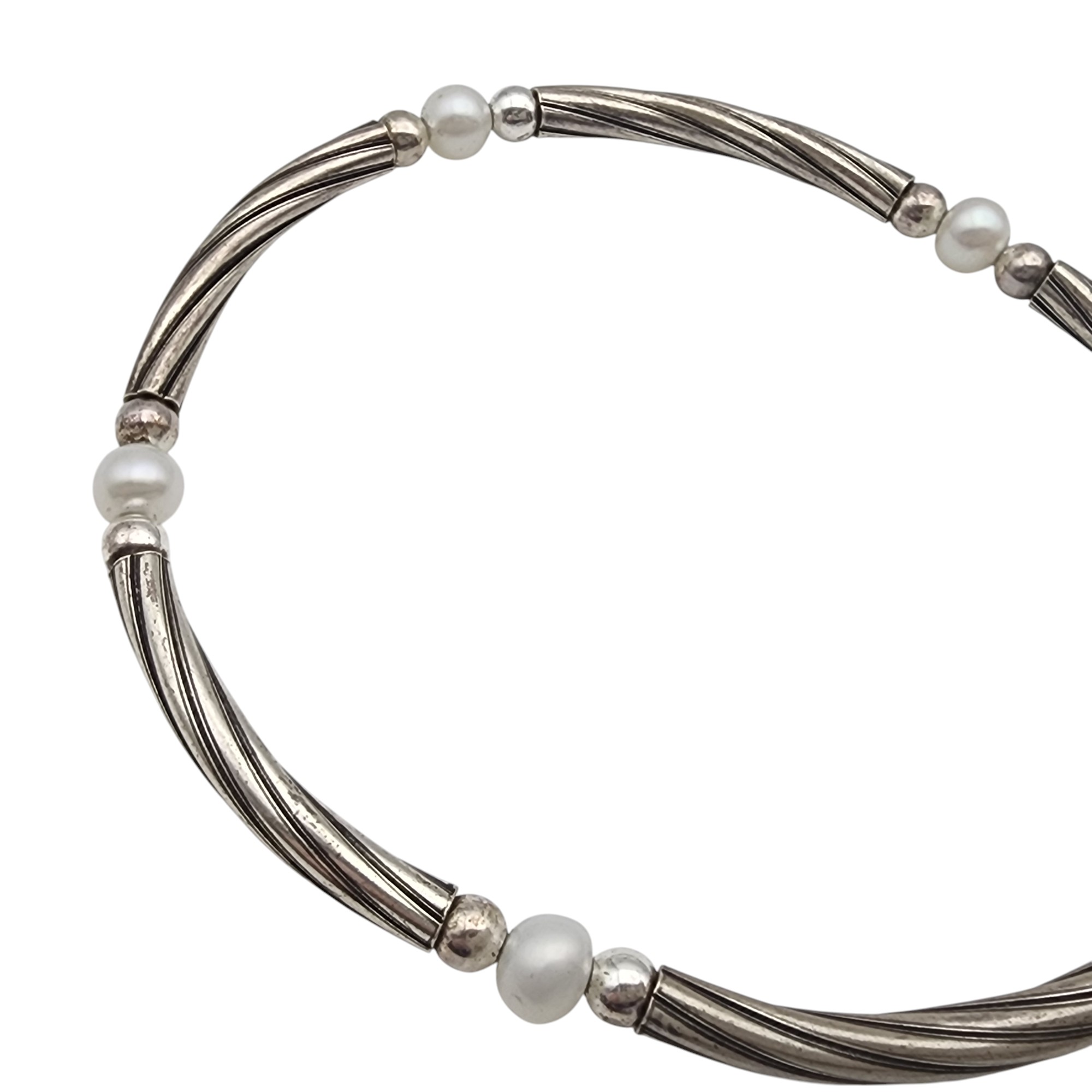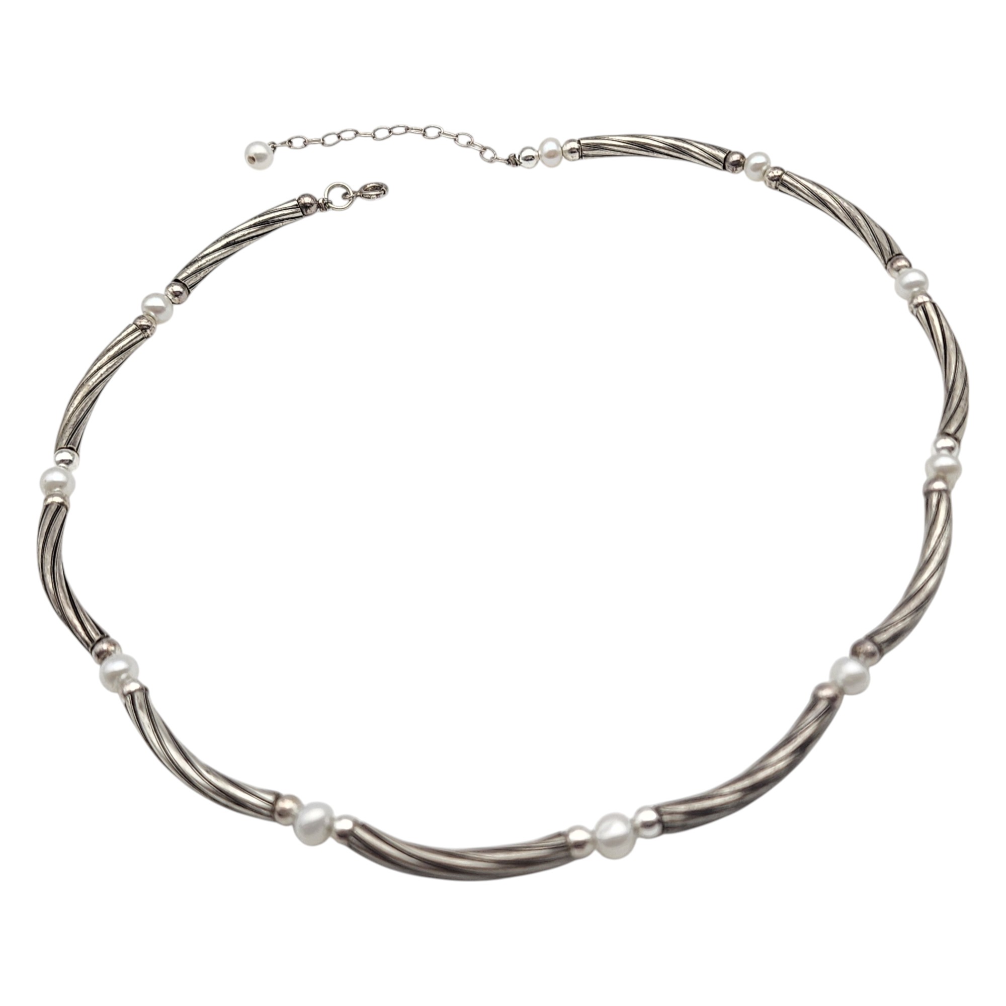 Sterling Silver Twist Pearl Necklace, 15.7g, 2in extension, 16in w/o extension, 18in” total, including extension.