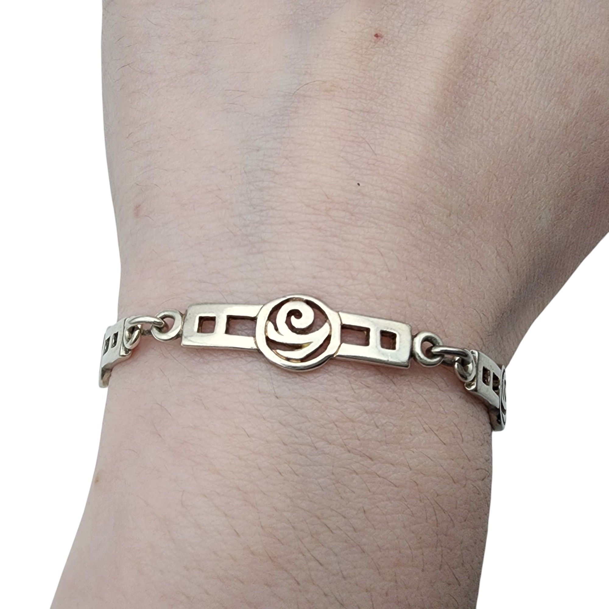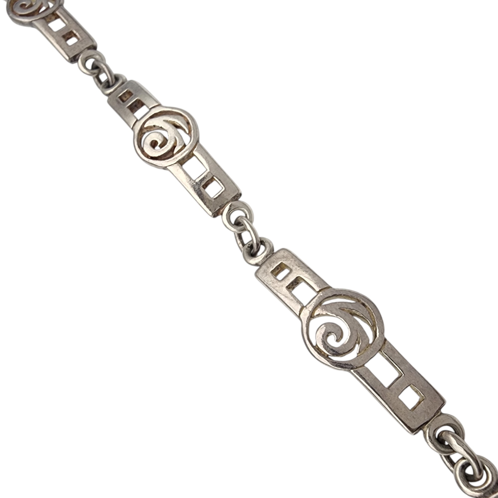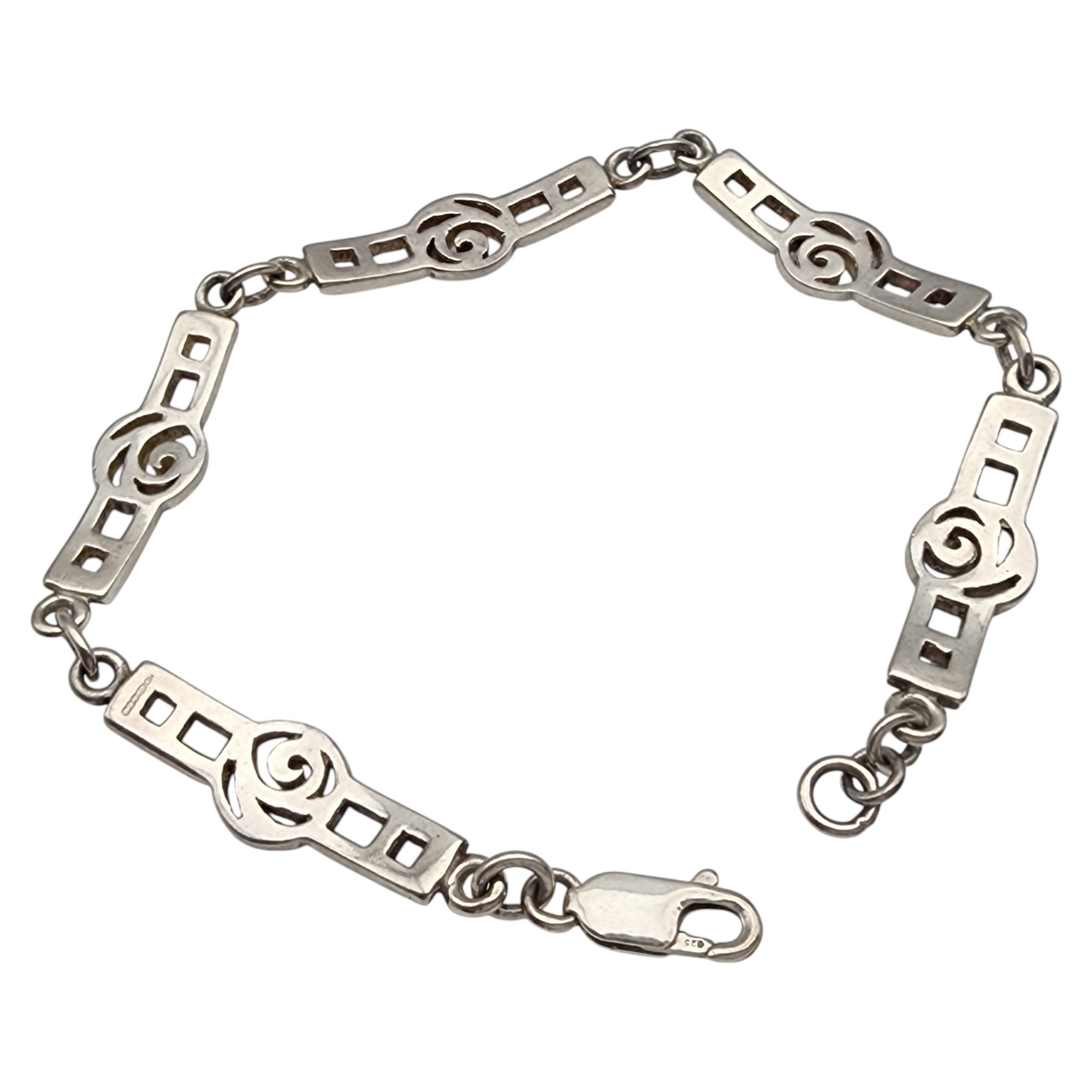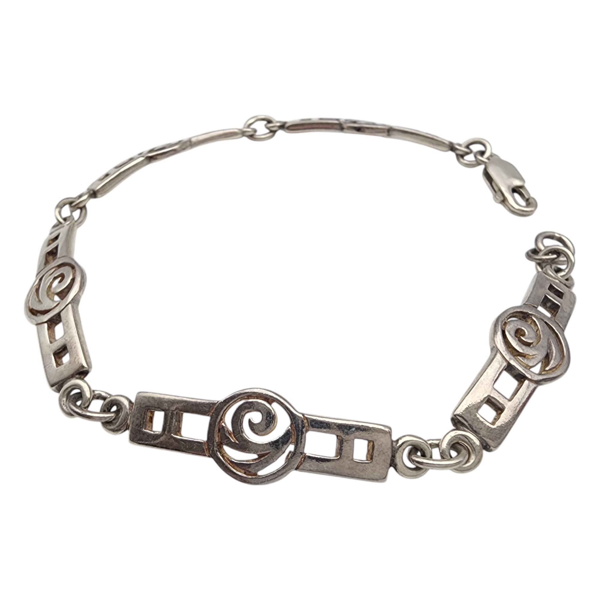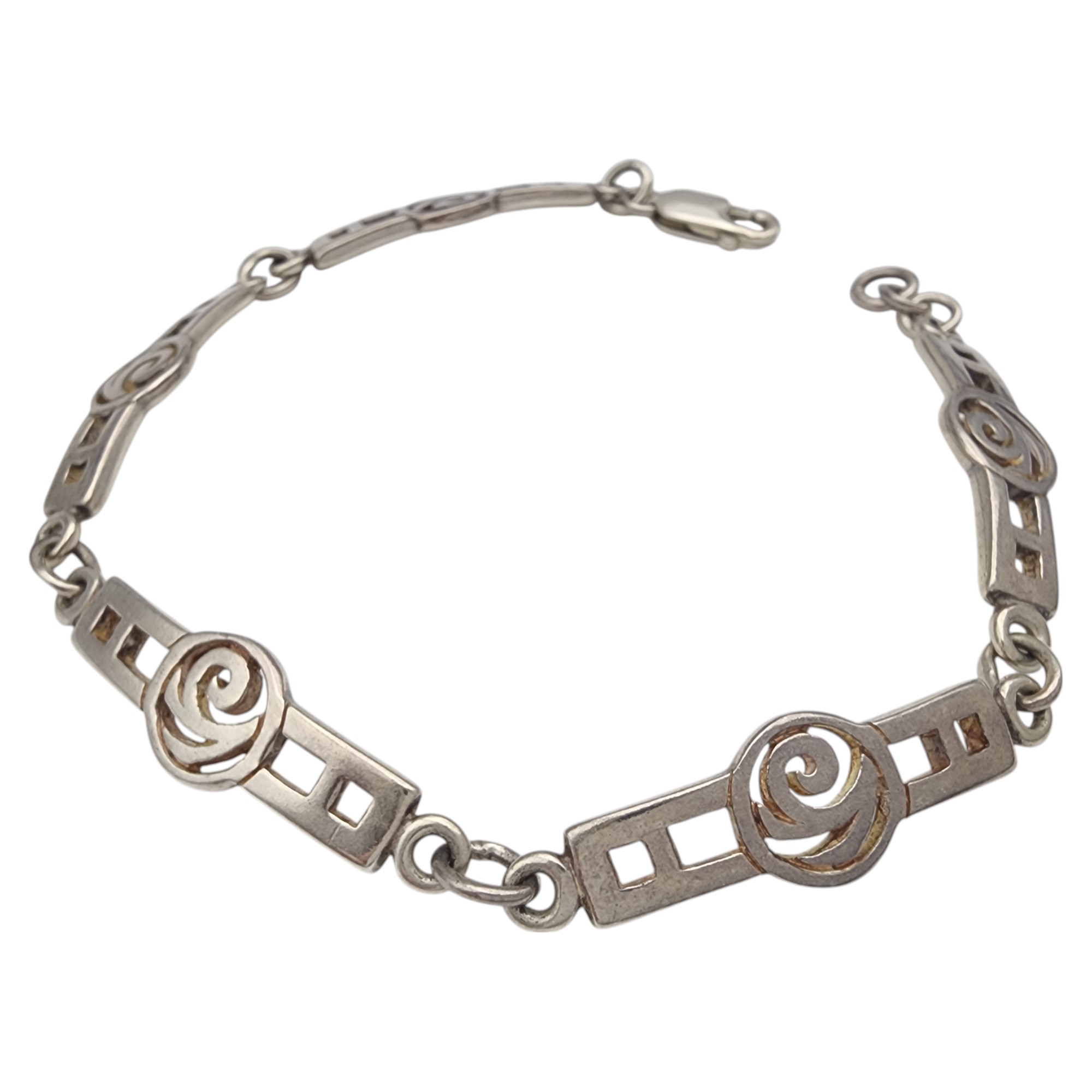 Sterling Celtic MacIntosh Rose Panel Link Bracelet, 10.9g, bracelet has appears to have an Ireland, Scotland, or England assay mark, but unable to decipher due to size of stamping.