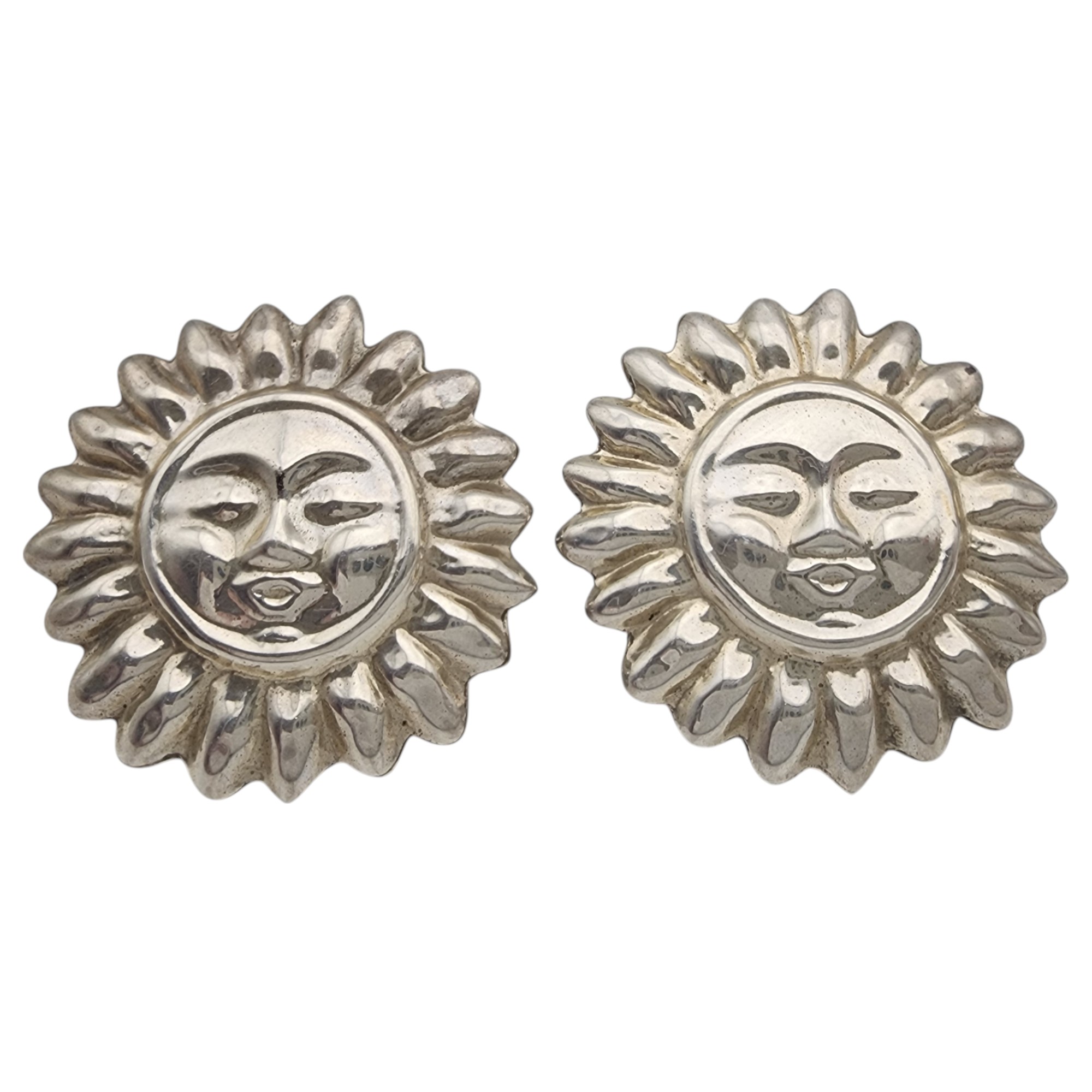 Taxco Sterling Sun Face Earrings, 18.4g
