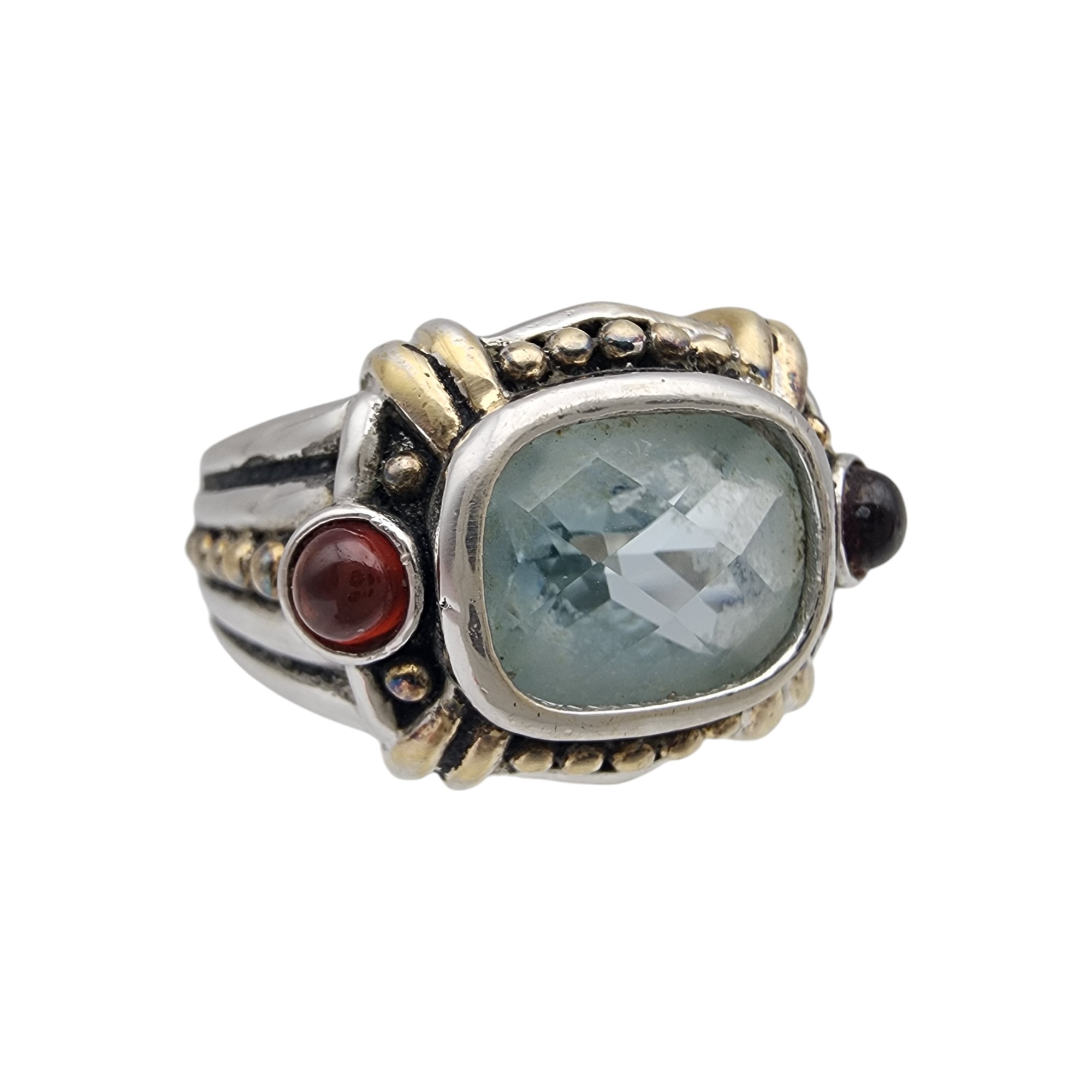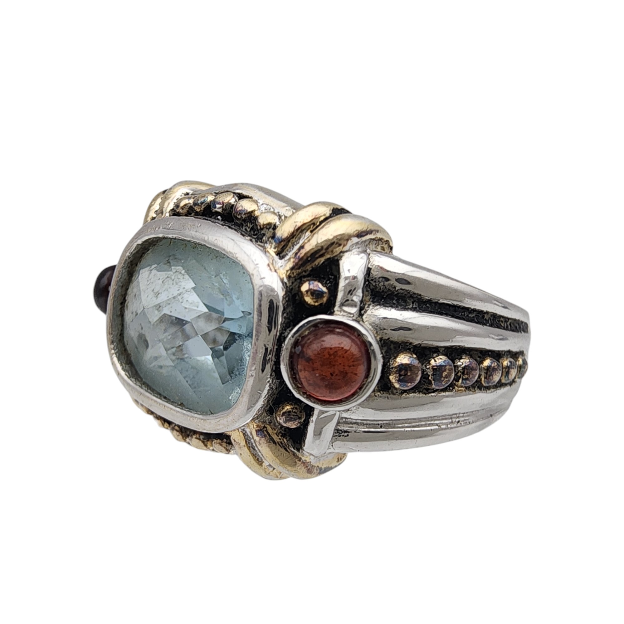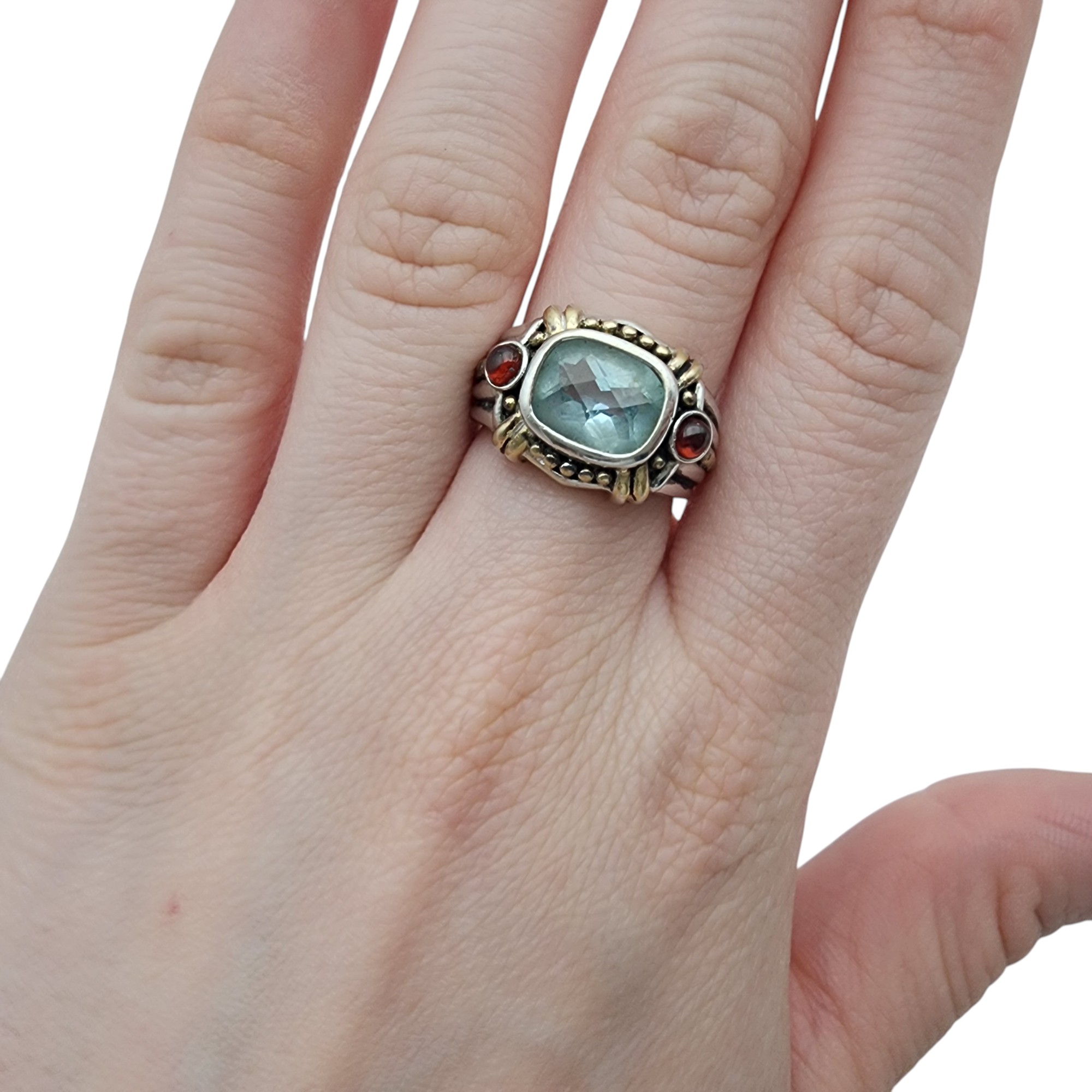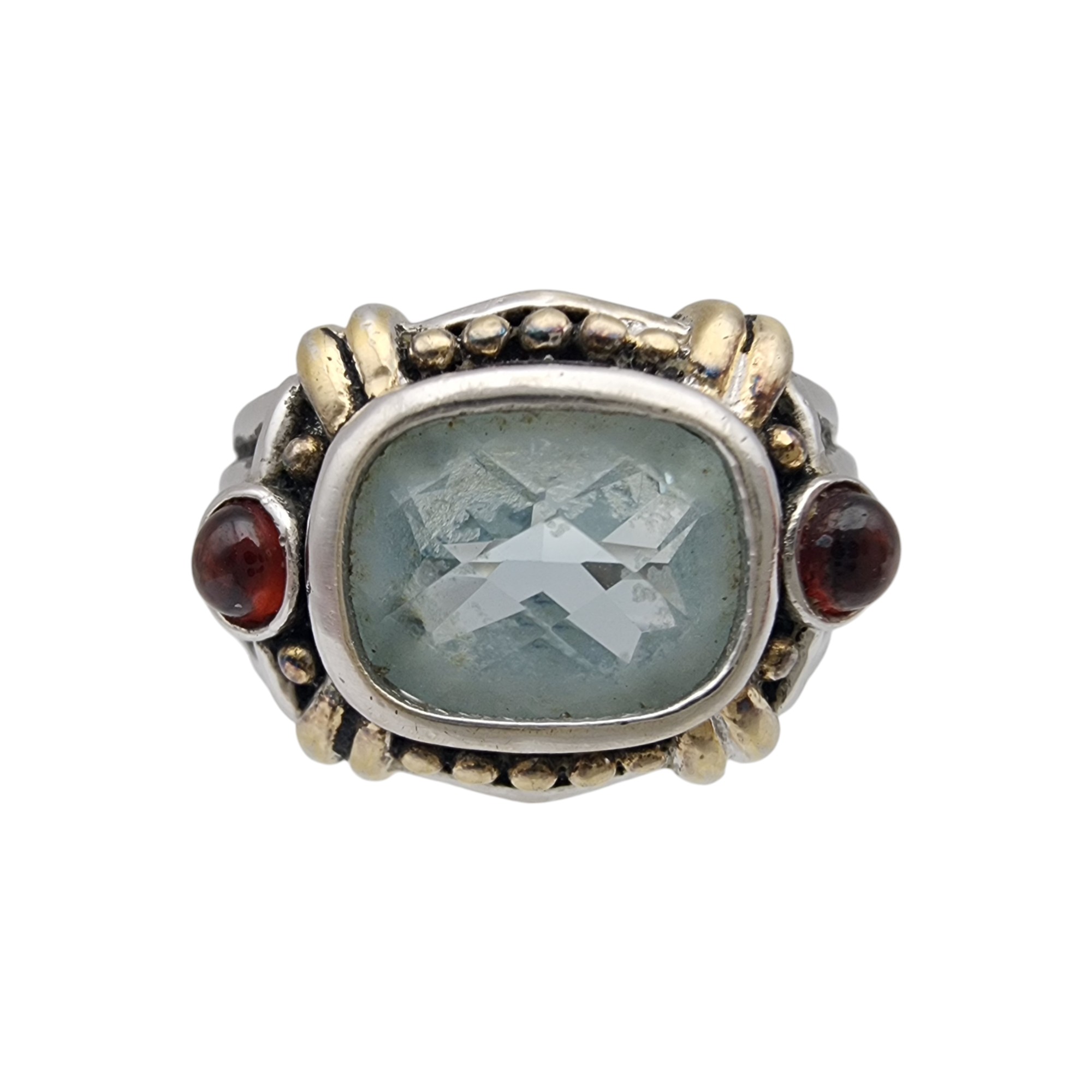 Sterling Topaz and Garnet Ring Sz 7, 8g