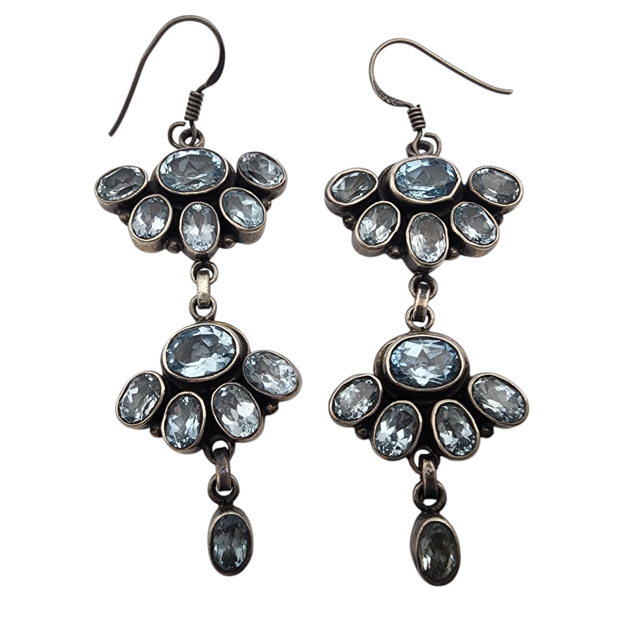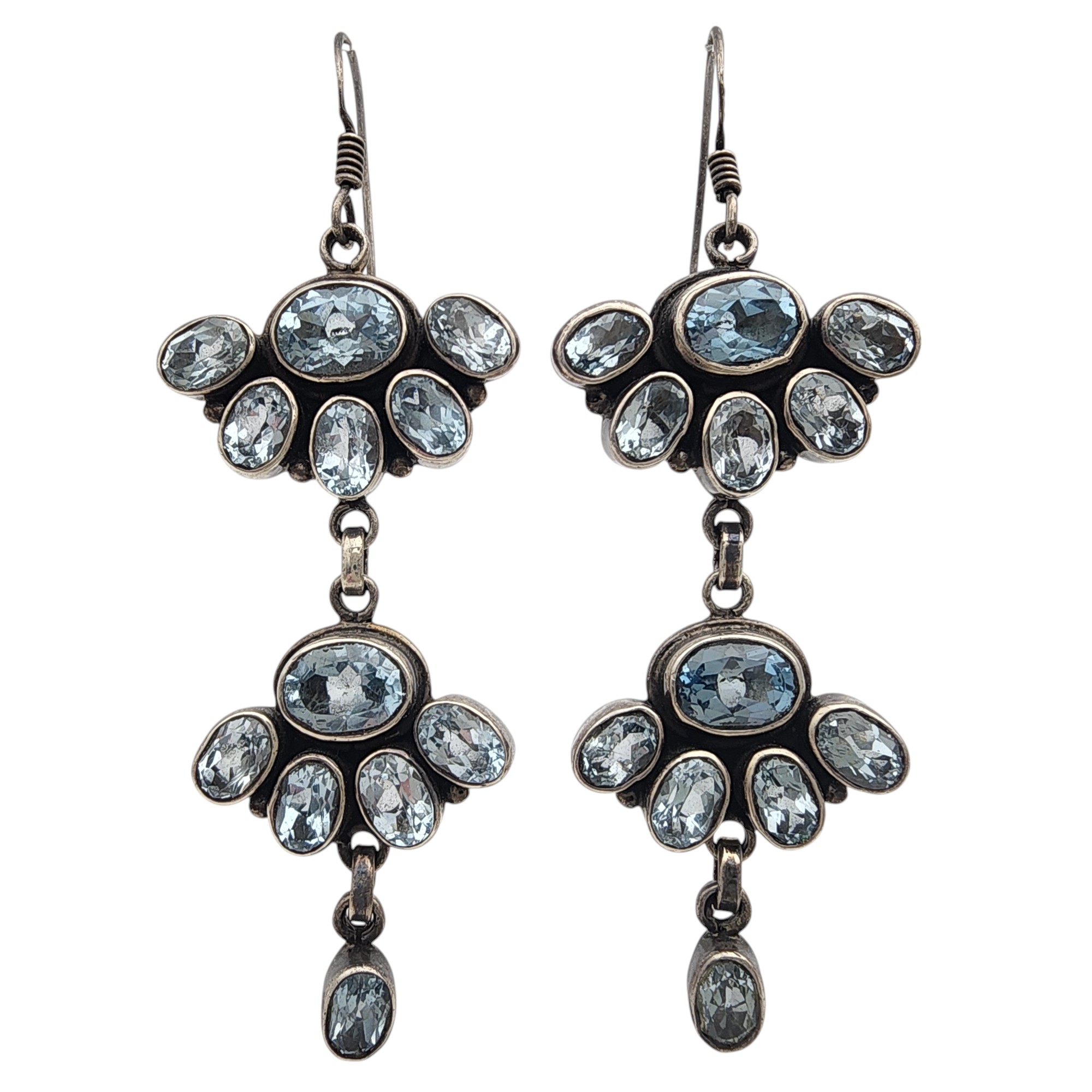 Sterling Silver Topaz Cluster Dangle Earrings, 14.8g